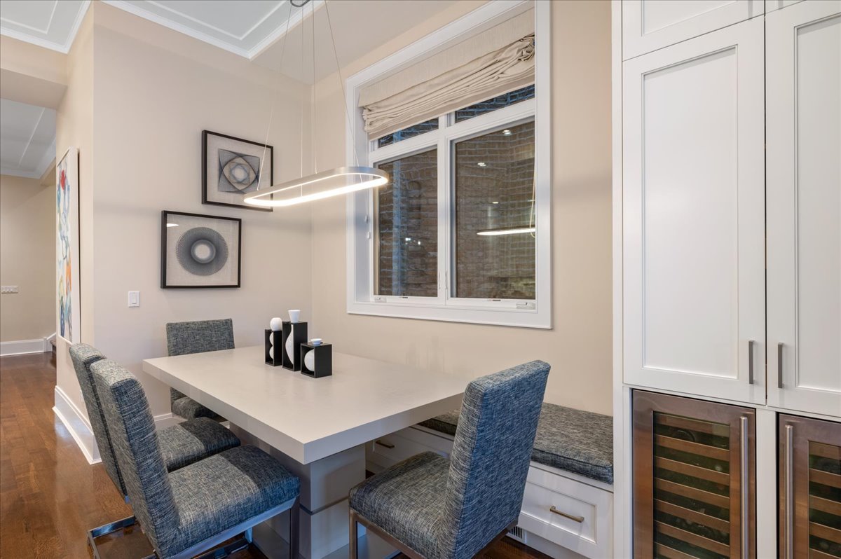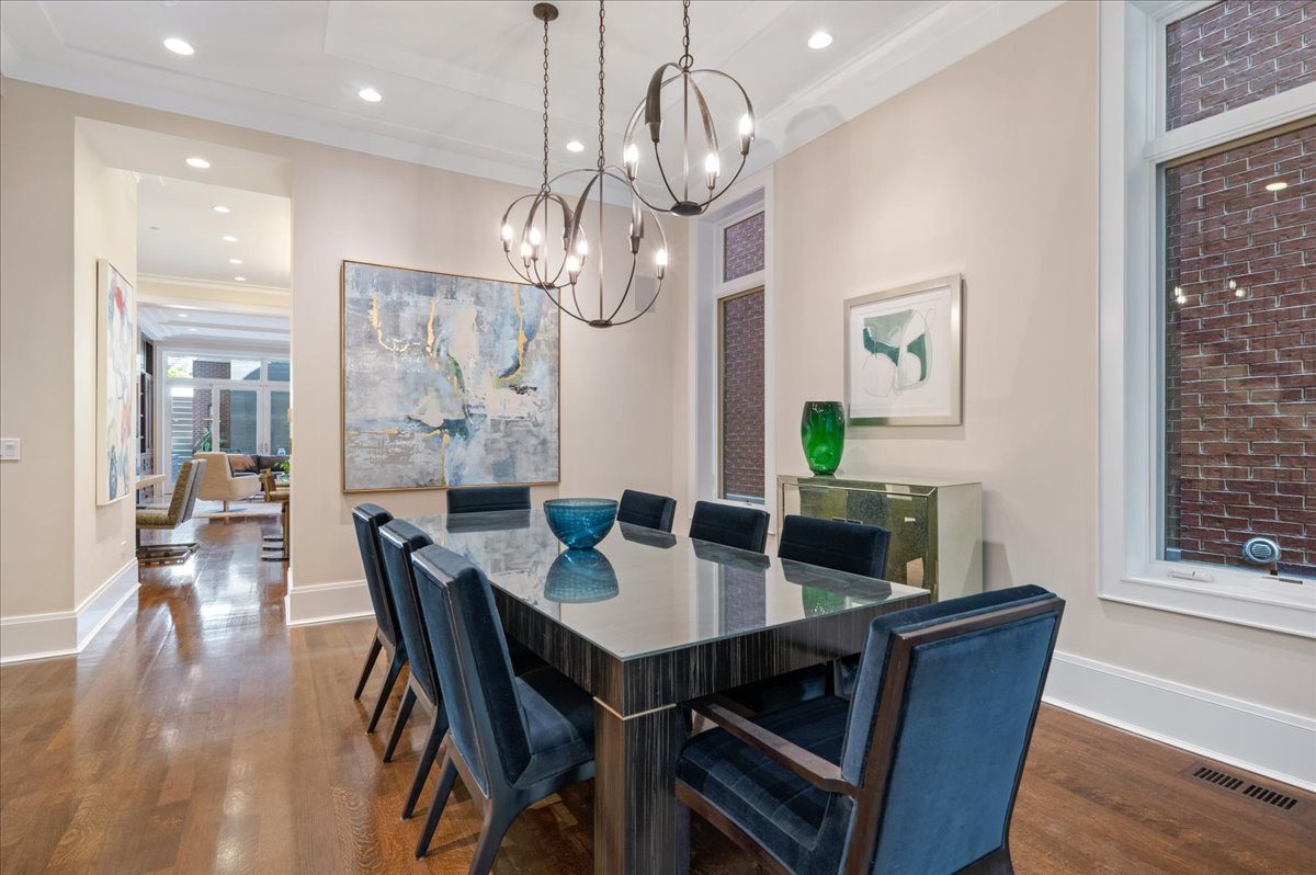 This meticulously updated limestone and brick residence spans four stories and over 5,122 square feet, offering an Extra-Wide floorplan with six bedrooms and 5.2 bathrooms, plus three incredible outdoor spaces, including a fully rebuilt penthouse-level rooftop retreat. Designed for the most discerning buyer, the home features an extra-wide floor plan with refined custom finishes, custom built-ins, tray and beam ceilings, wainscoting, detailed moldings, soaring ceilings, and a fully integrated automation system that elevates modern living. The light-filled living room and separate dining room are thoughtfully designed with an open layout, complemented by a formal entry and framed by views of the tree-lined street. The upgraded gourmet kitchen serves as the heart of the home, showcasing white cabinetry with integrated lighting, stone countertops with an oversized island, a coordinating backsplash, and a built-in banquette. Enhancements include dual wine refrigerators and a reverse osmosis water filtration system, alongside a full suite of premium appliances, including Wolf double convection ovens, a 48″ professional range with griddle, built-in microwave drawer, Dacor hood, SubZero refrigerator and freezer, two Bosch dishwashers, and a beverage center. The family room opens seamlessly to the outdoor spaces, creating a natural flow between indoor and outdoor living. Entertain or unwind on the beautifully renovated, raised patio with cozy fireplace and meticulously landscaped garage rooftop, complete with an aluminum pergola, a gas fireplace with a clad chimney, and both a Lynx gas grill and a Blaze aluminum charcoal grill. Enjoy large-format tiled flooring, an insulated ice chest, custom maintenance-free aluminum louvered fencing, a built-in irrigation system, and layered accent lighting with uplighting. Outdoor living continues with the fully rebuilt penthouse-level rooftop retreat, featuring mahogany composite Azek decking, fiberglass planters, layered lighting, radiant heating beneath an aluminum-clad pergola to extend the entertaining season, metal screens, and integrated irrigation- all offering sweeping city views that epitomize urban luxury. The lower level features a spacious, light-filled family room with heated floors, a sixth bedroom currently used as an exercise room, and a full en-suite bedroom with abundant storage. Laundry facilities are conveniently located on both the second floor and lower level. The top floor features a private office and a fifth en-suite bedroom, providing flexible spaces for work and living. The home also offers a state-of-the-art infrastructure, including a snow-melt system for the front steps and garage walkway, a highly insulated roof designed by a LEED-certified architect, skylights with UV protection, and high-efficiency HVAC systems. Upgrades include two Carrier AC units, two Daikin DM97 modulating variable-speed furnaces with humidifiers, air scrubbers, purifiers, heat exchangers, and heat pumps, as well as an NTI TRX modulating boiler system with new zoning, pumps, air eliminator, and WiFi-enabled snow-melt controls. Additional improvements include a new ejector pump and water-powered sump pump. Situated in the heart of Lincoln Park, the home is just steps from Armitage’s vibrant shopping and dining corridor, Oz Park, and Chicago’s lakefront, placing the very best of city living at your doorstep.