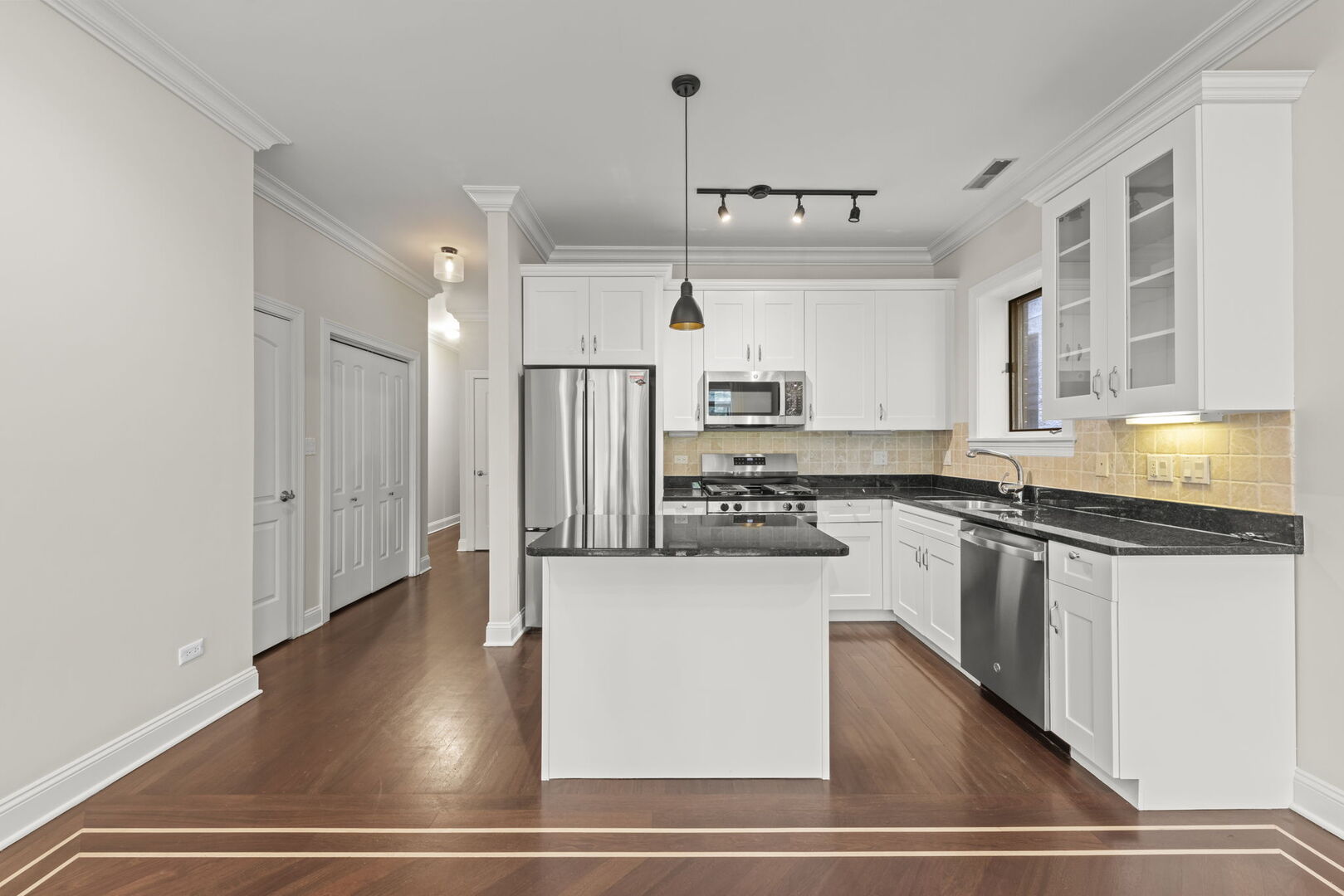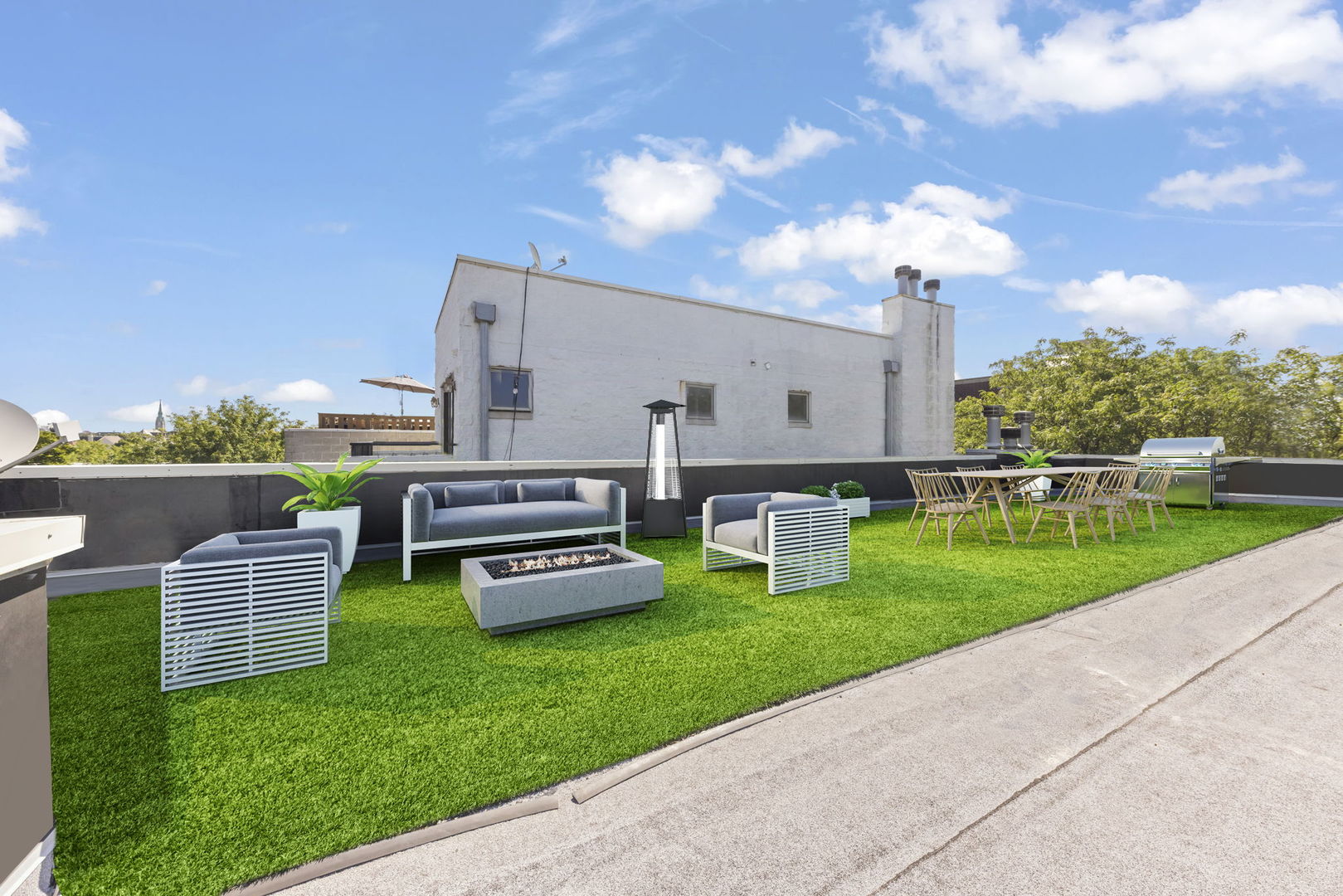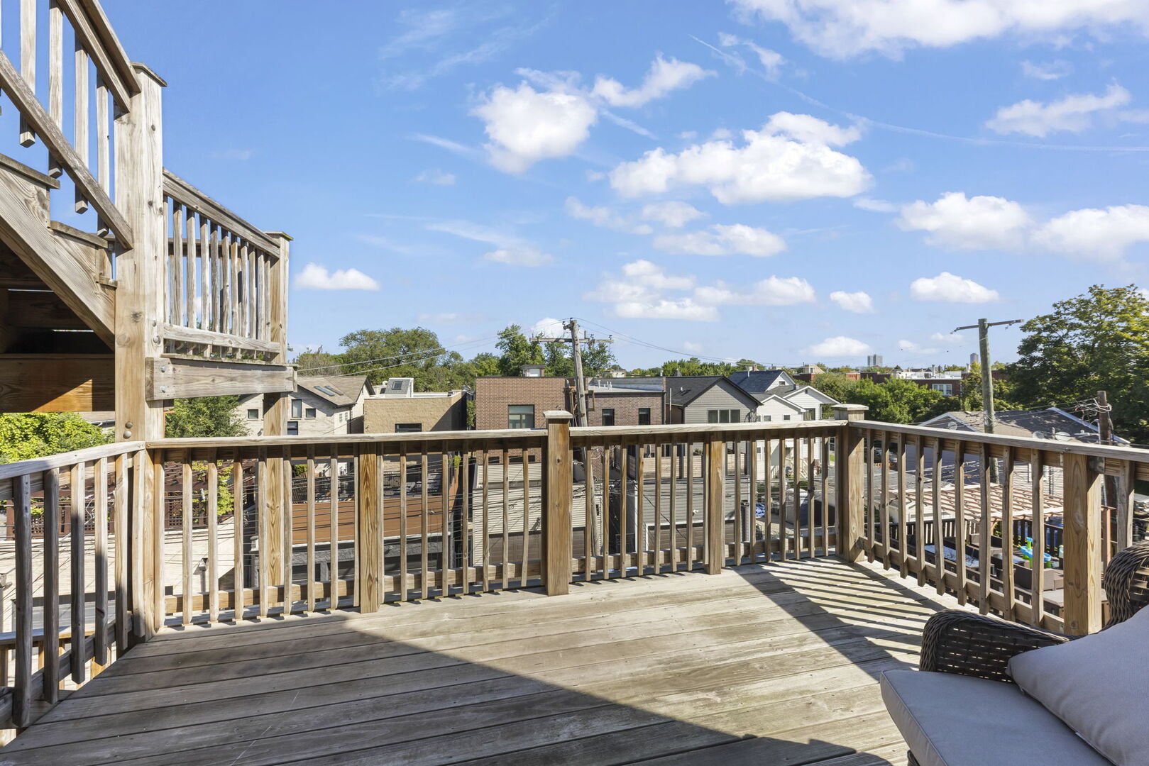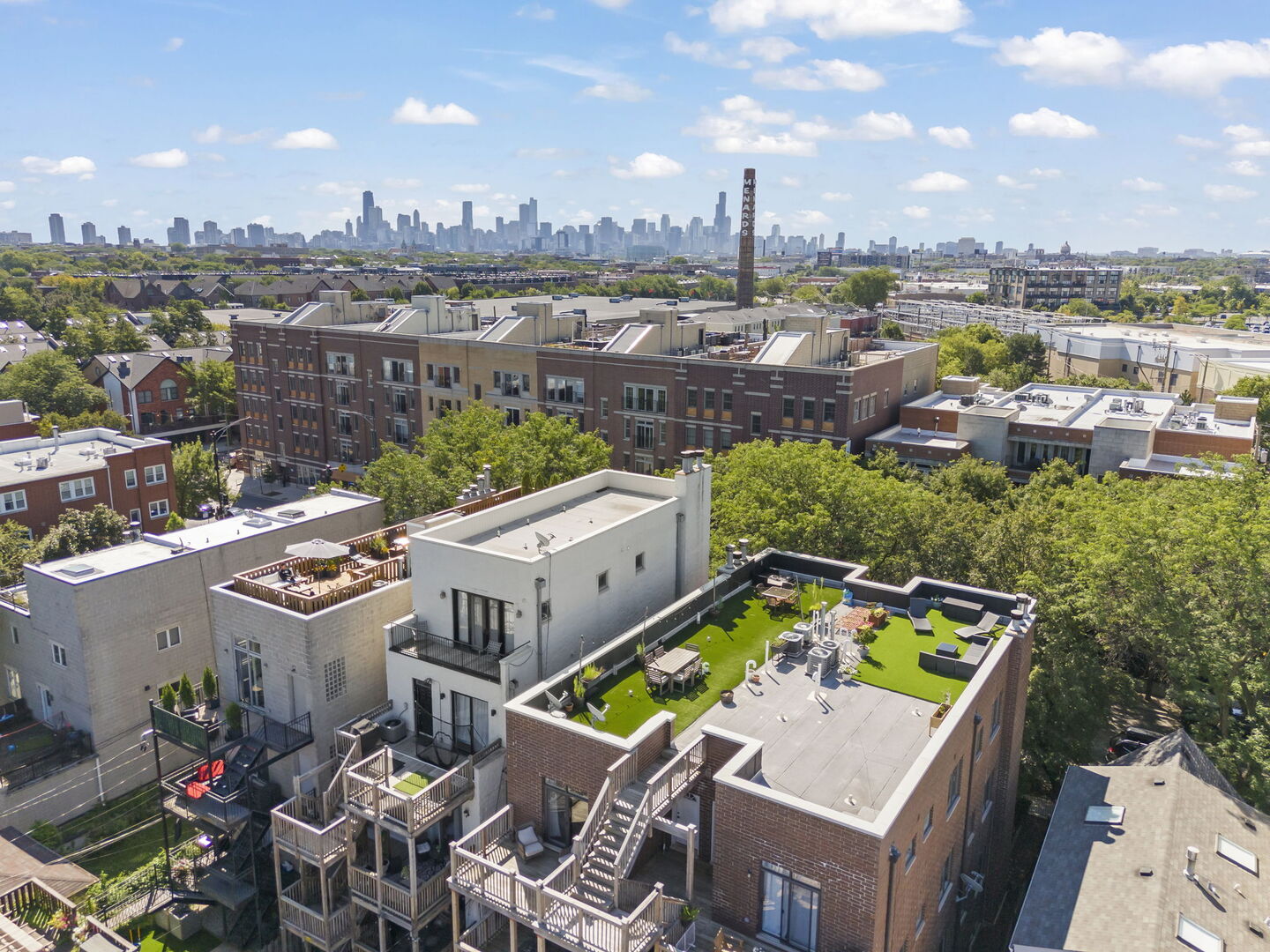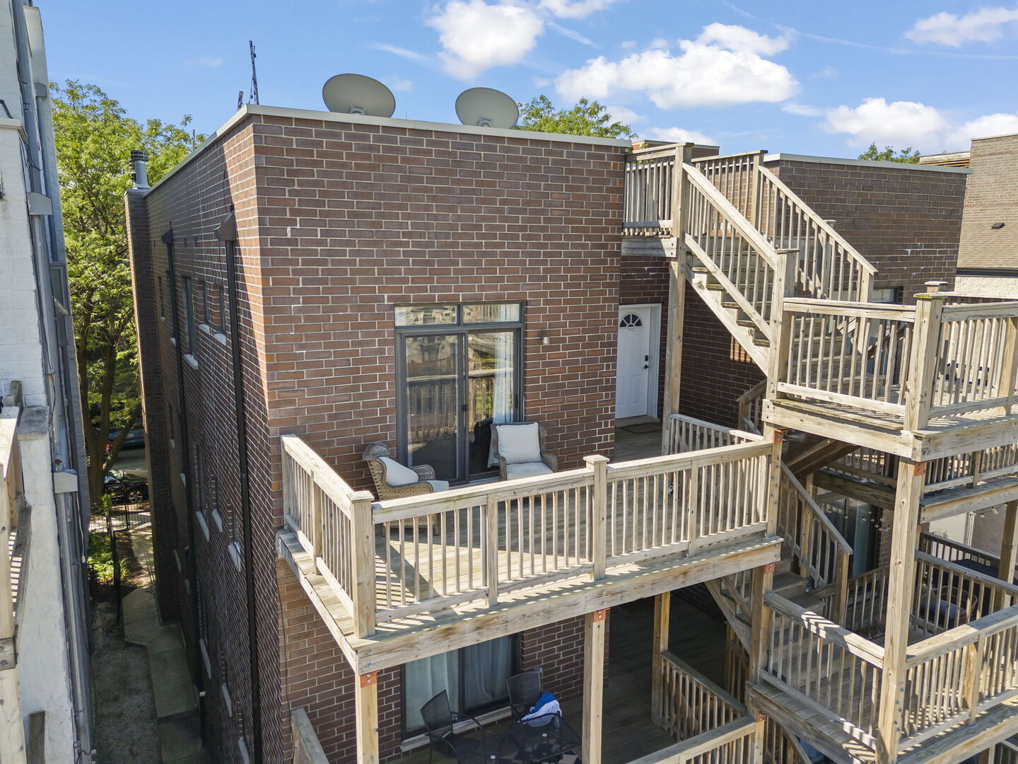 Welcome to your private retreat in the heart of Lakeview, Roscoe Village, and Lincoln Park. This three-bedroom, two-bath condo is defined by its unmatched outdoor living, featuring a sprawling rooftop deck finished in turf and stretching the full length of the home. Perfect for summer barbecues, morning workouts, or simply taking in the skyline views. The primary suite also opens to a private deck, giving you two distinct outdoor escapes. Inside, you will find an open-concept floor plan with a sun-filled living area, Juliet balcony, and cozy wood-burning fireplace. The kitchen has been refreshed with new stainless steel appliances, granite counters, and generous cabinet space, flowing seamlessly into the dining and living area. The primary suite includes a walk-in closet and full bath, while two additional bedrooms share a full bath. Additional highlights include freshly painted interiors, hardwood floors, in-unit laundry, central AC, recessed lighting, tandem parking for two cars, and a storage closet. The location makes daily life effortless. Walk to Roscoe Village dining, nightlife, and shopping, or enjoy neighborhood favorites like Hexe Coffee. With Hamlin Park, Midtown Athletic Club, and multiple fitness centers nearby, staying active is easy. Commuters will appreciate quick access to the highway, while everyday errands are simplified with Jewel, Mariano’s, Costco, and Petco just minutes away. This home combines modern city living with rare outdoor space, making it a one-of-a-kind opportunity.