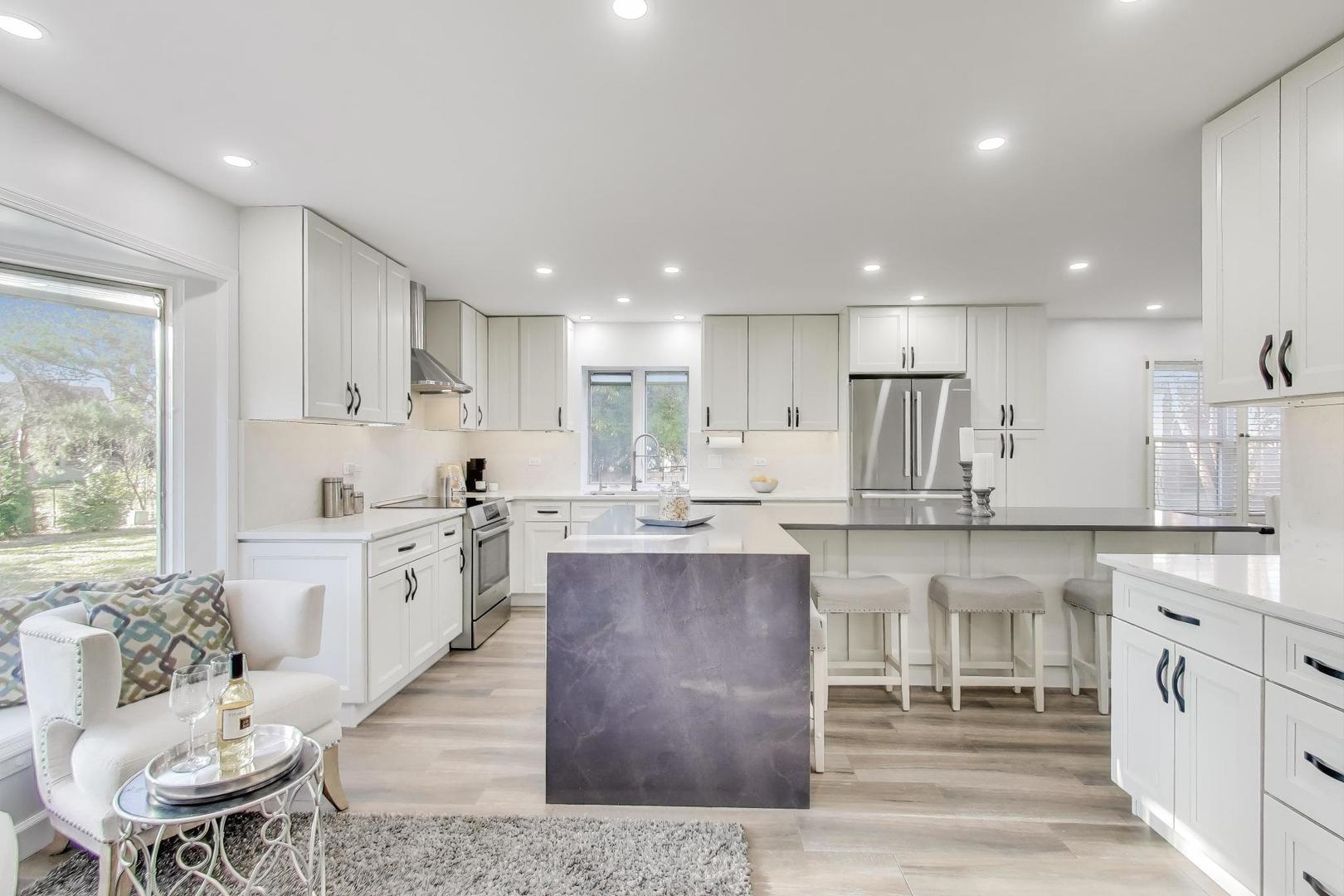 **MULTIPLE OFFERS RECEIVED, BEST AND FINAL DUE TUESDAY, NOVEMBER 18 VIA EMAIL BY 5PM CST** This charming and UPDATED 4 bedroom brick colonial offers 3,000 sq ft of above grade living space on a private, oversized half-acre lot (0.52 acres) in award-winning School District 27/225, just steps to West Park’s pool, ice rink, baseball fields and walking paths! Don’t miss the extensive list of updates done since 2022 including NEW ROOF, NEW WINDOWS, NEW KITCHEN, NEW POOL EQUIPMENT, A WHOLE HOUSE GENERATOR AND SO MUCH MORE! The welcoming foyer features an open staircase, large coat closet, and views to both the living and family rooms. Large rooms throughout the main floor are filled with natural light from new windows and Andersen sliders. The living room includes newer carpet, plantation shutters and a dining area that opens seamlessly to the renovated kitchen. The NEW white kitchen serves as the heart of the home with an oversized island with plenty of storage and seating, soft-close cabinetry, quartz countertops, stainless steel appliances, including an induction oven with hood, decorative backsplash, built-in pantry, buffet bar, and decorative wood tile flooring. A sunny bay-windowed sitting area overlooks the backyard with new stamped concrete patio, and heated in-ground pool while still having plenty of yard space for outdoor games in this pleasant surprise of a HALF ACRE yard. The family room features a wood-burning fireplace, hardwood floors, wet bar with beverage refrigerator, and new sliders to the backyard patio. A convenient mudroom with front-loading washer and dryer provides access to the backyard as well. Upstairs, the primary suite offers a walk-in closet, private en-suite bath with separate shower, and new Andersen sliders to the balcony overlooking the expansive backyard. Three additional bedrooms, with closet organizers and newly refinished hardwood floors, share a hall bath with white vanity and dual sinks. The finished lower level (~850 sq ft) provides a rec room, bar, built-in cabinetry, and additional storage in the mechanical room and crawl space. SO MANY UPDATES including…a NEW and complete kitchen remodel & extension (2022) to include new cabinetry, quartz counters, stainless appliances, induction oven & hood, lighting, plumbing fixtures, built-in pantry, and decorative wood tile, New roof & gutters (2024), New 75 gallon hot water heater (2024), New windows (front side, 2025), Two new Andersen slider sets (primary bedroom & family room, 2025), Heated in-ground pool with new surface paint, new pool heater (2022), pool filter (2022), and new electrical service (2025)…and the list goes on, keep reading! **ALL NEW SINCE 2022** whole-house generator, spray foam insulation in crawl space, new stamped & stained concrete patio and sidewalk, new exterior sewer clean out, refinished second-floor hardwoods, new carpet in living room, all ductwork cleaned and sealed gaps, new chimney liner, new furnace liner, new chimney cap, new attic insulation, new overhead garage door opener, extensive professional landscaping with Green Giant Arborvitae, boxwoods, and in-ground sprinklers (including beds too), New Rachio irrigation control panel, Lutron wall switches throughout, and the whole home interior has been freshly painted, ceilings too! Nearby West Park features walking paths and baseball fields and is adjacent to Northbrook Sports Center, with opportunities for entertainment and exercise for everyone, including tennis and pickleball courts, two playgrounds, public swimming pool, and the ice skating rink. This home combines exceptional indoor space with a show-stopping backyard and a location that simply can’t be beat – a rare combination of space, updates galore, and an entertaining-ready outdoor living space that is just steps from West Park, local shops and restaurants!