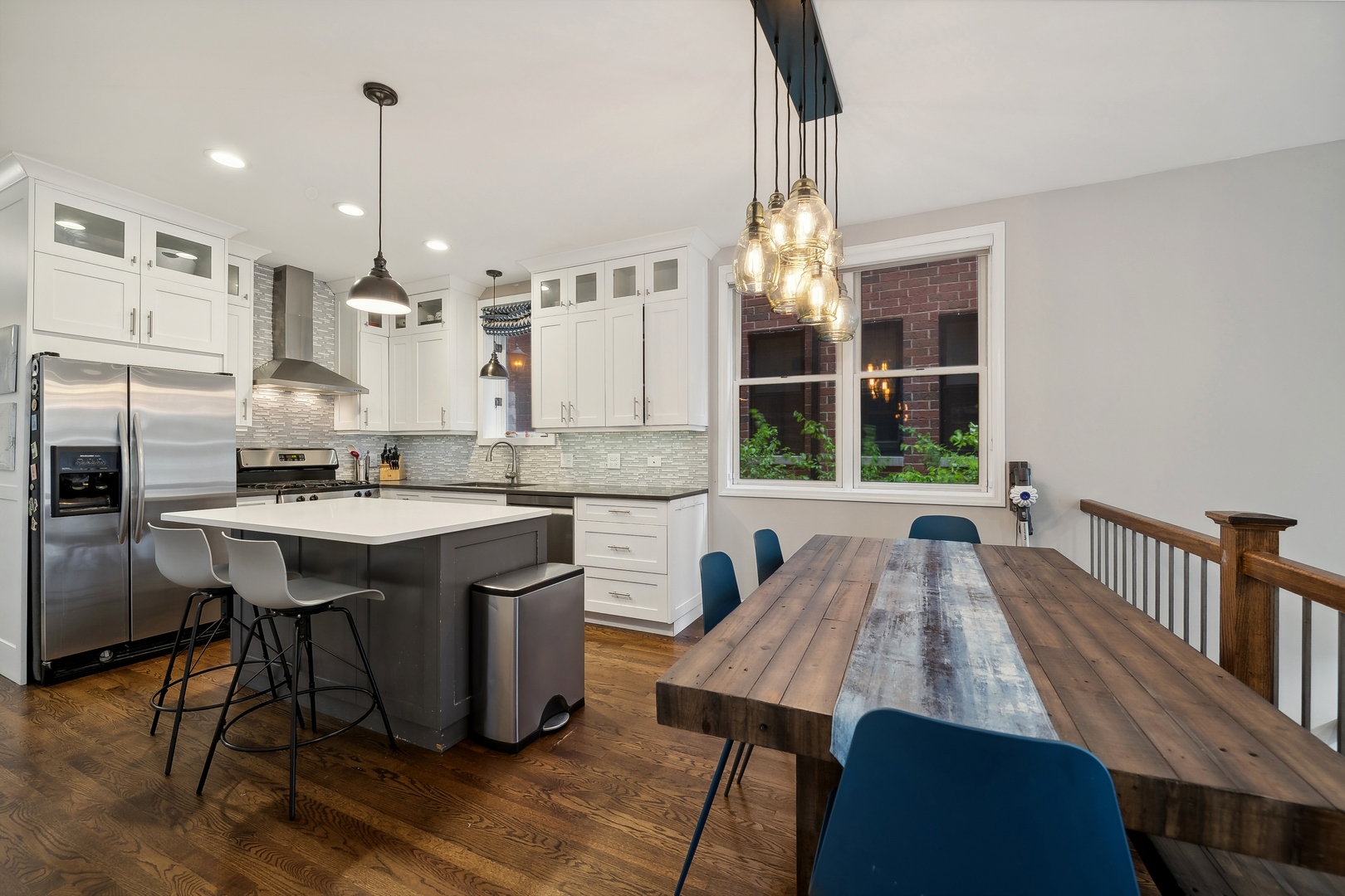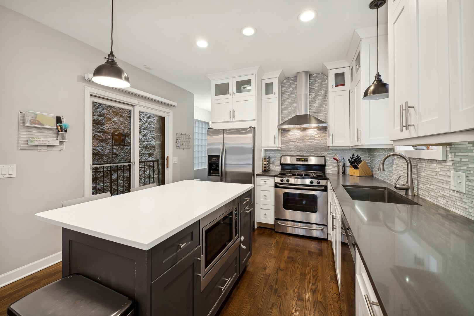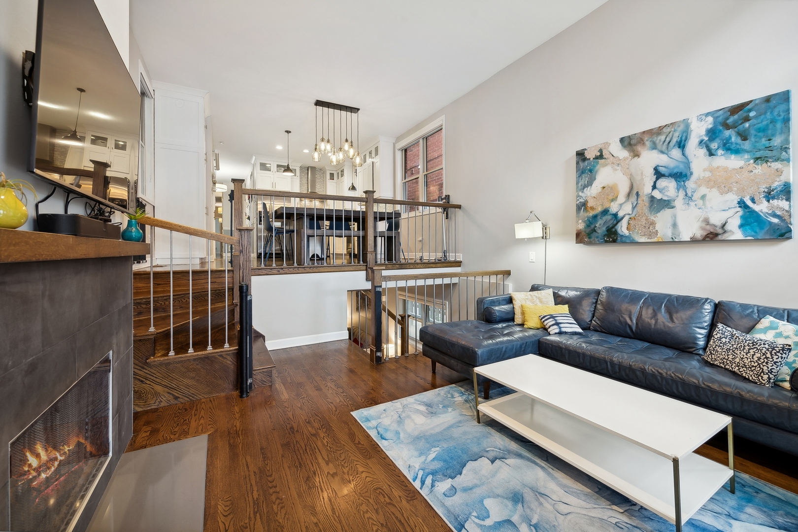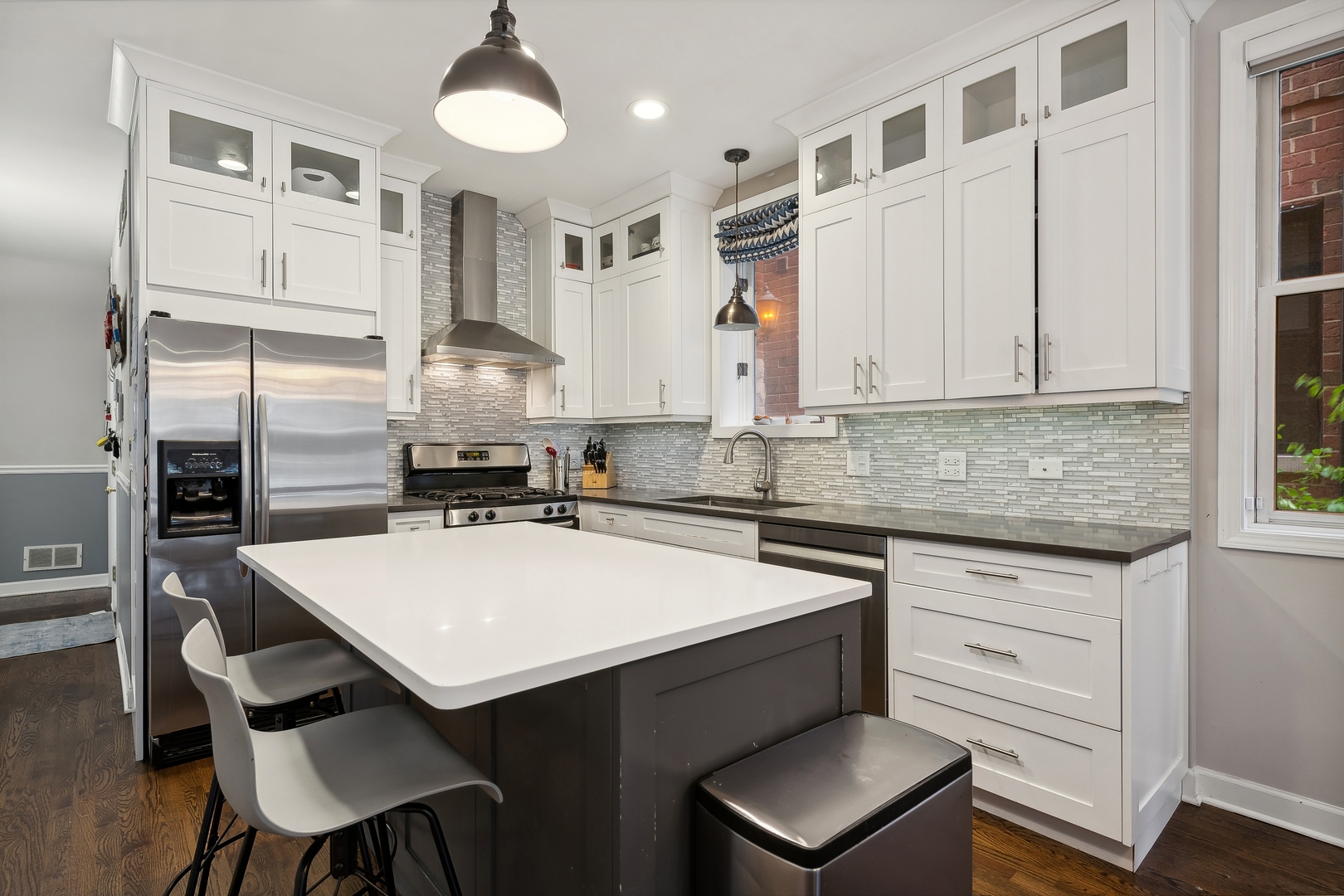 Massive duplex in the heart of Bucktown with an unbelievable amount of space and storage that lives like a SFH! This beautiful unit features a great layout with 2 bedrooms up, 2 bedrooms down, and two living spaces. Modern eat in kitchen features quartz countertops, glass tile backsplash, stainless appliances and a perfect grilling space right off the kitchen. Main living space walks out to a small patio, has soaring ceilings, and a fireplace. Basement has new carpeting throughout, large living space newly remodeled bath and a huge storage room plus additional storage. Rear deck is perfect for entertaining. Garage parking included. Location! Location! Location! 3 blocks to 606, close proximity to bars, restaurants, and shopping, and on a quiet stretch of Damen.