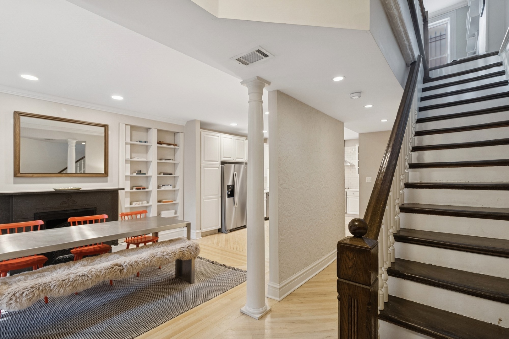 OSCAR MAYER SCHOOL DISTRICT! WALK TO ARMITAGE ST, MULTIPLE PARKS & ALL THAT LINCOLN PARK HAS TO OFFER FROM THIS RENOVATED ALL-BRICK/EXTRA-WIDE (19′ WIDE INTERIOR) 3BD+FAM RM/1.1BA MAGAZINE-CALIBER MASTERPIECE W/A CHARMING VINTAGE FACADE, ORIGINAL DETAILS THROUGHOUT (EG, ORIGINAL STAINED GLASS & FIREPLACE MANTLES),TRIPLE PANE WINDOWS ON REAR OF HOME FOR SOUND ATTENUATION & EVERY INTERIOR MODERN UPGRADE/CONVENIENCE W/INCREDIBLE OUTDOOR SPACE INCL A BRAND NEW(2023)/PROFESSIONALLY DESIGNED HUGE FRONT PATIO & GREAT DECK OFF OF LARGE LIVING RM W/2 FIREPLACES;CUSTOM BOSCH SS EAT-IN ISLAND KITCHEN W/BREAKFAST BAR & DINING AREA/FAMILY ROOM W/ADDITIONAL FIREPLACE;SOUGHT-AFTER 3BD ON 2ND FLOOR & SPA-CALIBER BATHS & PROFESSIONALLY ORGANIZED CLOSETS T/O & CONVENIENTLY LOCATED LAUNDRY ON MAIN LEVEL;NEW FRIDGE (2024);NEW WATER HEATER (2022);NEW W/D (2022);NEW DISHWASHER (2022);NEW FURNACE (2023);NEW AC (2016);NEW TEAR OFF ROOF (2012);RECENTLY TUCKPOINTED & HEATING COILS IN GUTTERS;PARKING INCLUDED!