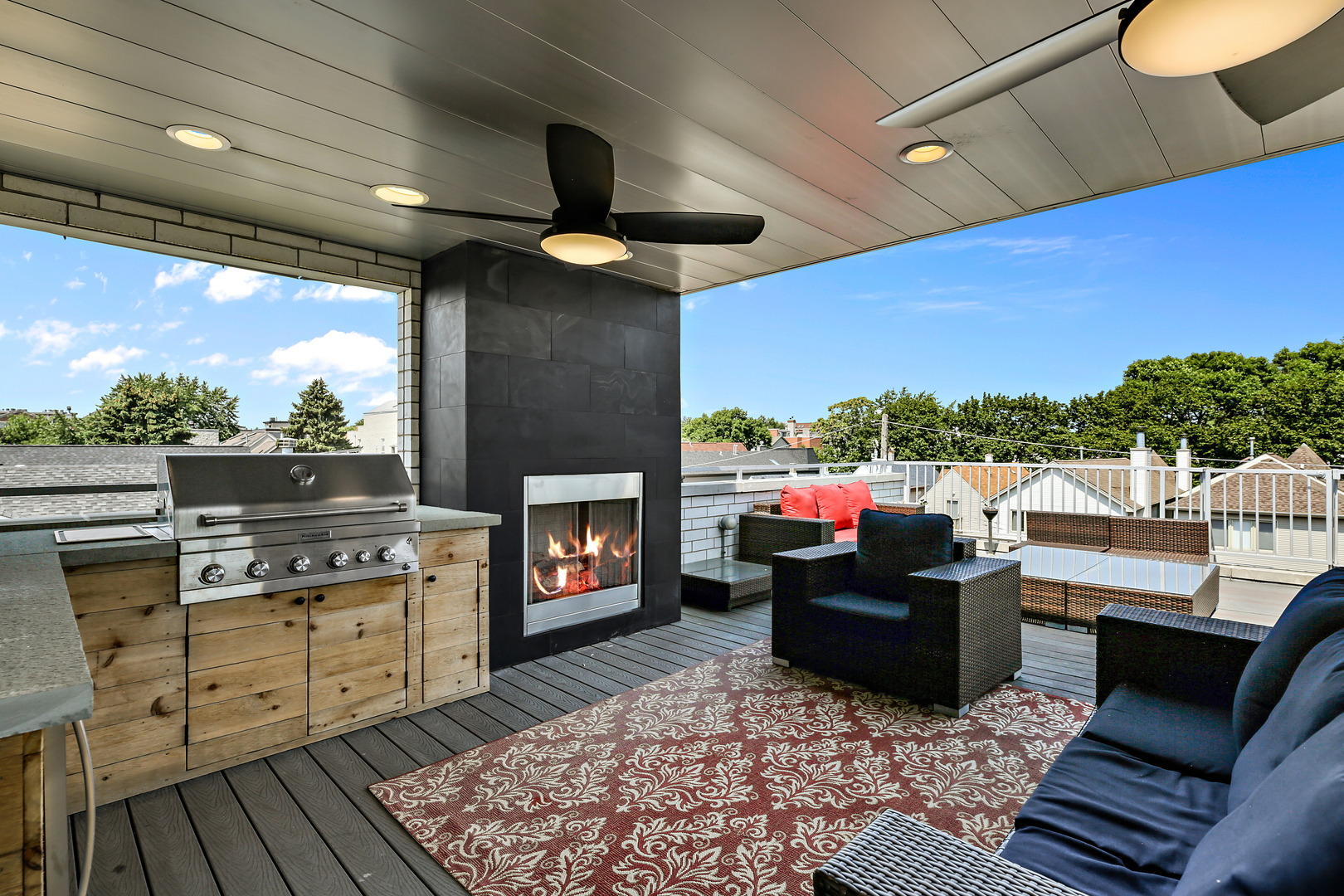 Contemporary and modern does not begin to describe this wonderful 5 bedroom, 3-full, 1-half bath home in the highly desirable Roscoe Village/West Lakeview Neighborhood. From the moment you step into this former model home, you can tell this is something out of the ordinary. Pass your private front patio and through the front door, you immediately notice the expansive and sun-filled living room with south facing, floor to ceiling windows. The combined living/dining room features amazing millwork with crown molding and soaring ceilings. As you move toward the custom designed kitchen, you pass a 200 plus bottle, climate controlled wine room. The chef inspired kitchen has thoughtfully designed counter seating which opens into the expansive family room with fireplace. Step through the rear French doors onto the deck; One of your five outdoor spaces, leads to the 2-car, detached garage, wired for electric vehicles, has a roof deck built-out with a custom basketball court. There are 3 bedrooms on the second level with a spacious primary suite, massive walk-in closet, laundry room and custom spa-like bath with double vanity, walk-in steam shower and separate whirlpool tub. Also, a stunning roof-top, full floor penthouse offers unmatched entertaining space with north and south facing rooftop decks with an unobstructed view of the city. One of the decks is ready for entertaining with outdoor fireplace, kitchen and television hook-up. The 2nd, south facing deck is a gardener’s dream with built-in planter boxes and custom pergola. The lower level contains the 4th and 5th bedroom one of which is currently utilized as a custom, state-of-the-art theater room that would make any well-known movie director jealous. There is a 2nd laundry room with full-size washer and dryer, spacious family room with ceilings so high, you wouldn’t know you’re in a lower level. Minutes from the expressway and walking distance to 4 different parks. Minutes from Mariano’s, Jewel-Osco, Aldi, Costco, Home Goods, Target, Home Depot and Mid-Town Athletic Club. Move-in and enjoy the neighborhood amenities like Hamlin Park, Hexe Coffee Roasters, Pizzeria Uno and seasonal events like Retro on Roscoe and Burger Fest.