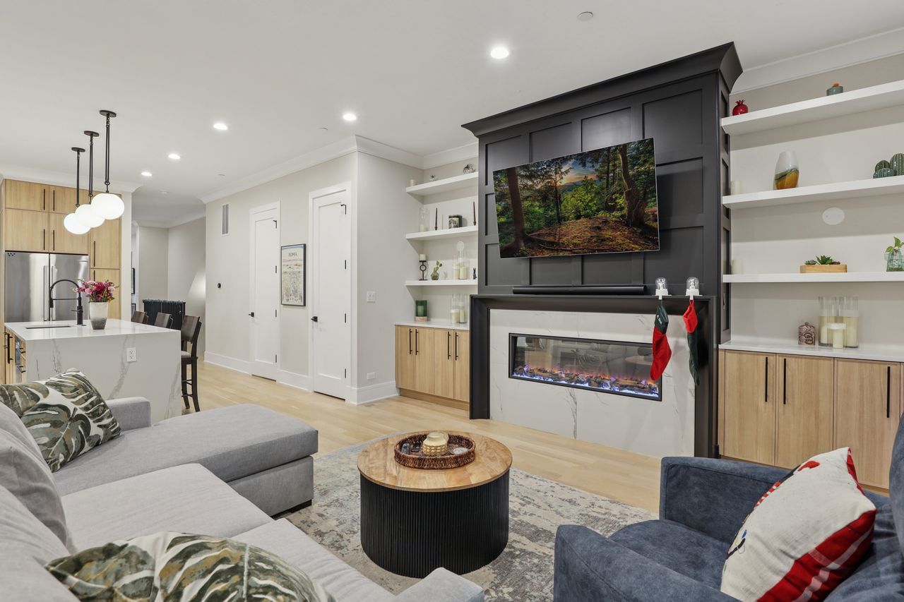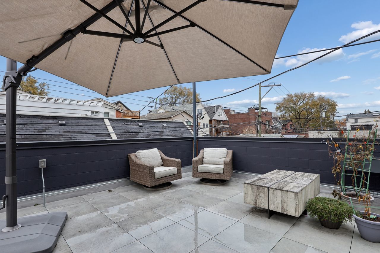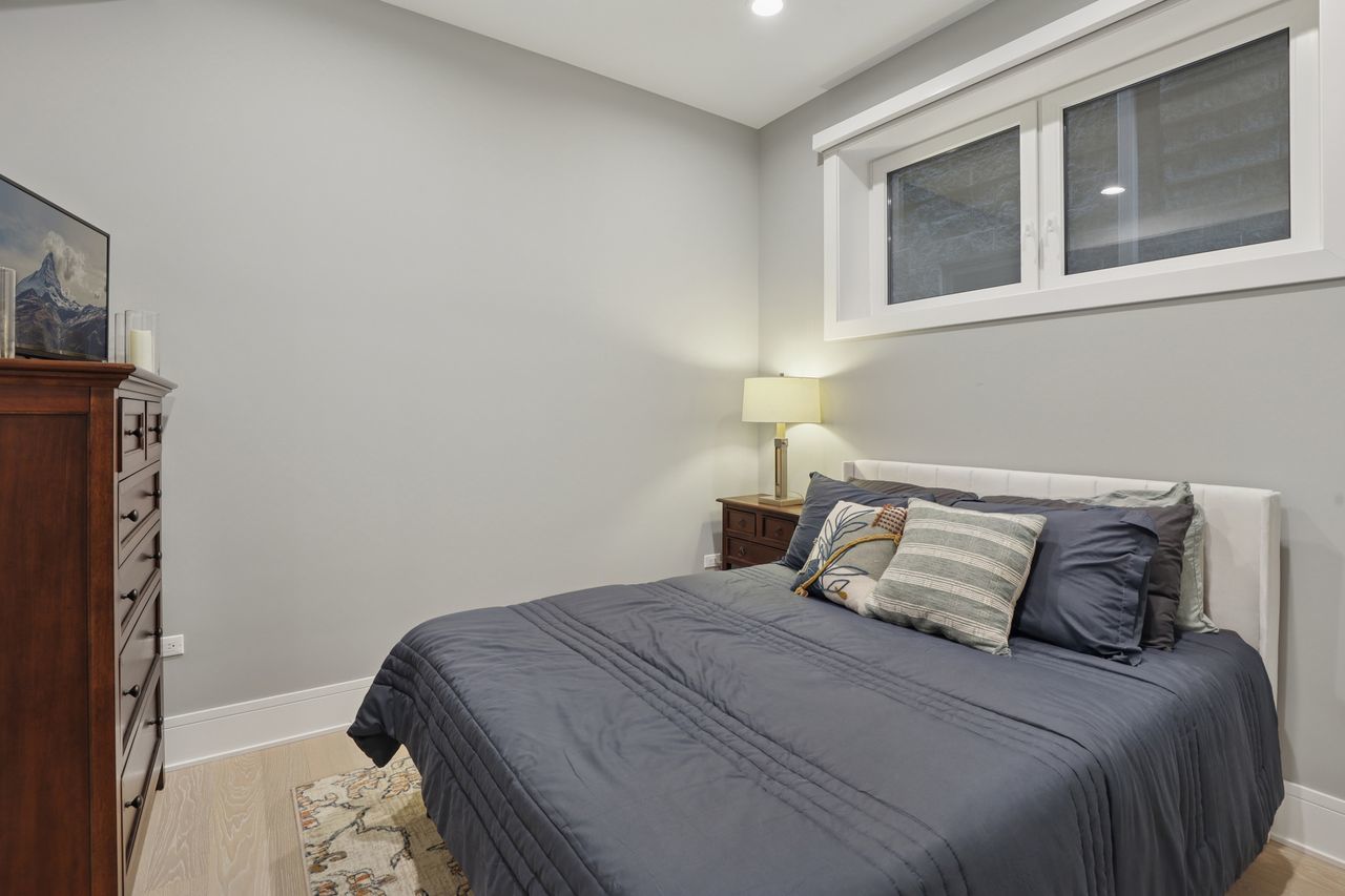 Gorgeous Roscoe Village Duplex Down with 4BR! Professionally designed with top of the line finishes and special attention to details with amazing craftsmanship. Enjoy the chef’s kitchen with contemporary cabinets, quartz counter tops, a large island, and stainless steel appliances including a beverage center. Relax in the beautiful family room off of the kitchen with custom built in bookcases and a gorgeous fireplace. Family room leads to a private, covered terrace with a ceiling fan and 10ft folding windows/doors. Perfect space for grilling and entertaining! Many luxury finishes such as 8′ doors, 7″ wide plank flooring, and custom powered shades with remote. Live your best life in the lower level with high ceilings and radiant heat with 4 bedrooms and 2 baths. It boasts a spa like primary suite with an enormous walk in closet. The impressive primary bath has a double vanity, separate shower and free standing soaking tub, with stunning designer tiles and light fixtures. This home has amazing outdoor space that leads to terrace from family room, back deck and private garage roof deck. Garage parking is included in the price. Everything you are looking for in the heart of Roscoe Village. Walk to the el, grocery stores, boutiques and amazing restaurants.