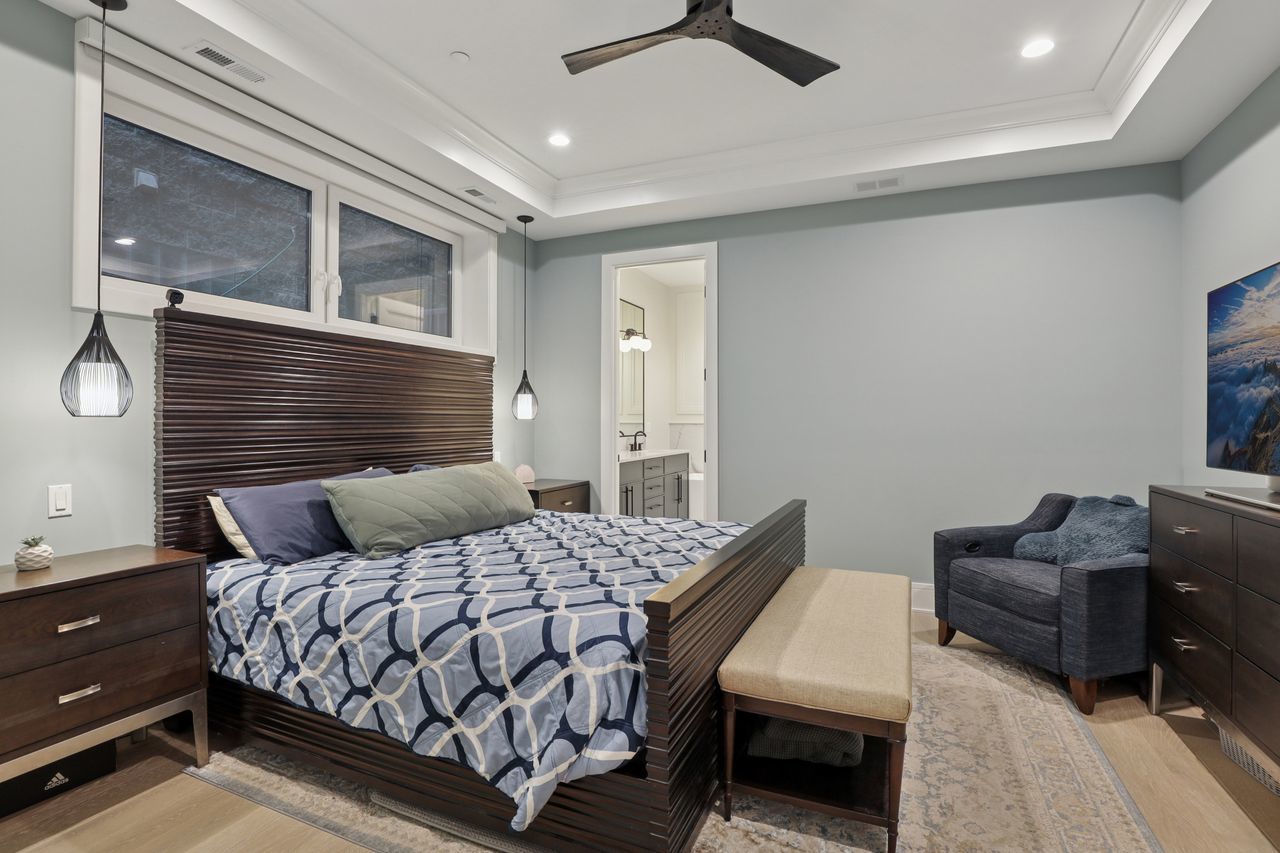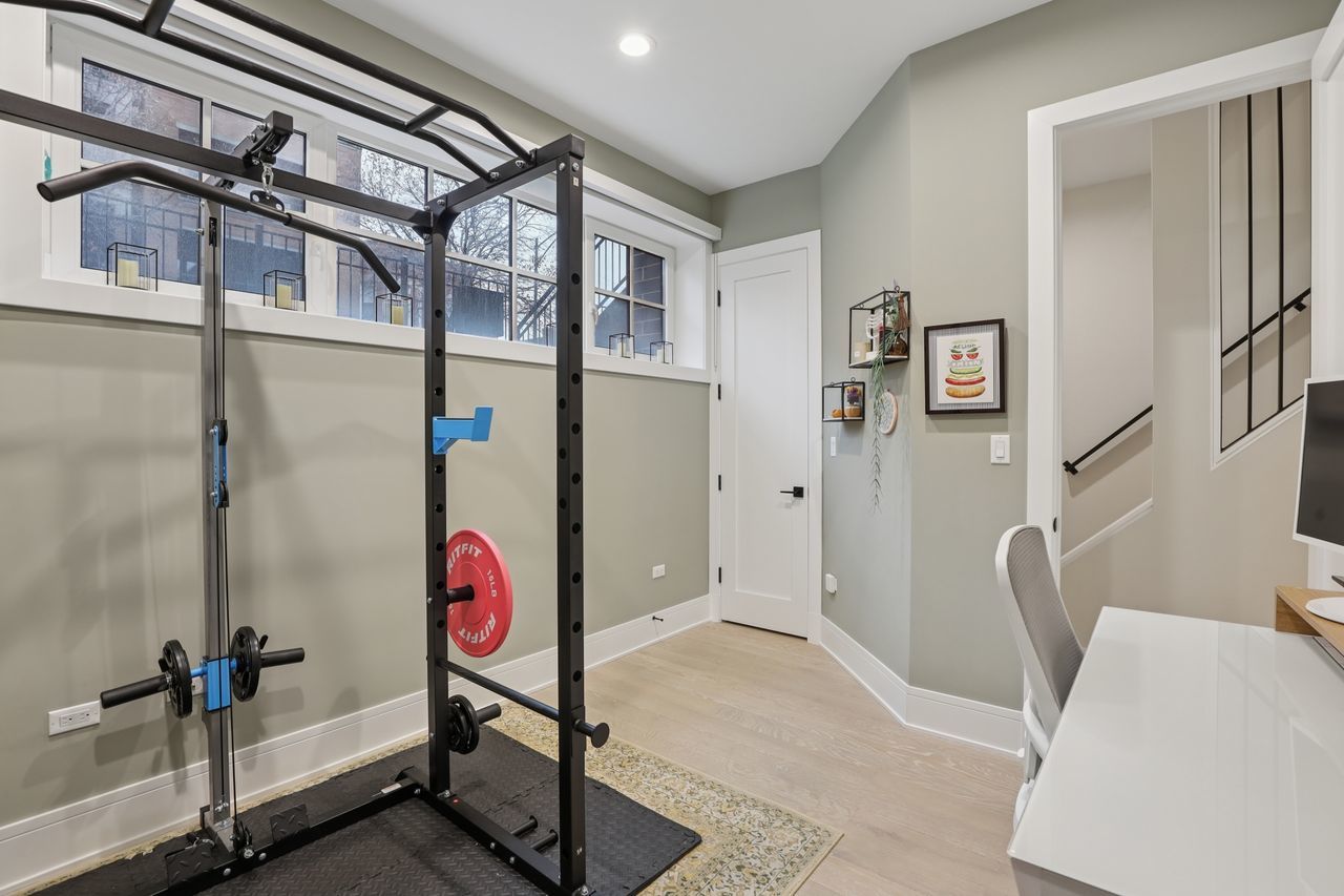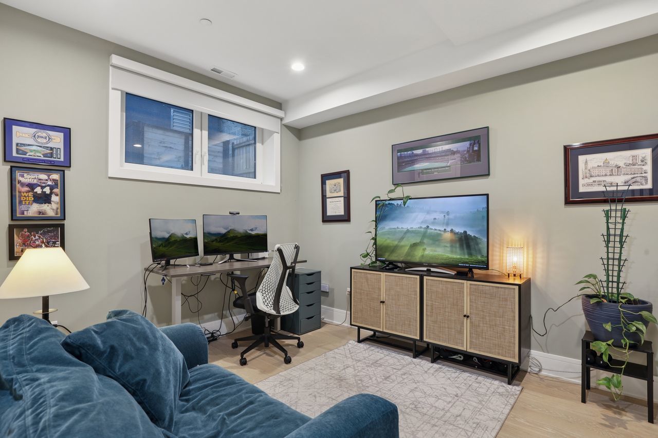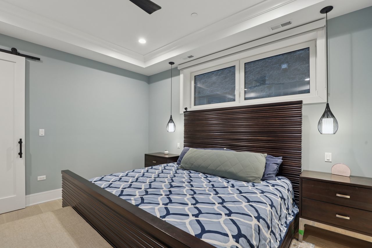 Gorgeous Roscoe Village Duplex Down with 4BR! Professionally designed with top of the line finishes and special attention to details with amazing craftsmanship. Enjoy the chef’s kitchen with contemporary cabinets, quartz counter tops, a large island, and stainless steel appliances including a beverage center. Relax in the beautiful family room off of the kitchen with custom built in bookcases and a gorgeous fireplace. Family room leads to a private, covered terrace with a ceiling fan and 10ft folding windows/doors. Perfect space for grilling and entertaining! Many luxury finishes such as 8′ doors, 7″ wide plank flooring, and custom powered shades with remote. Live your best life in the lower level with high ceilings and radiant heat with 4 bedrooms and 2 baths. It boasts a spa like primary suite with an enormous walk in closet. The impressive primary bath has a double vanity, separate shower and free standing soaking tub, with stunning designer tiles and light fixtures. This home has amazing outdoor space that leads to terrace from family room, back deck and private garage roof deck. Garage parking is included in the price. Everything you are looking for in the heart of Roscoe Village. Walk to the el, grocery stores, boutiques and amazing restaurants.
