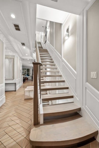 This extraordinary penthouse, built as the developer’s personal residence, is being offered for the first time and is a rare opportunity to own this masterpiece crafted by the highly acclaimed developer – PLD Homes. Nestled in the highly desirable Southeast Lincoln Park. Boutique condo building with just 2 units.This luxurious home offers an unmatched living experience, with a private elevator, a 3-car heated attached garage, and expansive living spaces that rival those of a single-family home. Bright & Airy: With east, west, and south exposures, natural light floods the space throughout the day, highlighting the modern classic interior design that blends traditional elements with contemporary flair. The dual custom floating staircases are a striking focal point of the interior, paired with rift cut oak, herringbone, heated floors bringing warmth and elegance. No expense was speared, House of Rohl plumbing fixtures, exotic marble limestone, quartzite surfaces and countertops as well as an extensive trim work throughout add a layer of refinement. Multi-zone climate control, steam-forced central humidifier, and two domestic water heating systems ensure comfort and convenience. Chef’s Kitchen:State-of-the-Art Appliances: Equipped with 2 Sub-Zero fridge/freezer columns, a 48″ Wolf dual fuel range with griddle, and an external blower, 1200 CFM hood. Two Miele dishwashers, farmer’s sink and a Pantry/Butler’s pantry with an additional prep sink make this kitchen a chef’s dream. An Iceberg countertop completes the room. A dramatic, oversized wood-burning fireplace with a French limestone mantel anchors the family room, while a wall of windows with south and west exposure floods the room with natural light. Motorized roller shades. The living and dining rooms boast ample space, enhanced by a built-in wet bar in rich, dark chocolate brown, rift cut oak with a dual-control Sub-Zero wine fridge. Cove lighting and custom sheers elevate the ambiance. Gracious double door into the primary suite, featuring 4 closets including a shoe closet with an inconspicuously built in custom beveled mirror. Primary bathroom exudes opulence with steam shower, free standing tub, and double vanity, enclosed water closet with washlet seat and custom paneling. Directly off the kitchen and family room, the 15’x10′ terrace is an urban oasis. Ipe decking, pergola, privacy fencing, and professional landscaping with a sprinkler system create a serene environment. Gas, electric, and water connections, perfect for outdoor living and entertaining. Atop the building, the rooftop with sweeping city views is a private oasis. Enjoy the covered space with wet bar, dishwasher, sink, and beverage center, along with Ipe decking, a privacy fence, TV, and speakers. Mature landscaping, a lawn sprinkler system, and even a dog potty space make it a truly unique, luxurious outdoor retreat. Just steps from one of the largest and most enchanting parks in the city of Chicago at the Lincoln Park Zoo, farmer’s market, lakefront, and vibrant dining and nightlife options in Lincoln Park, Old Town and downtown, this location is unparalleled. With easy access to public transportation, you’re minutes away from everything the city has to offer.