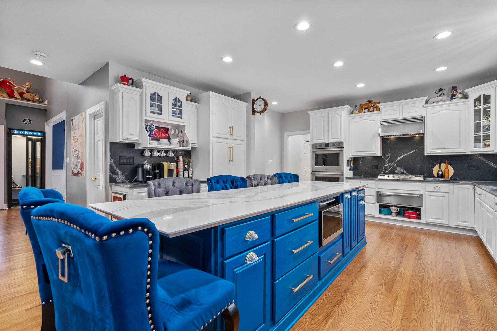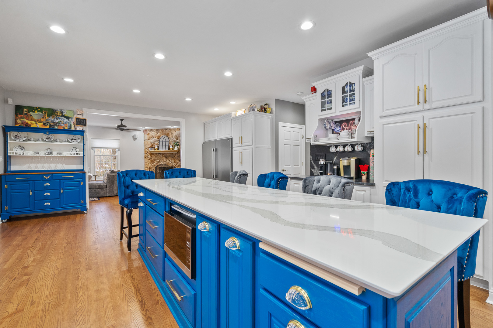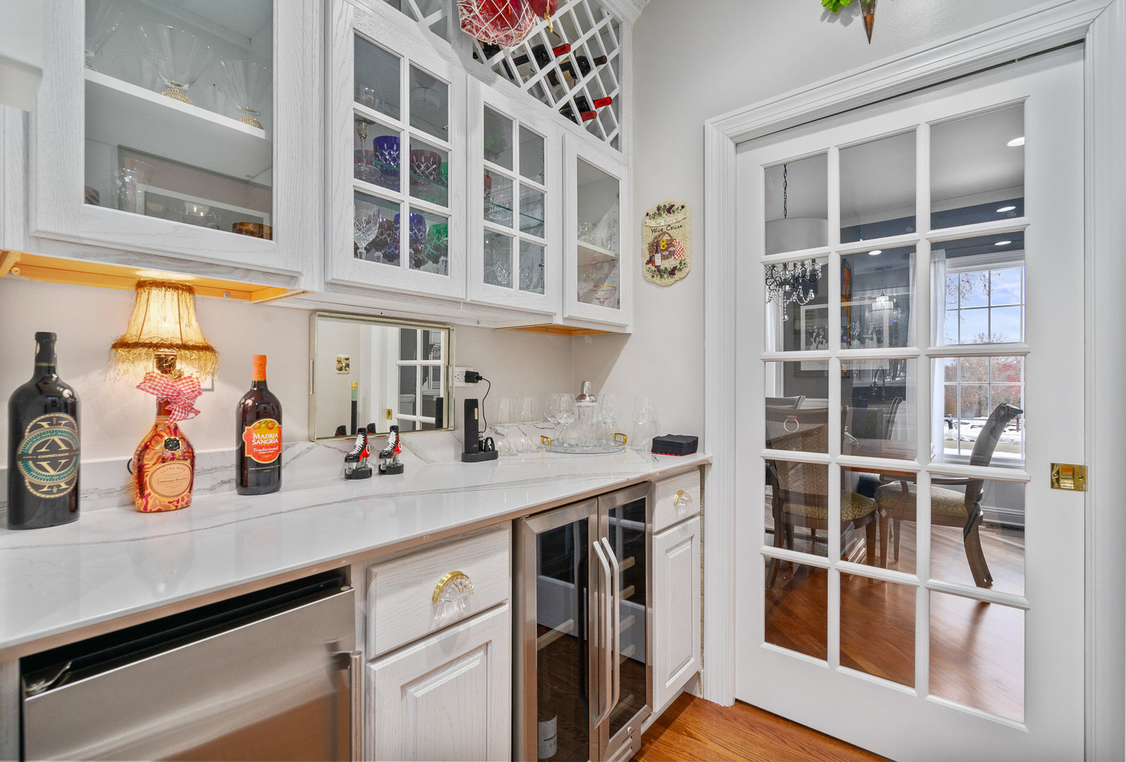 Experience luxury on a grand scale in this extraordinary custom estate boasting 6,000 square feet of refined above-grade living space. Perfectly nestled on a serene 1.5-acre wooded lot in one of the area’s most prestigious subdivisions, this remarkable residence blends timeless sophistication with exceptional functionality-offering up to eight bedrooms, five full baths, and two half baths. A stately entry welcomes you into an impressive interior highlighted by rich architectural details, including crown molding, wainscoting, hardwood flooring, and expansive sun-filled spaces. The elegant formal living room sets the tone with a gas-start wood-burning fireplace and detailed millwork, flowing seamlessly into the formal dining room-an exquisite backdrop for gatherings and celebrations. The beautifully updated chef’s kitchen is the heart of the home, showcasing a large white quartz island, staggered white cabinetry, granite counters, spacious pantry, and professional-grade stainless steel appliances including a double oven and warming drawer. A charming Butler’s pantry with wine refrigerator and ice maker adds ease and sophistication to entertaining. A set of double doors leads to the main-level office, offering French-door access to the patio and scenic views of the wooded yard. This office is positioned within its own wing along with a full main-level bath, making it ideal for related living or a private guest suite. The expansive four-car heated garage with hot and cold water features an epoxy floor and direct access to the basement, while the tree-lined yard includes a 12′ x 16′ storage shed and irrigation system for added convenience. Daily life is enhanced by a well-appointed main-level laundry room with sink and laundry chute, a sun-soaked sunroom with a graceful bow window and patio access, and a sprawling family room-styled with a second gas-start wood-burning fireplace and hardwood flooring-perfect for relaxed gatherings. The luxurious primary suite is a private sanctuary, offering a spa-inspired bath with double raised vanity, oversized shower with rain head, water closet, and Travertine/Terrazzo flooring. Bedrooms two and three are connected by a Jack-and-Jill bath with double raised vanity, while bedroom four enjoys direct access to its own updated bathroom complete with whirlpool tub. The second level hosts a total of five bedrooms, thoughtfully designed for comfort and privacy. The exceptional third-floor retreat is an entertainer’s dream-featuring a spacious recreation room with its own refrigerator and powder room, ideal for game nights, relaxation, or extended guest stays. The finished basement is a destination of its own, offering a dedicated workout room, sauna, two-person hot tub, radiant-heated full bath, two additional bedrooms, recreation room space and abundant storage. Impeccably designed, thoughtfully updated, and masterfully crafted, this home offers incomparable living space, resort-style amenities, and the rare combination of privacy and prestige. An unmatched opportunity to own a true luxury estate. Renovations in the last five (5) years: New roof and dormers, New skylights on third floor, New furnace and AC on both the 1st and 2nd floors with new humidifiers, Two new Hot Water Heaters, All wooden floors sanded, re-stained and sealed, Kitchen has new island, new counter tops, backsplash, new sink, faucet, cooktop, dishwasher, osmosis water system, warming drawer and microwave, Butler pantry with ice maker and wine fridge, New washer and dryer, Storm doors on both front door and laundry room door, New garage door openers and springs, New service door on garage, New cement patio on back of house, Monitored Smoke alarm CO2 detectors throughout.