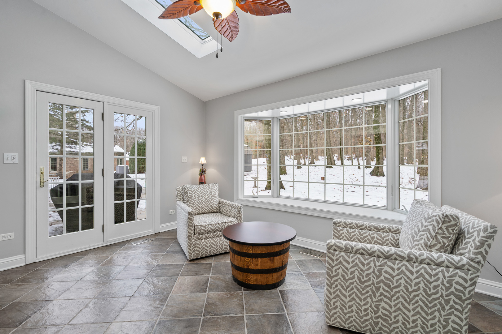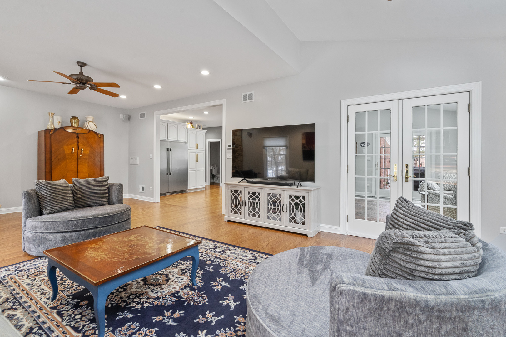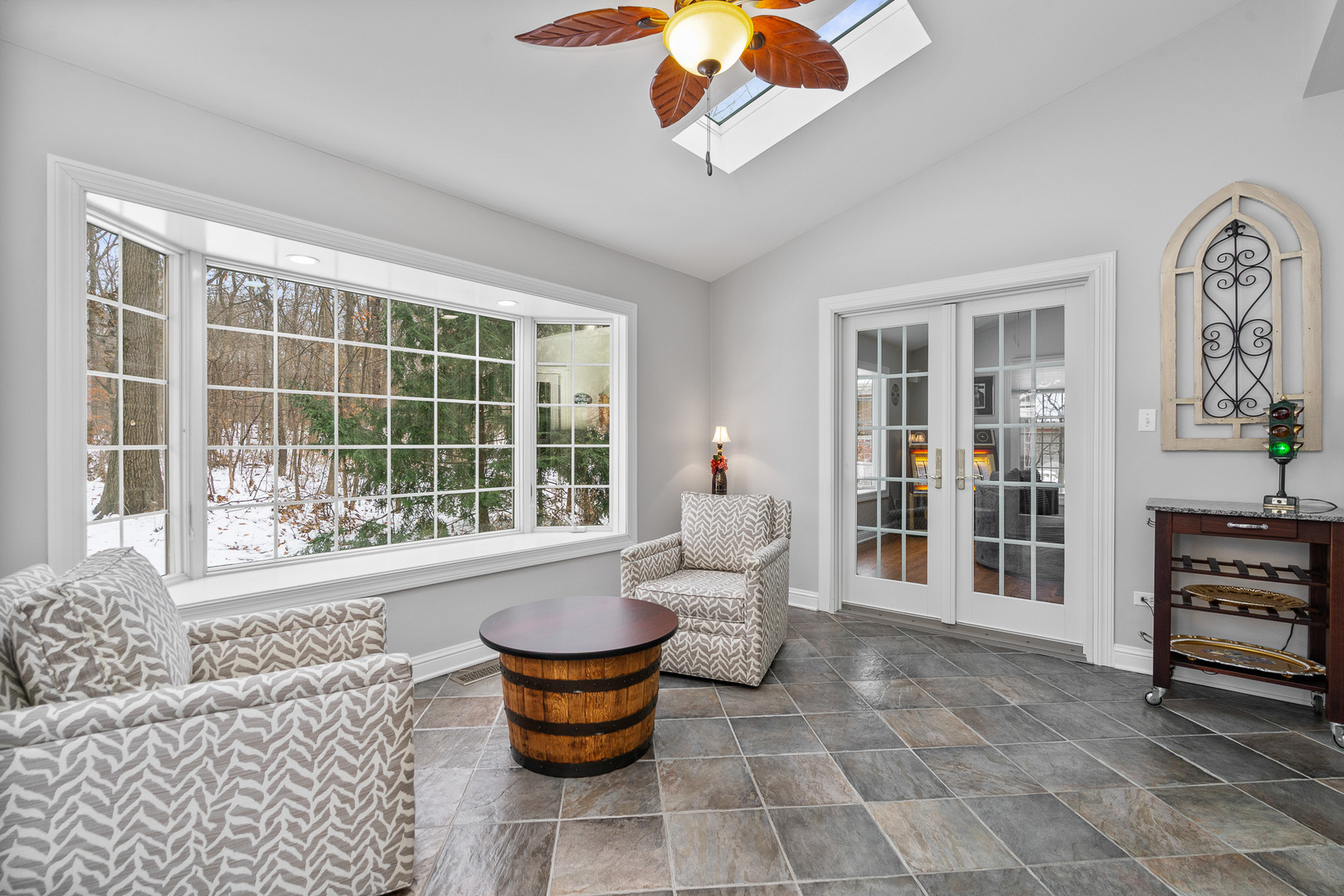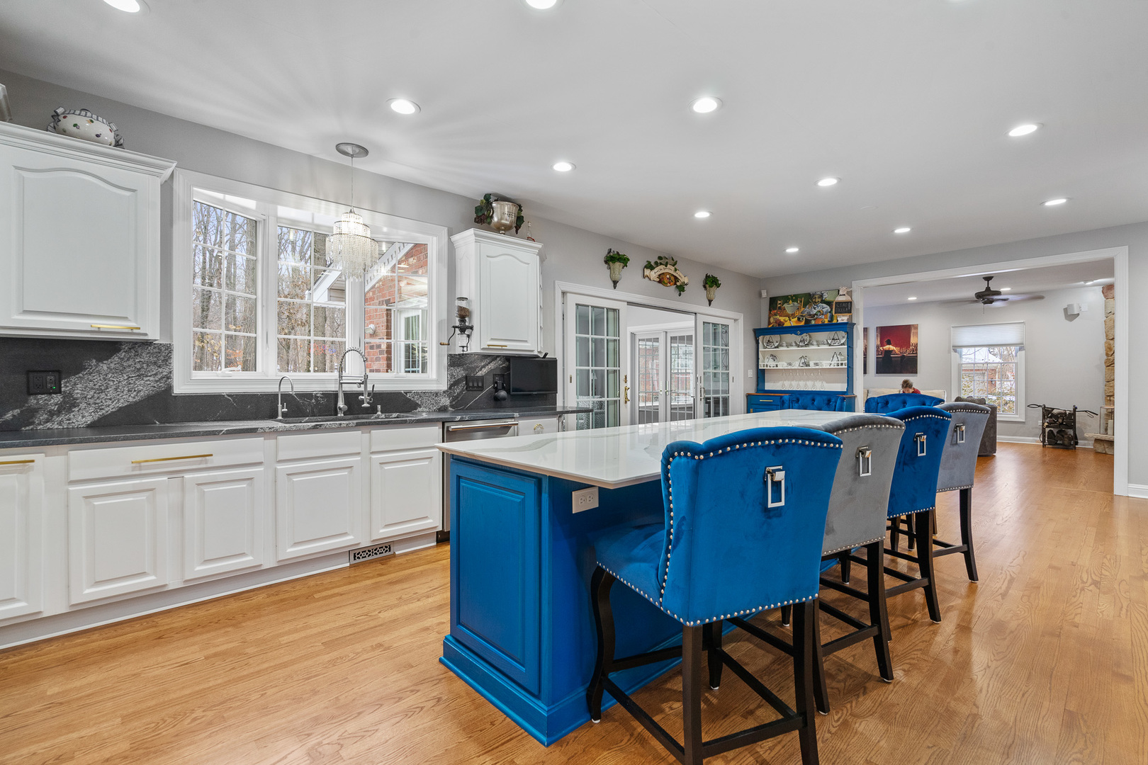 Experience luxury on a grand scale in this extraordinary custom estate boasting 6,000 square feet of refined above-grade living space. Perfectly nestled on a serene 1.5-acre wooded lot in one of the area’s most prestigious subdivisions, this remarkable residence blends timeless sophistication with exceptional functionality-offering up to eight bedrooms, five full baths, and two half baths. A stately entry welcomes you into an impressive interior highlighted by rich architectural details, including crown molding, wainscoting, hardwood flooring, and expansive sun-filled spaces. The elegant formal living room sets the tone with a gas-start wood-burning fireplace and detailed millwork, flowing seamlessly into the formal dining room-an exquisite backdrop for gatherings and celebrations. The beautifully updated chef’s kitchen is the heart of the home, showcasing a large white quartz island, staggered white cabinetry, granite counters, spacious pantry, and professional-grade stainless steel appliances including a double oven and warming drawer. A charming Butler’s pantry with wine refrigerator and ice maker adds ease and sophistication to entertaining. A set of double doors leads to the main-level office, offering French-door access to the patio and scenic views of the wooded yard. This office is positioned within its own wing along with a full main-level bath, making it ideal for related living or a private guest suite. The expansive four-car heated garage with hot and cold water features an epoxy floor and direct access to the basement, while the tree-lined yard includes a 12′ x 16′ storage shed and irrigation system for added convenience. Daily life is enhanced by a well-appointed main-level laundry room with sink and laundry chute, a sun-soaked sunroom with a graceful bow window and patio access, and a sprawling family room-styled with a second gas-start wood-burning fireplace and hardwood flooring-perfect for relaxed gatherings. The luxurious primary suite is a private sanctuary, offering a spa-inspired bath with double raised vanity, oversized shower with rain head, water closet, and Travertine/Terrazzo flooring. Bedrooms two and three are connected by a Jack-and-Jill bath with double raised vanity, while bedroom four enjoys direct access to its own updated bathroom complete with whirlpool tub. The second level hosts a total of five bedrooms, thoughtfully designed for comfort and privacy. The exceptional third-floor retreat is an entertainer’s dream-featuring a spacious recreation room with its own refrigerator and powder room, ideal for game nights, relaxation, or extended guest stays. The finished basement is a destination of its own, offering a dedicated workout room, sauna, two-person hot tub, radiant-heated full bath, two additional bedrooms, recreation room space and abundant storage. Impeccably designed, thoughtfully updated, and masterfully crafted, this home offers incomparable living space, resort-style amenities, and the rare combination of privacy and prestige. An unmatched opportunity to own a true luxury estate. Renovations in the last five (5) years: New roof and dormers, New skylights on third floor, New furnace and AC on both the 1st and 2nd floors with new humidifiers, Two new Hot Water Heaters, All wooden floors sanded, re-stained and sealed, Kitchen has new island, new counter tops, backsplash, new sink, faucet, cooktop, dishwasher, osmosis water system, warming drawer and microwave, Butler pantry with ice maker and wine fridge, New washer and dryer, Storm doors on both front door and laundry room door, New garage door openers and springs, New service door on garage, New cement patio on back of house, Monitored Smoke alarm CO2 detectors throughout.