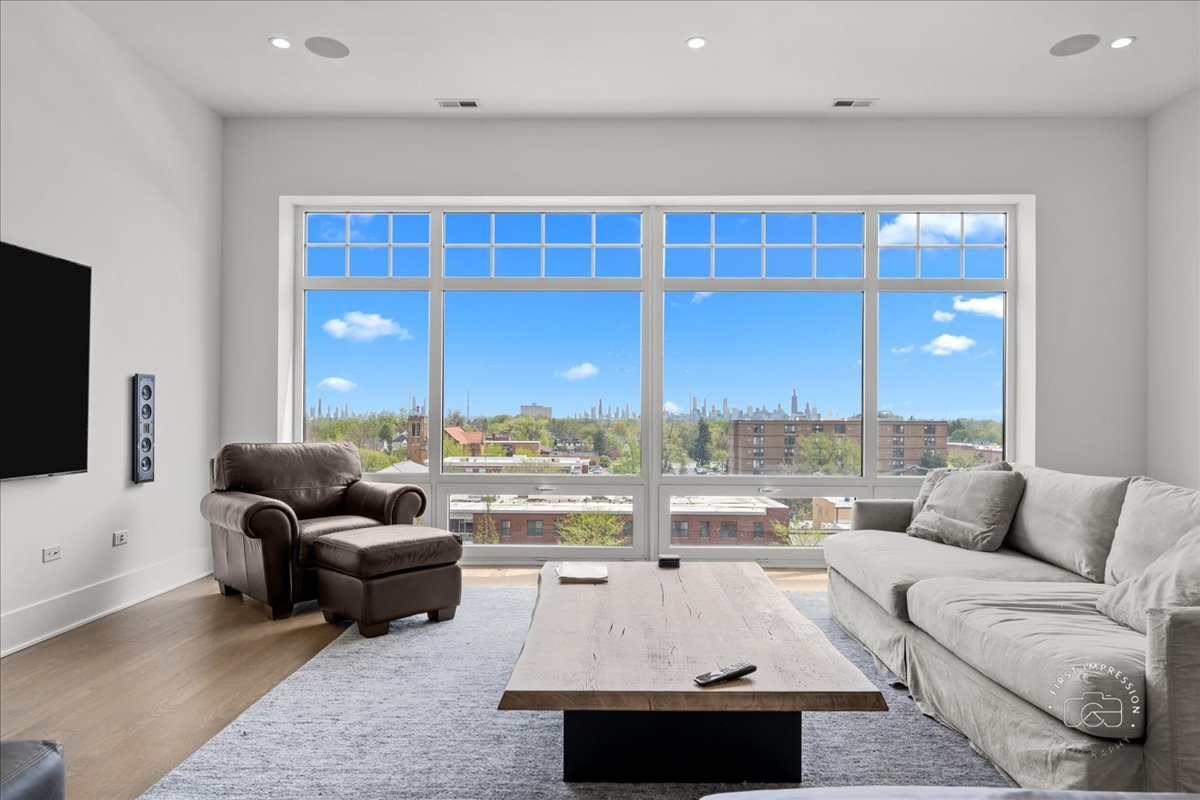 In a building of the best, Penthouse 3 stands above the rest. Welcome to One95 in Elmhurst, a 20-unit residential building just steps from Downtown Elmhurst and the Metra Station. Penthouse 3, a 3-bedroom, 2.5-bath condo, is one of only two penthouse units, offering stunning east-facing views of the Chicago skyline. As you step inside, the great room welcomes you with an inviting space intimate enough for everyday living yet expansive enough for large gatherings, with a generous living area, dedicated dining space, and an enlarged kitchen island. From there, flow seamlessly onto your private open-air balcony, the perfect spot for morning coffee or evening drinks with the City skyline as your backdrop. A flexible den nearby adapts effortlessly as a work-from-home office or lounge area. The primary suite provides a serene retreat, featuring a spa-like bathroom with a large shower and soothing soaking tub. Bedrooms 2 and 3 share a thoughtfully designed Jack-and-Jill bath, balancing privacy and convenience. Nestled in downtown Elmhurst within the highly rated CUSD 205 school district, less than 20 miles from Chicago, this unit includes two heated garage parking spots, an interior storage room, and access to a dog run. Pet-friendly and thoughtfully designed, One95 blends style, comfort, and everyday convenience.