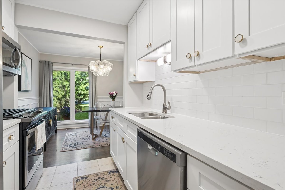 This completely reimagined Valley Lo end-unit residence is fully renovated, move-in ready and offers the perfect balance of timeless style and modern convenience. The kitchen and baths have been fully transformed with all-new custom cabinetry, premium fixtures, and elegant quartz countertops, creating spaces that are as functional as they are beautiful. Every element has been updated, including all-new patio doors and windows, new furnace, new stainless-steel appliances, custom lighting, wainscoting, and wide-plank flooring throughout. The sun-filled functional floor plan flows seamlessly, offering both open gathering areas and private retreats. The main floor boats a large entry foyer to greet your guests, an enormous living area that walks out onto a charming patio, and a separate dining area with space for a full dining arrangement. The 2nd floor expansive primary suite is a true sanctuary with space for a living area, great storage and new dual vanity stylish bathroom. 2 additional large bedrooms and full bath complete this floor. The lower level boats an enormous recreation space/family room, storage and a side by side laundry room. A 2 car covered carport right outside your front door is included for ultimate convenience. Set within the sought-after Valley Lo community, residents enjoy scenic walking paths, open green space, and pool membership plus access to membership to the exclusive Valley Lo Club, featuring lake activities, golf, tennis, swimming, and private dining. Just minutes away, downtown Glenview offers boutique shopping, acclaimed restaurants, cafes, and everyday conveniences. Combined with award-winning Glenview schools, this home delivers a rare blend of luxury, lifestyle, and location.
