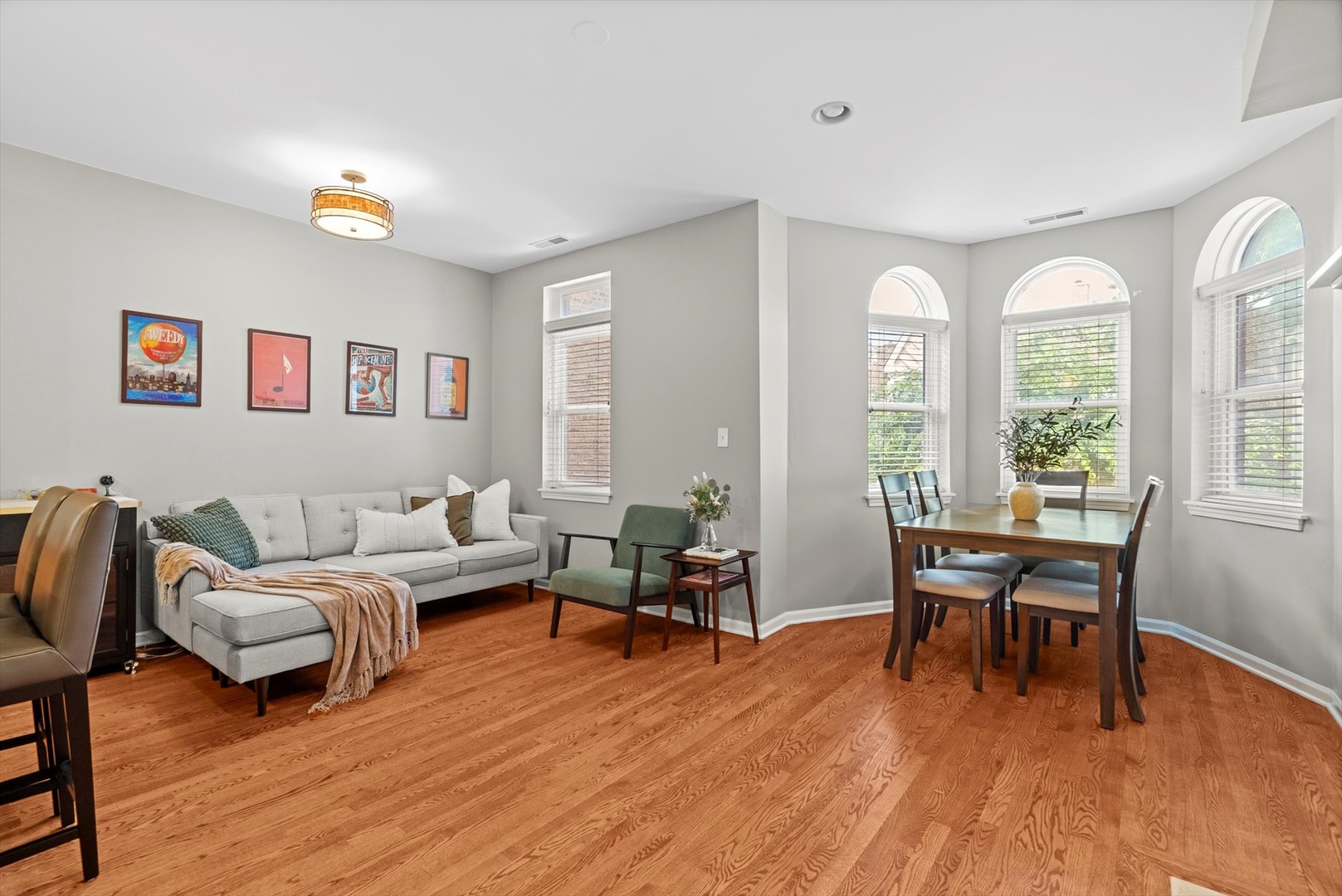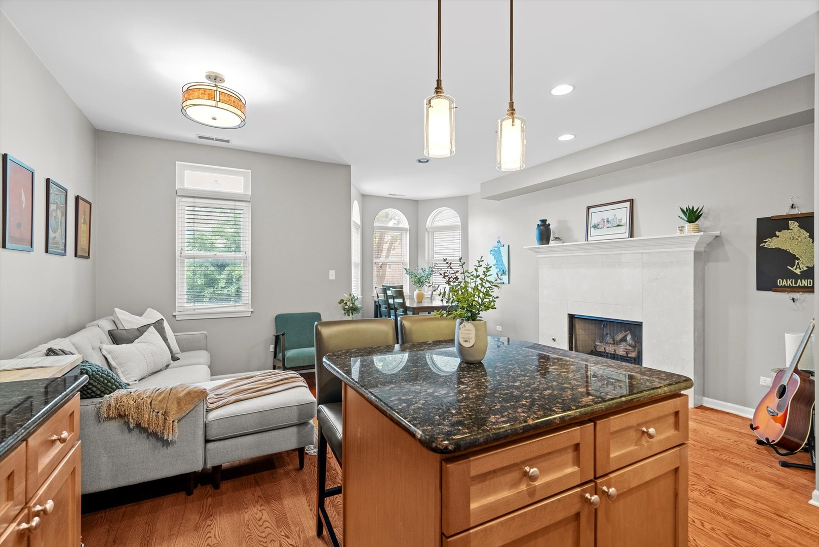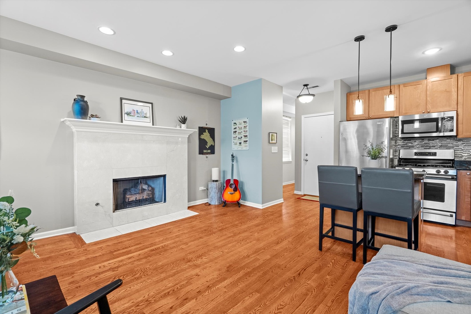 Welcome to 1955 W Melrose Unit 2-a beautifully updated and sun-filled 2BR/2BTH home in the heart of Roscoe Village. This move-in ready unit is set in a well-maintained building with a new roof (2021) and recent tuckpointing/sealing (2022) under a 10-year warranty. Inside, enjoy a sleek kitchen with mocha-stained maple cabinets, granite countertops, stainless steel appliances, custom backsplash, and an eat-in island opening to the dining area; two renovated stone/marble bathrooms including a whirlpool tub in the primary suite; a spacious living room with an oversized marble fireplace; hardwood floors; custom lighting; and ample organized closet space. Step out to your oversized private deck, perfect for entertaining, with additional perks including in-unit laundry, private storage, and a parking spot. Ideally located near Roscoe & Belmont shops, restaurants, parks, and just a short walk to the Paulina Brown Line-this home offers urban living at its best. Ask about possible Rent-to-Own options! Call LA for more information or to schedule a showing.