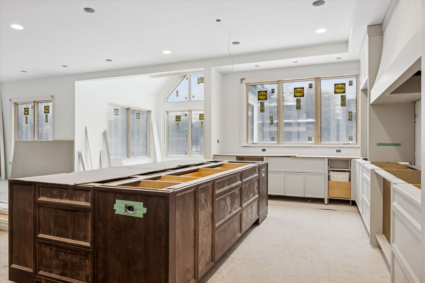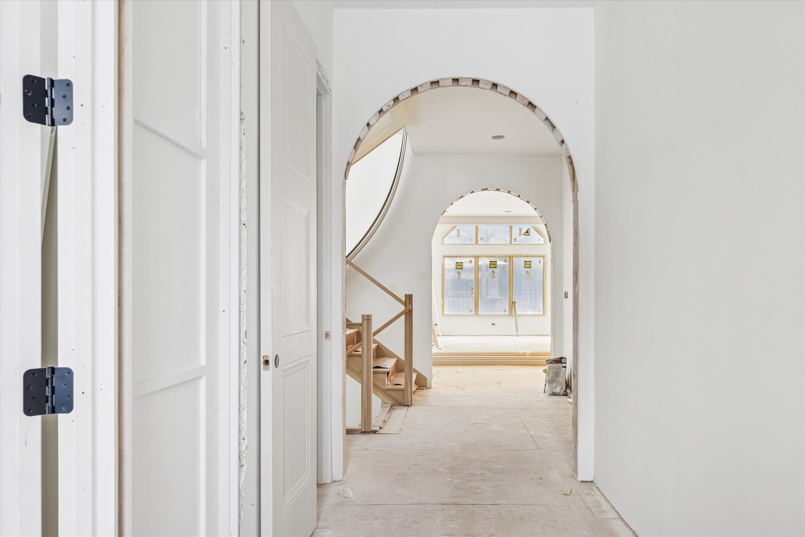 Cabinetry installed (1/6). Intown living @ its finest – walk to everything from this premier Elmhurst location! Thoughtfully designed and built in 2026, this residence showcases extraordinary craftsmanship and timeless style. The impressive foyer features floor-to-ceiling millwork and a coffered beadboard ceiling. Throughout the first and second levels, rich custom wide plank white oak hardwood flooring adds warmth, texture, and continuity to every space. A glass, climate-controlled wine cellar sets an elegant tone. A private office with built-in cabinetry provides the perfect workspace. The arched entry leads to an inviting family room and a chef’s kitchen boasting bespoke European cabinetry, a 10’+ island, designer bar, high-end appliances, and a scullery/prep kitchen. The informal dining room offers warmth and character with a vaulted, beamed ceiling – ideal for everyday living or entertaining. A perfectly planned mudroom includes locker-style storage with doors and a convenient homecoming center. The stairwell impresses with detailed millwork from the lower level to the second floor, opening to a spacious landing. The primary suite features vaulted and beamed ceilings, a handcrafted accent wall, and a spa-inspired bath with dual vanities, makeup counter, and wet room. The boutique-style closet includes hand-built shelving. Four additional bedrooms each feature en suite baths and generous space. The finished lower level offers a large recreation room, bar area, fifth bedroom with full bath, glass-enclosed exercise room, and a future golf simulator area. Outdoor living shines with a two-tier bluestone patio and expansive yard. Walk to and bus from the corner to Hawthorne Grade School, town, train, restaurants, parks, and more. Love Elmhurst – Love Local!