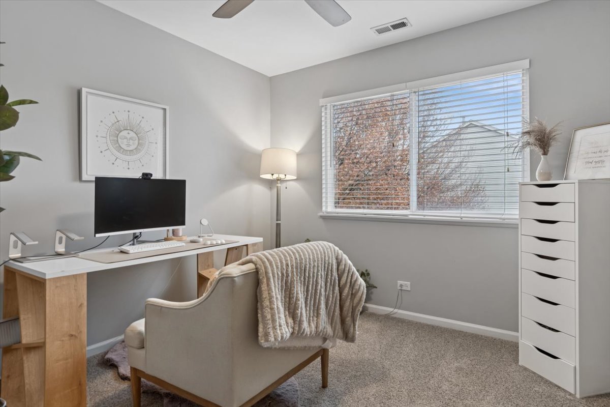 FABULOUS & CHIC in the desirable Amber Fields- Move-In Ready Perfection! Step inside this impeccably maintained home where modern updates meet stylish functional living. Painted in today’s colors with crisp white trim and designer finishes throughout, this home truly shines from top to bottom. The open-concept main floor features rich wood laminate flooring, custom dimmable lighting, and a dream kitchen complete with a center island, granite countertops, custom backsplash, 42″ white cabinetry, and premium stainless steel KitchenAid appliances (’19). The light-filled family room flows seamlessly from the kitchen, creating the perfect space for entertaining or relaxing. Upstairs, the spacious primary suite offers a generous 9×5 walk-in closet and private ensuite bath. Additional bedrooms feature plush newer carpeting and ceiling fans for year-round comfort. The beautifully finished basement adds incredible versatility with a large recreation space featuring upgraded electrical for enhanced entertainment, a flex space ideal for a workout room, hobbies, or home office, plus a huge storage area & convenient half bath. Enjoy fabulous outdoor living in your FULLY FENCED BACKYARD with a brick paver patio, cozy fire pit, and ambiance string lighting-complete with patio table and umbrella that can stay! Perfect for lively gatherings or peaceful evenings under the stars. This home offers peace of mind with quality updates throughout, including a new roof (’17), KitchenAid appliances (’19), water heater (’19), high-efficiency HVAC (’21), radon mitigation system (’22), and a whole-house generator for added comfort and security. Located within the highly desirable District 308 schools, 5 minutes to the new Coopers Hawk restaurant, Craft Urban downtown Aurora & within 10 minutes to the train station! Don’t wait-this move-in ready beauty won’t last long!