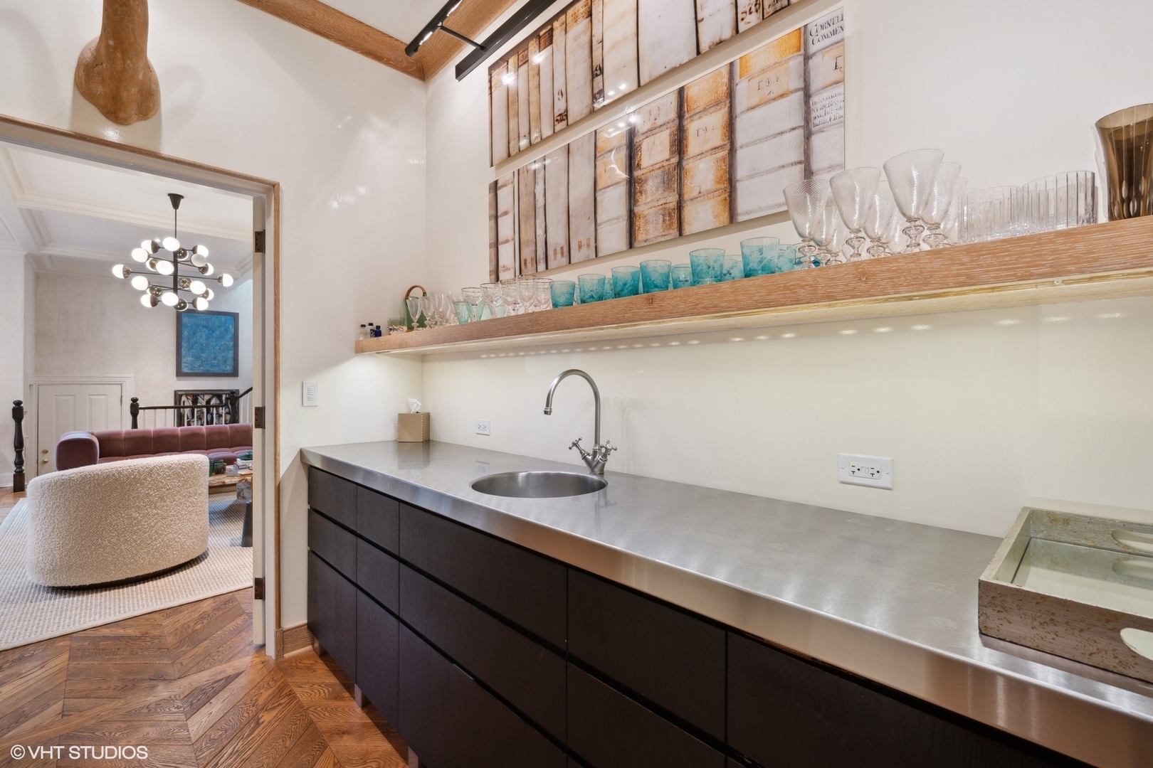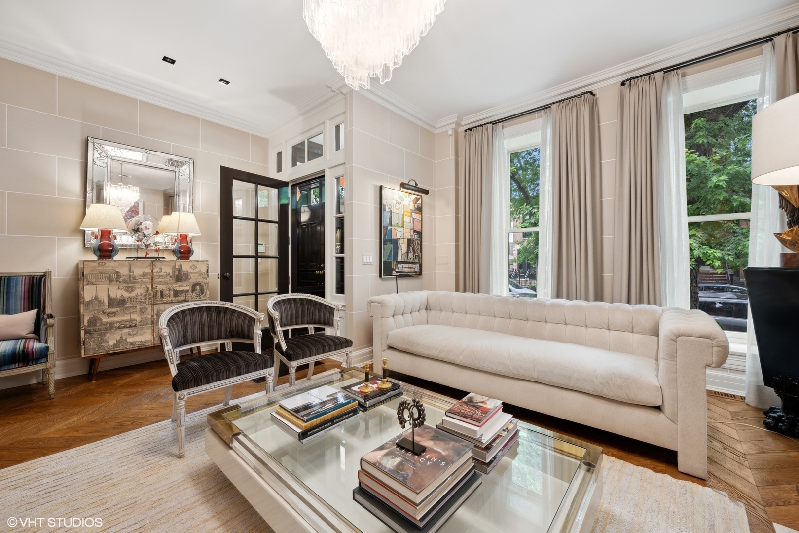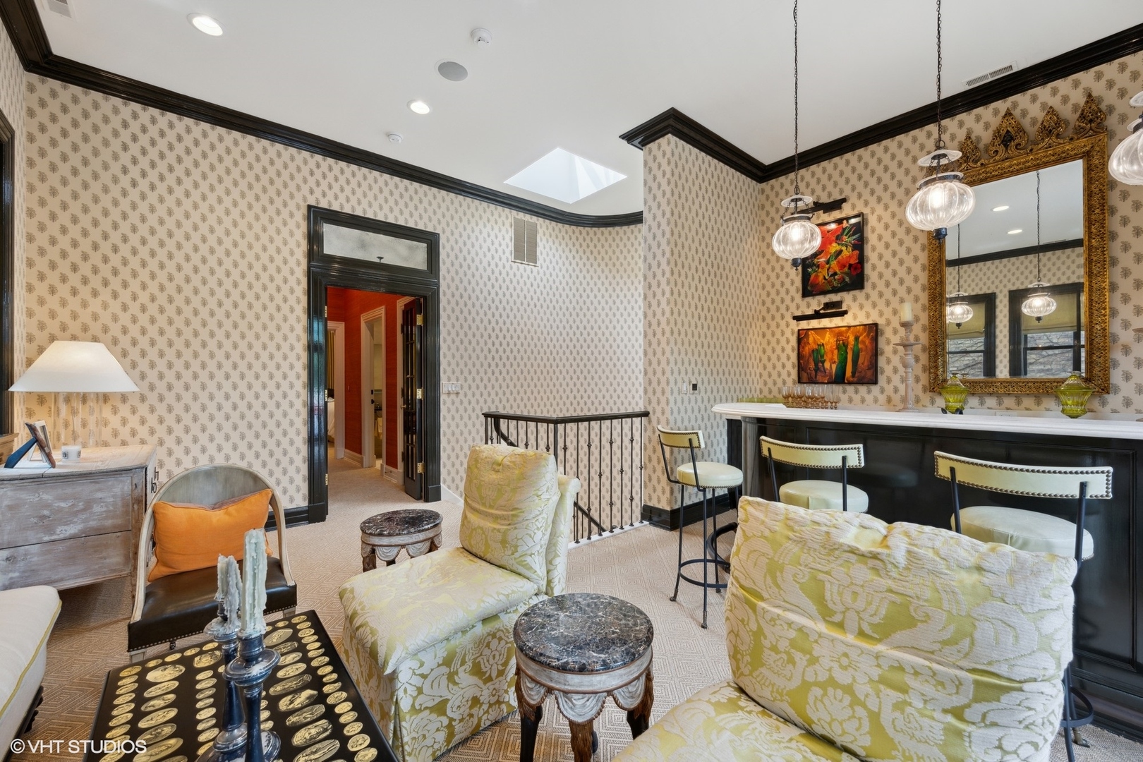 This East Lincoln Park crown jewel marries history and architectural significance with luxurious interiors. The home is located on a double 50 x 123.4 lot. This Italianate-style residence at 1964 North Burling was originally built in 1883 as a single-family home on a former nursery and horse truck farm. It is part of the Sheffield National Register Historic District and, significantly, is rated Orange in the Chicago Historical Resources Survey. The current owners meticulously restored this limestone-and-brick home with successive renovations by Bulley & Andrews in the subsequent years to maintain its impeccable condition. The gorgeous decor, designed by Alessandra Branca, was featured in House Beautiful and Veranda magazines and may be sold vacant or fully furnished. Stepping through the front double doors, you’ll find French maple chevron floors, working marble fireplaces, and rooms lovelier than the last. The gourmet kitchen features cerused white oak cabinetry, marble countertops, and top-of-the-line appliances, including a Thermador double oven and Sub-Zero refrigerator. A spacious butler’s pantry with a stainless-steel wet bar adds an extra layer of convenience. The attached garage, with a side door entrance, offers direct access to the home and extends its length. A terrace above the garage can be reached from the family room and leads to a beautiful side yard and basketball sport court-ideal for both relaxation and recreation. Double staircases connect the upper and lower levels, creating excellent flow throughout the home. The spacious primary suite includes a large dressing room, double walk-in closets, and a luxe bath with marble and silver finishes. Two additional bedrooms and a convenient laundry room complete this level. The third floor is an entertainer’s dream, featuring a penthouse lounge with a full working bar and a second terrace for the perfect outdoor retreat. Another bedroom and full bath provide flexible space for guests or a private oasis. The lower level was designed with both comfort and entertainment in mind, offering heated floors, a fifth bedroom or office, a media room, a recreation room with built-in desks and bookcases, a wine cellar, and a steam/infrared sauna shower. Additional details and upgrades are available in a fact sheet upon request. Notably, there is potential for elevator installation on the southeast corner of the home, and square footage could be expanded if desired. The property currently includes a two-car attached garage plus a two-car parking pad. Enjoy tree-lined, quiet walks along some of Lincoln Park’s most beautiful blocks, as well as the convenience and energy of shops and restaurants in the prime Armitage and Halsted area. A truly breathtaking home in the perfect location!
