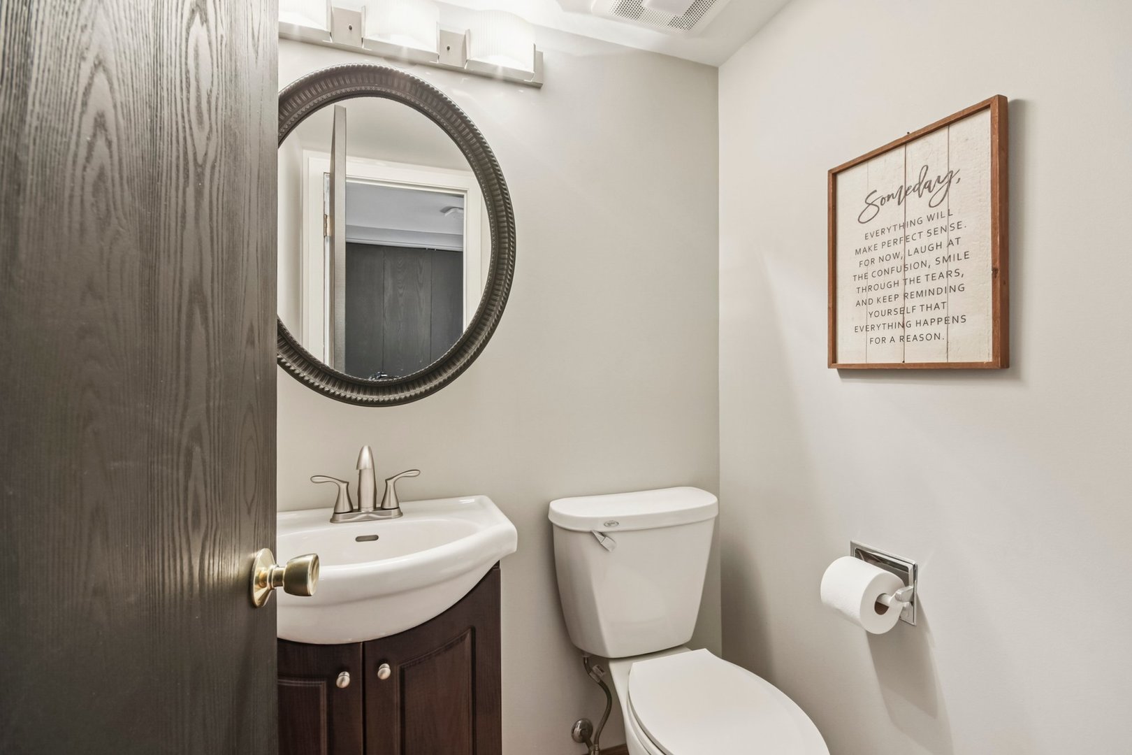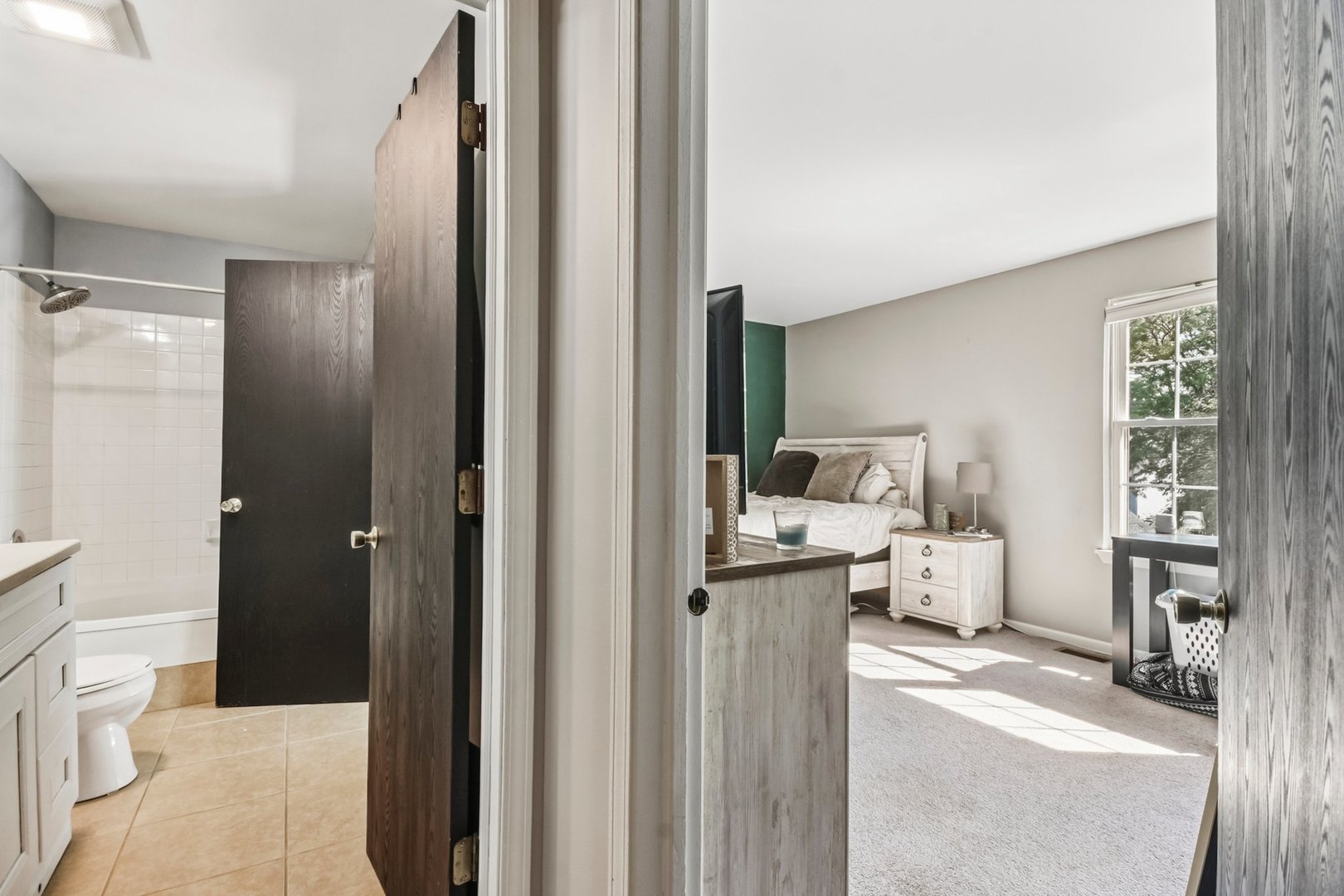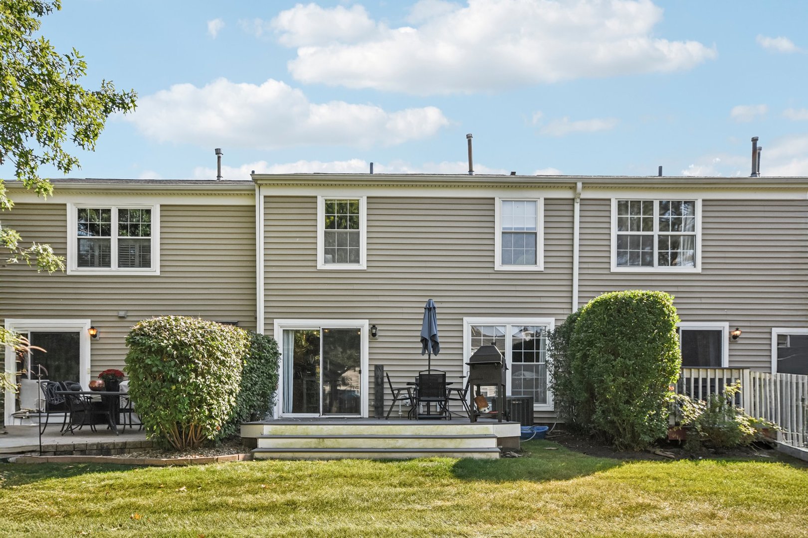 Welcome to this beautifully updated 3-bedroom townhouse with modern finishes and thoughtful design. The first floor features hard-surface flooring throughout, including laminate flooring in the Family Room and Foyer along with tile in the Kitchen and Powder Room. The kitchen offers granite-look countertops and stainless steel appliances, with a bright eating area. The family room flows from the foyer with light laminate floors and ample wall space for flexible layouts. Powder room is updated with new vanity, mirror, and lighting. Step outside to the low-maintenance Trex deck, backing to a neighborhood walking path leading to parks, playgrounds, or nature fields. The deep heated garage provides extra storage. Upstairs, enjoy a laundry closet with matching front-load washer and dryer. The primary bedroom has southern exposure, a large wall closet, and shared access to the hallway bathroom with an oversized soaking tub, ample cabinets, and counter space. Two additional bedrooms with northern exposure feature wall-to-wall closets and overlook walking paths and mature trees, ideal for kids, guests, office, or media space. Fresh paint and updated electrical throughout. Smart home features include Ring doorbell, Nest security and fire alarm system, and Honeywell thermostat for comfort and peace of mind. Move-in ready and perfectly located-schedule your showing today!