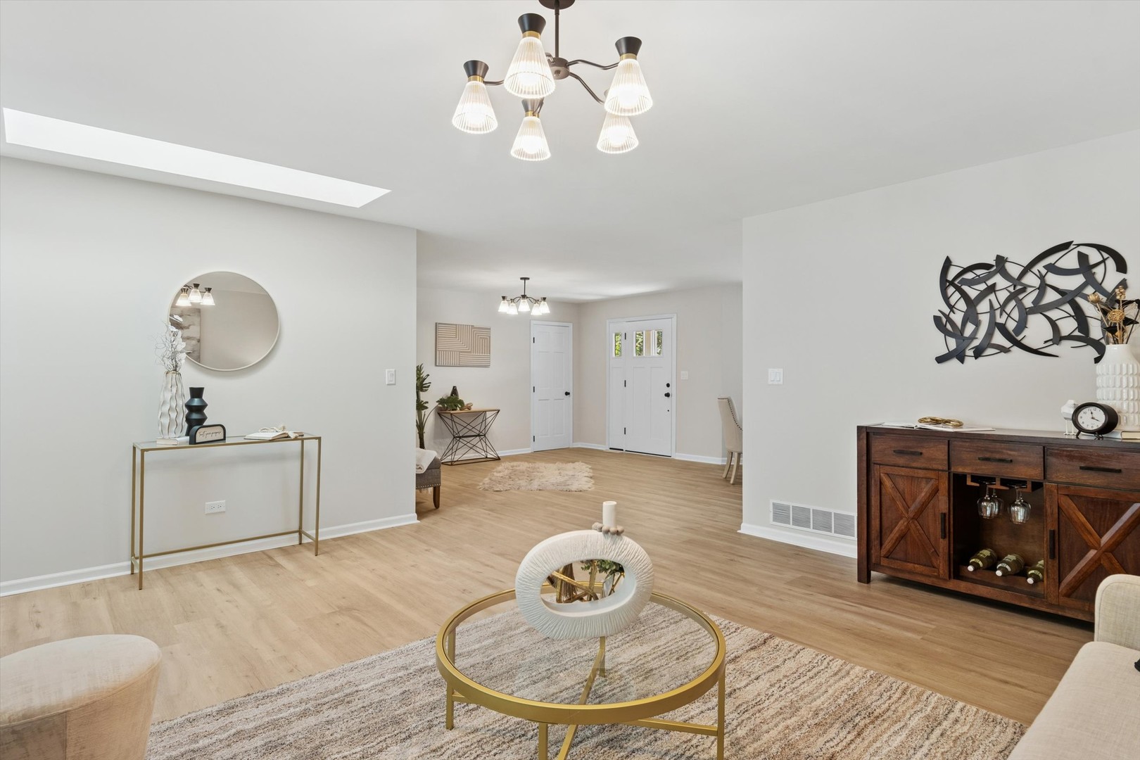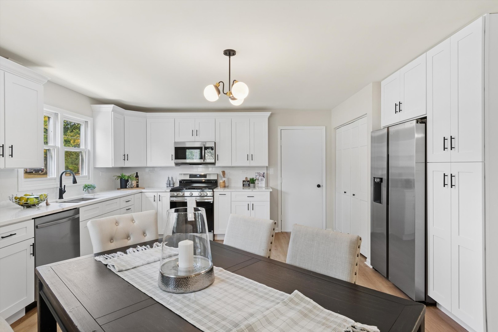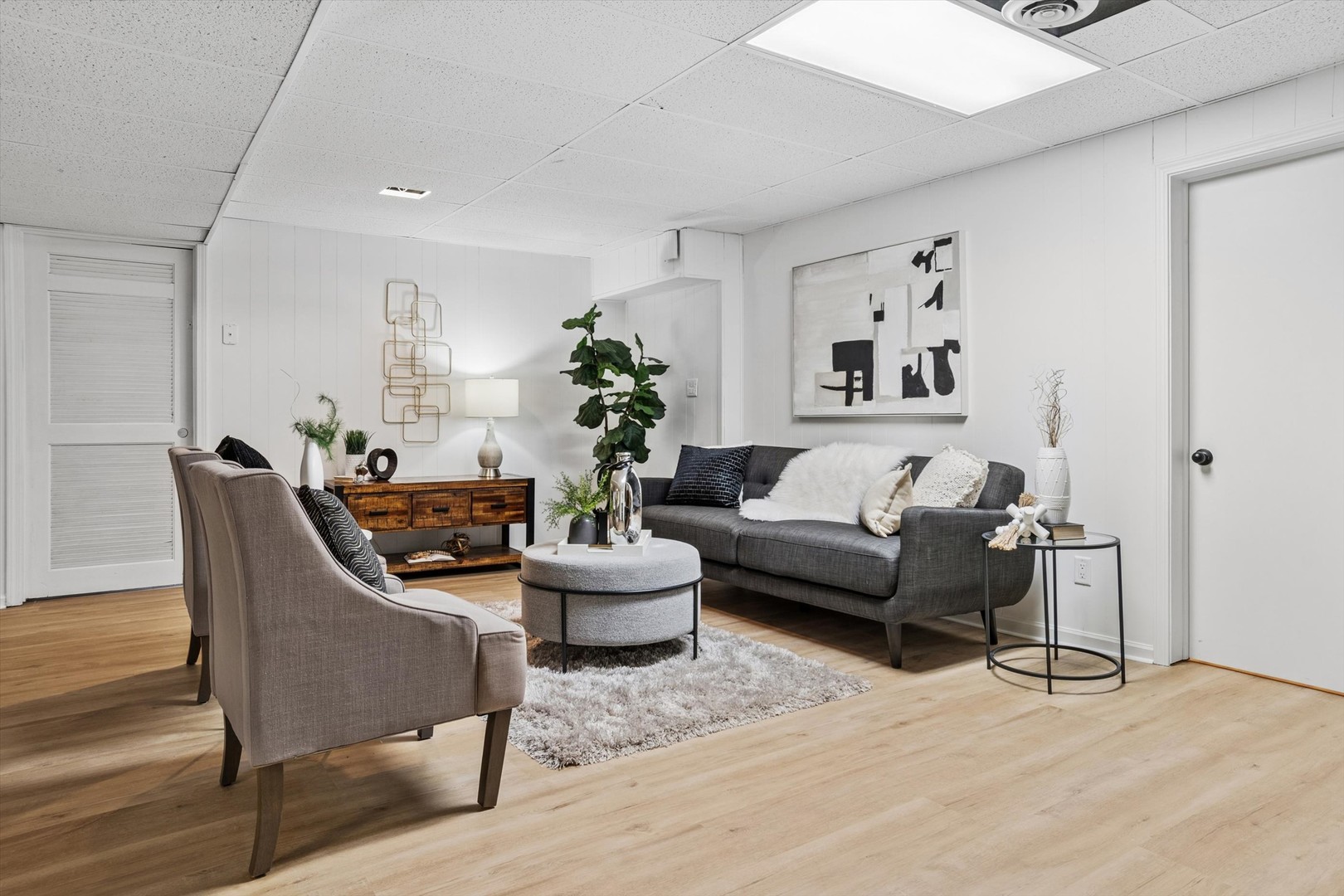 This beautifully updated ranch with a finished basement sits on a .36 acre corner lot. Many news include ~ tear off roof, luxury vinyl flooring, new baths, new kitchen with quartz and new stainless steel appliances. Freshly painted including trim and doors, all new light fixtures. More than 2200 sq ft of living space. The finished basement has laundry and 1/2 bath. Unfinished portion offers plenty of storage. The side driveway adds an additional option for access to the oversized (4 car) garage.