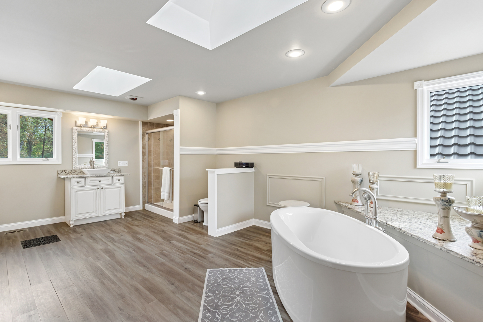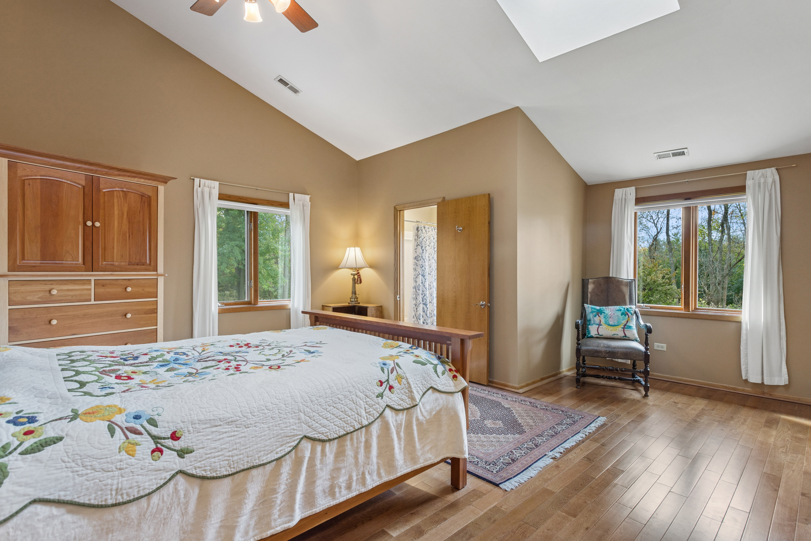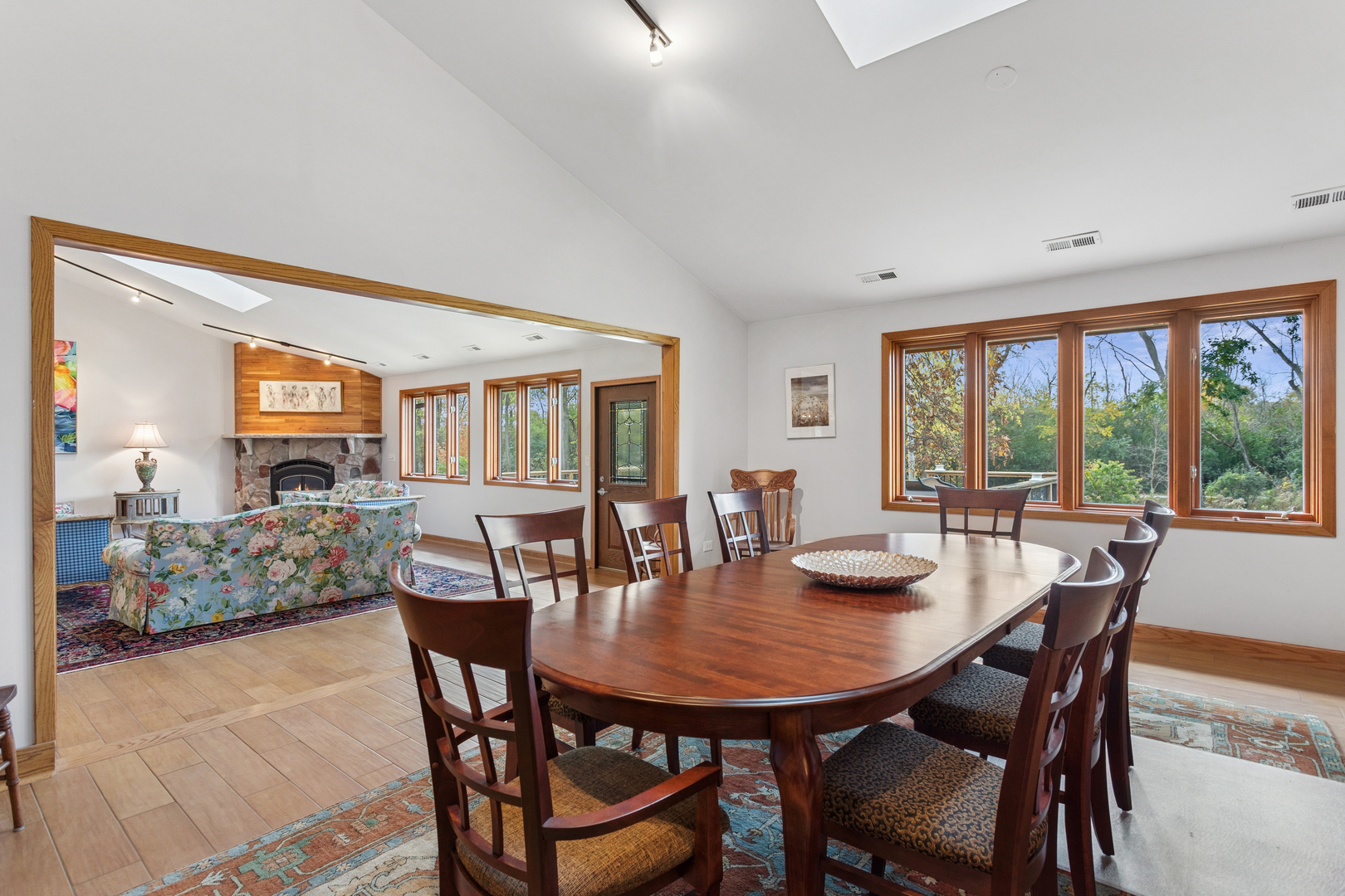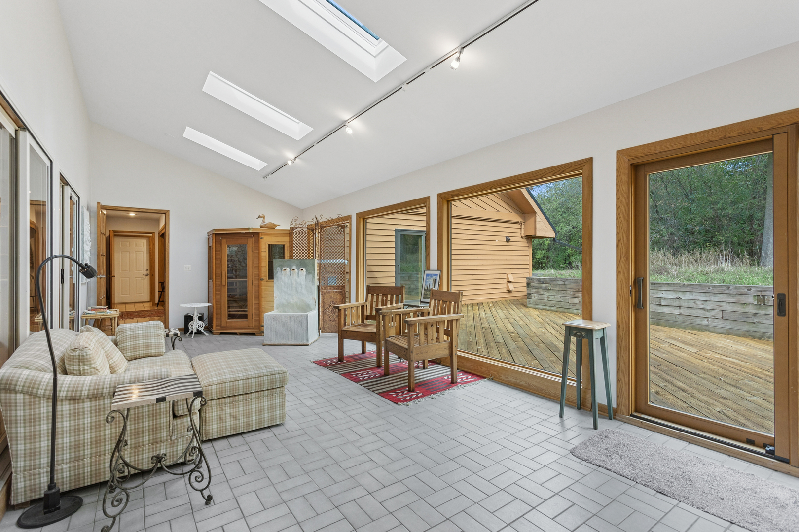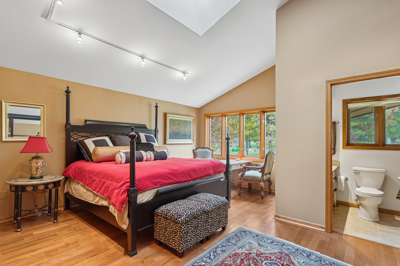 Welcome to this extraordinary one of a kind Ranch home in the peaceful sanctuary of Northwoods. Featuring 5 bedrooms, 5.2 baths and over 6000 square feet of mostly single level living space, and resting on 1.6 acres of tree-lined beauty, this property is the epitome of attention to detail at every turn. Property is set back on a long private road. Starting with the massive high-end steel roof and layer upon layer of wall insulation, this home is as rock solid and efficient as you’ll ever see. Vaulted ceilings and an abundance of skylights and windows provide loads of natural light and sense of space. The thoughtful open floorplan keeps the gourmet kitchen and surrounding gathering areas as the focal point. Each room boasts gorgeous wood-look porcelain tile floors, all of which are heated, as is the entirety of the flooring in the home except for the laundry area. An adjacent sunroom overlooks one of the two sizable wood decks, east-facing to capture morning light. There are 4 oversized main level bedrooms, each with their own bath, divided over 2 wings of the home, including an awesome master ensuite w/oversized walk in closet. Also, don’t look past the impressive and soaring great room with a full 2nd kitchen, fireplace, media area and deck access. The vast upstairs 5th bedroom directly up could be the MBR suite, with it’s stunning spa-like bathroom. Taken together it could be a perfect in-law arrangement or even a rental possibility. Bring your car collection, there’s a 4 car attached temperature controlled garage plus an oversized shed that comfortably accommodates 3 more cars and plenty extra. There are far too many features of this impressive home to list here. Meticulously maintained, impeccable quality, you cannot replicate this home anywhere close to this price. Truly a must see.