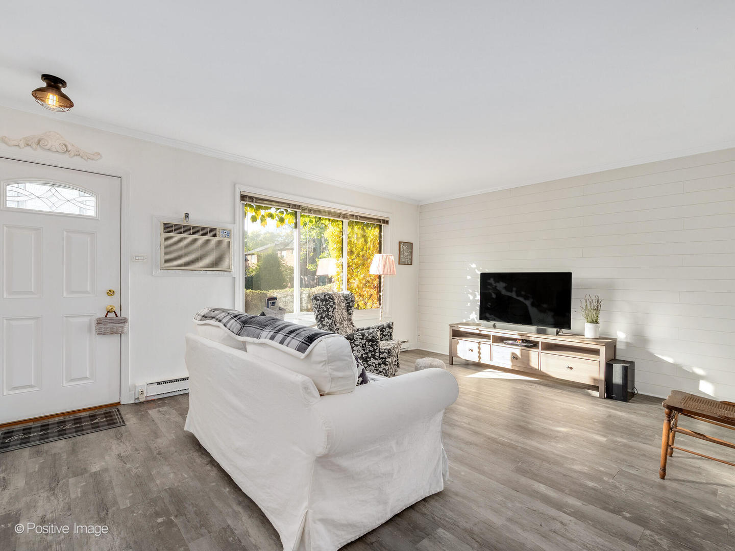 Immaculate end-unit ranch townhome in desirable Villa Park! This move-in ready home features stylish gray wood laminate flooring throughout most of the space. The light-filled living room offers a charming shiplap feature wall and dining area. Enjoy cooking in the functional galley kitchen with stainless steel appliances and a modern tile backsplash. The spacious primary bedroom includes a large closet with built-in organizers, ceiling fan, and attic access. Updated bath showcases a butcher block vanity with vessel sink and a shower accented by classic white subway tile. Convenient laundry room with tile floor, stackable washer & dryer, and abundant closet space-one currently used as a home office-opens to a private patio and assigned parking just beyond. Prime location near shopping, dining, Heritage Park, Rt. 83, I-88, and Metra. A perfect blend of comfort and style-schedule your showing today!