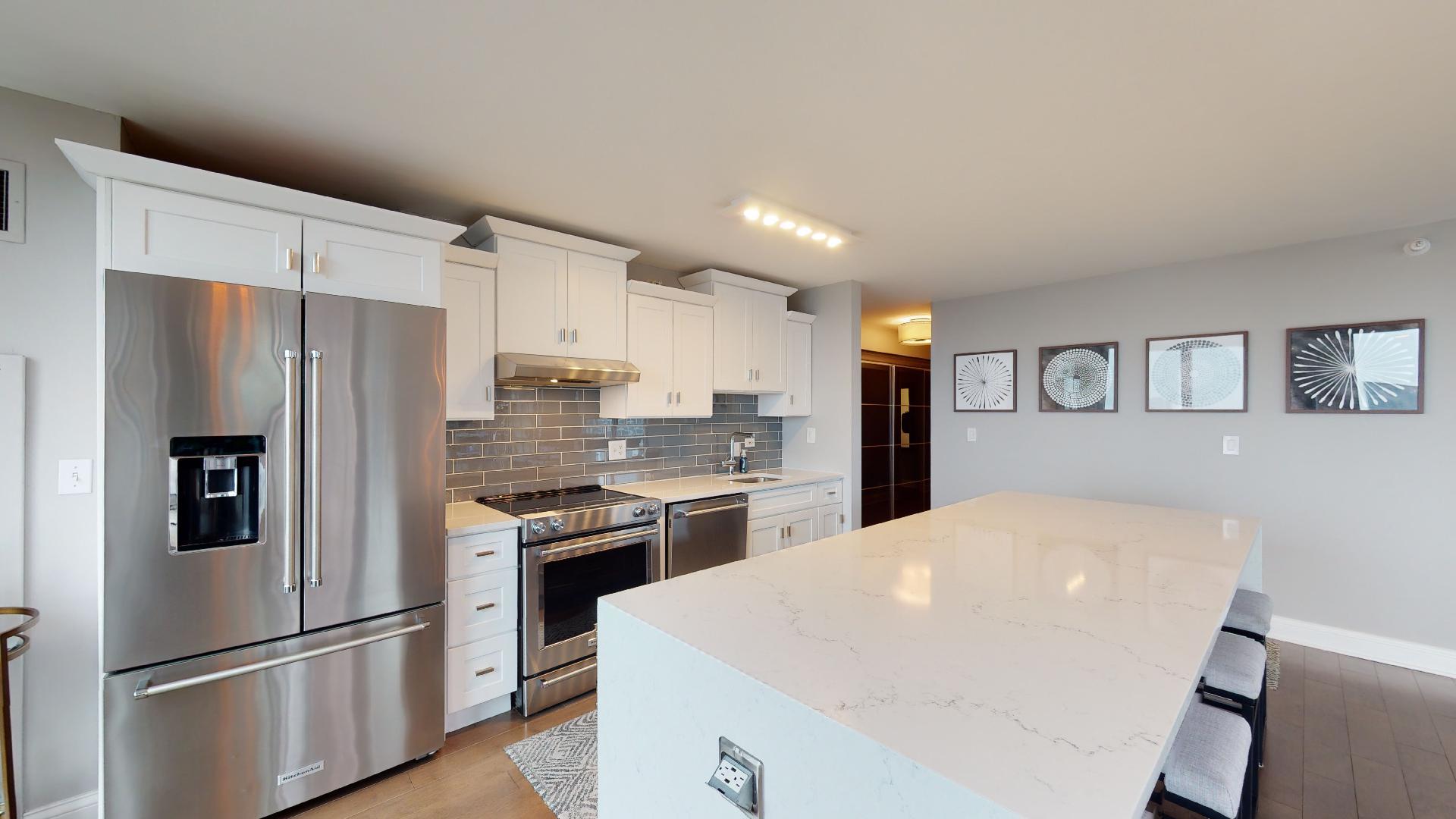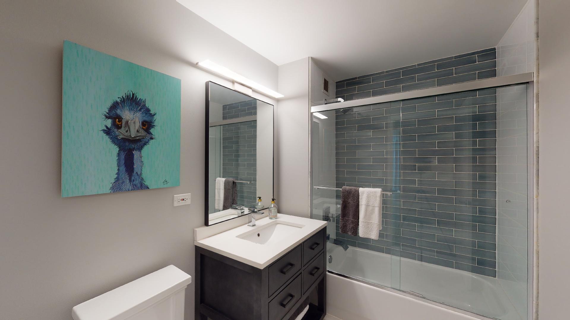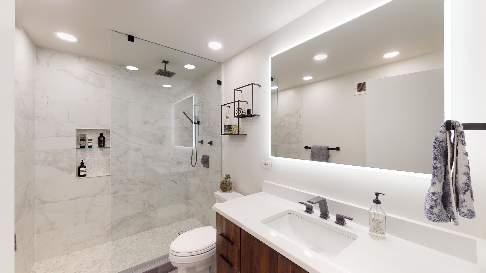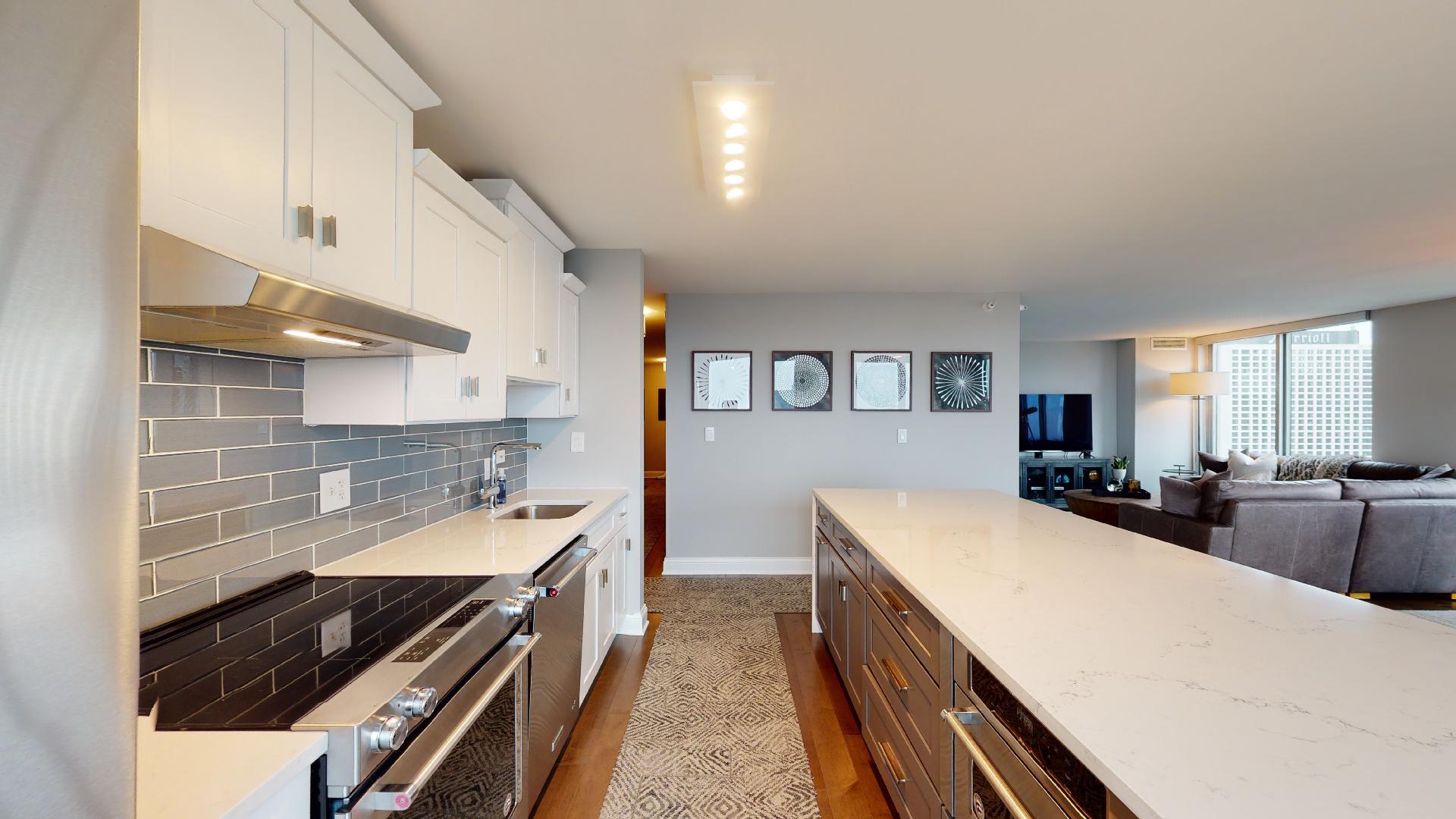 Must see!!! Fully updated high floor 1 bedroom 2 full bath unit, approximately 1300 square feet. Formally a 2 bedroom unit converted into a sprawling one bedroom open-floor plan. Can easily be converted back to a two bedroom if you desire. Floor to ceiling windows with power shades throughout, tons of natural sun light, unobstructed south and west views. Beautiful maple floors throughout, in unit washer and dryer, balcony. Full amenity River North building with gym, rooftop sundeck, party room, dry cleaners, 24hr door staff. Additional storage unit included. Within walking distance to Chicago’s best restaurants, shopping, CTA redline, expressway access and more! Prime extra wide deeded indoor parking spot $35,000 additional.