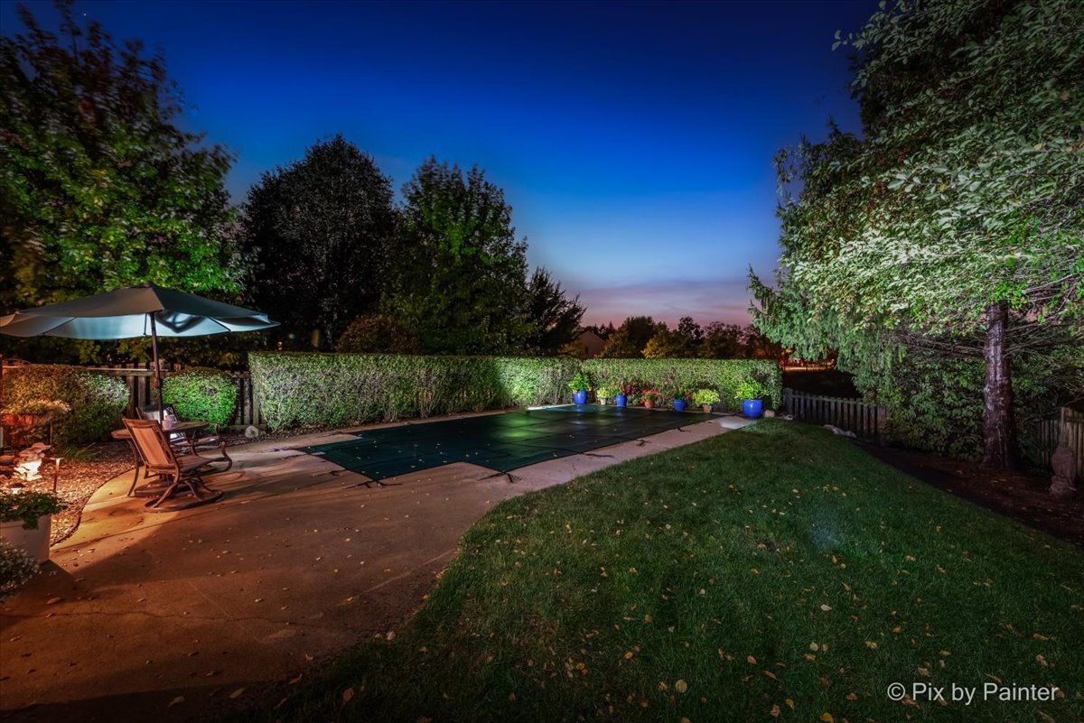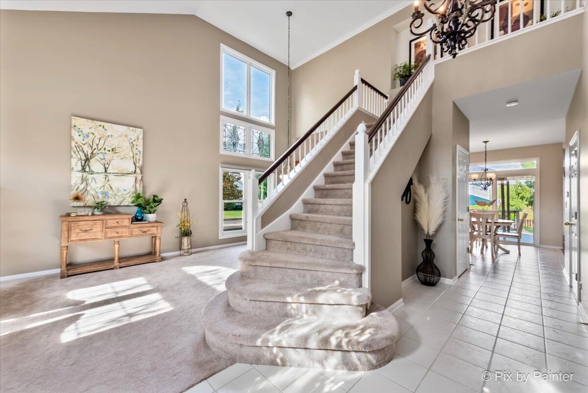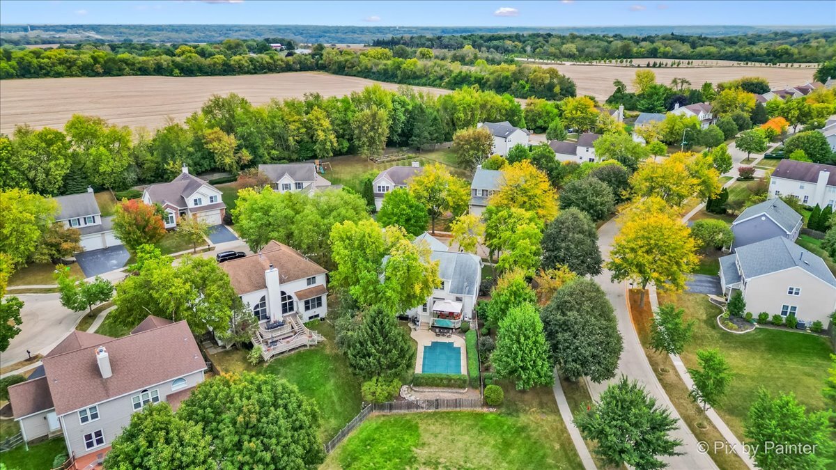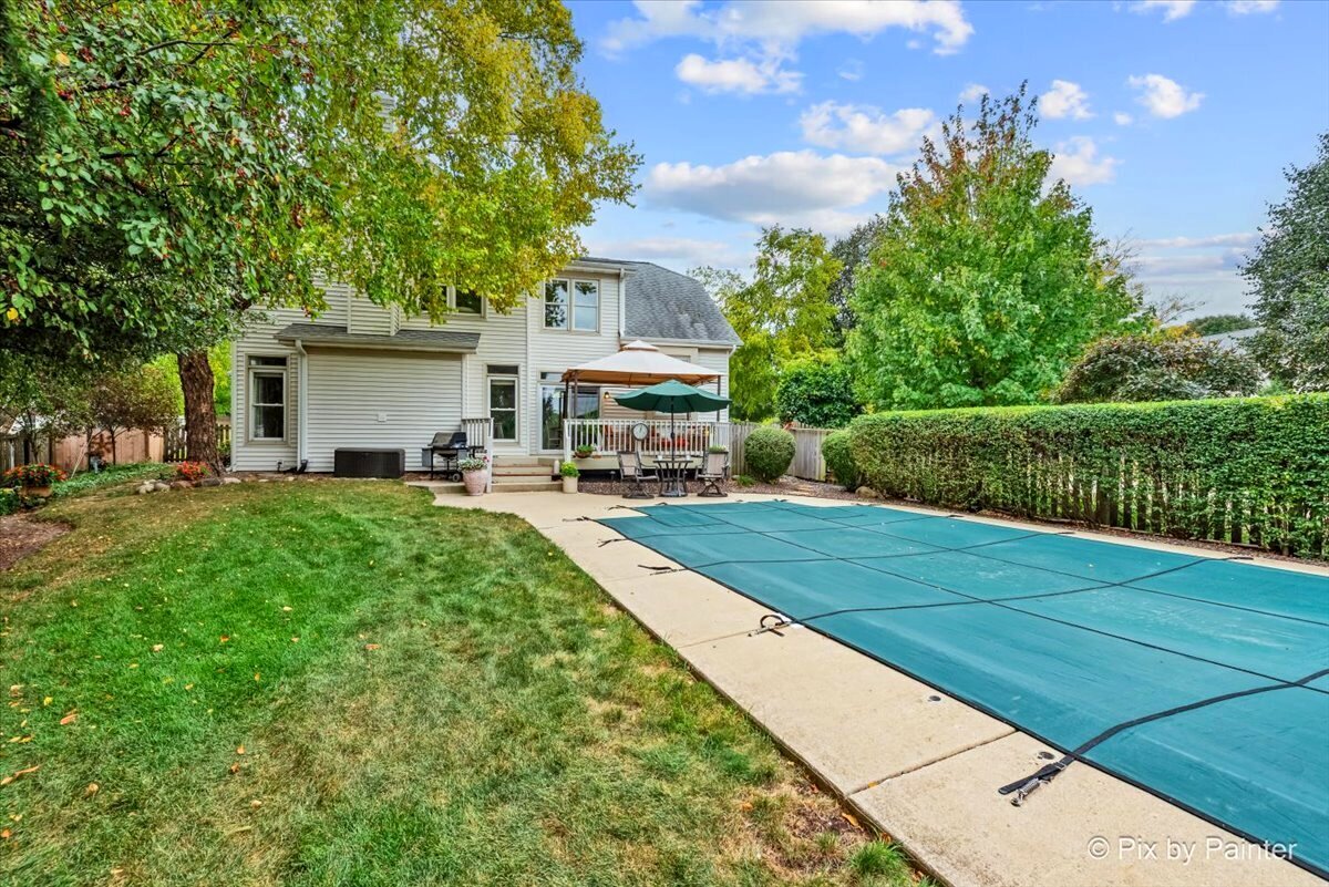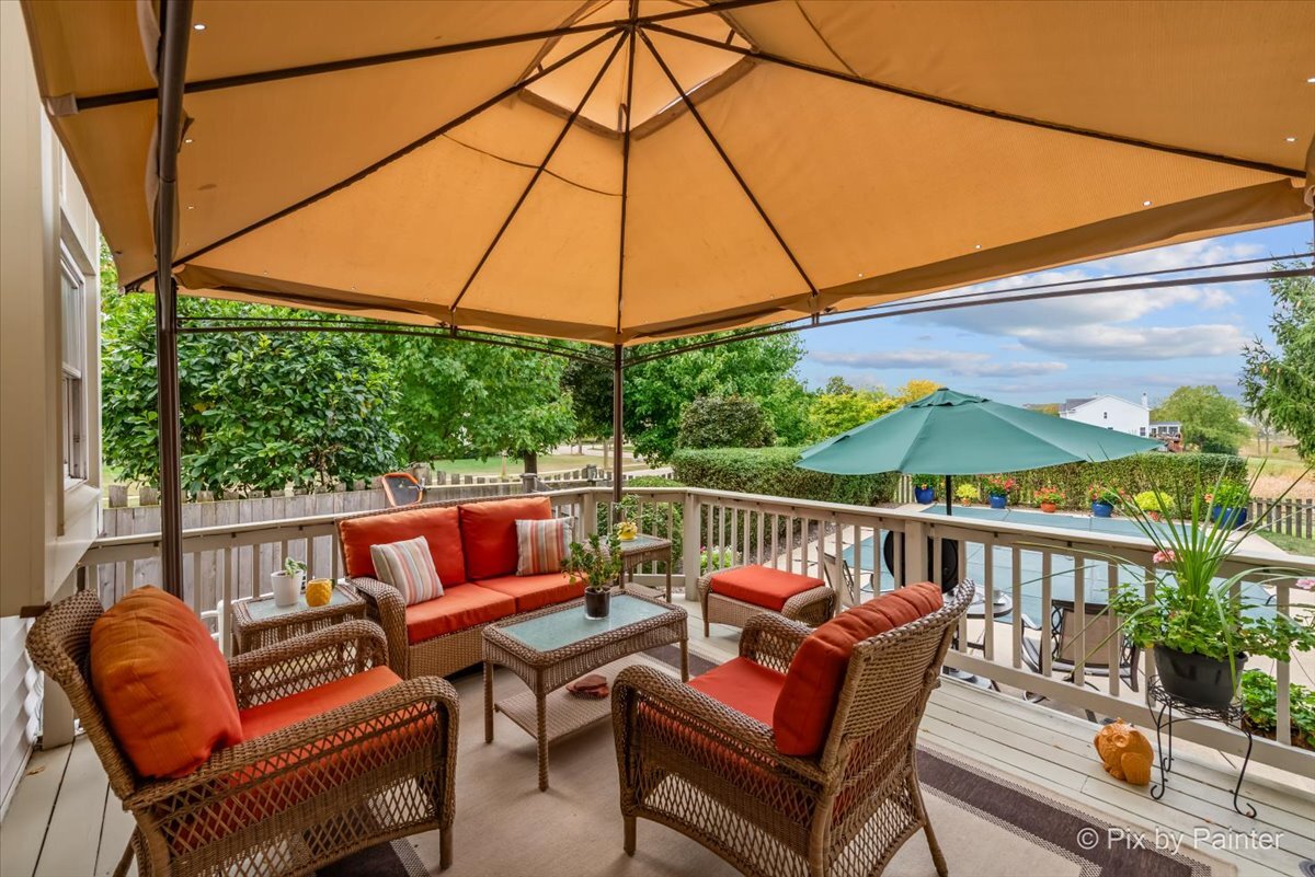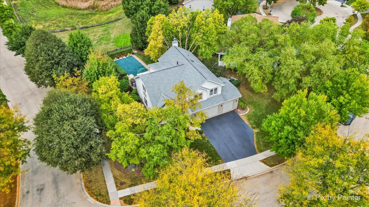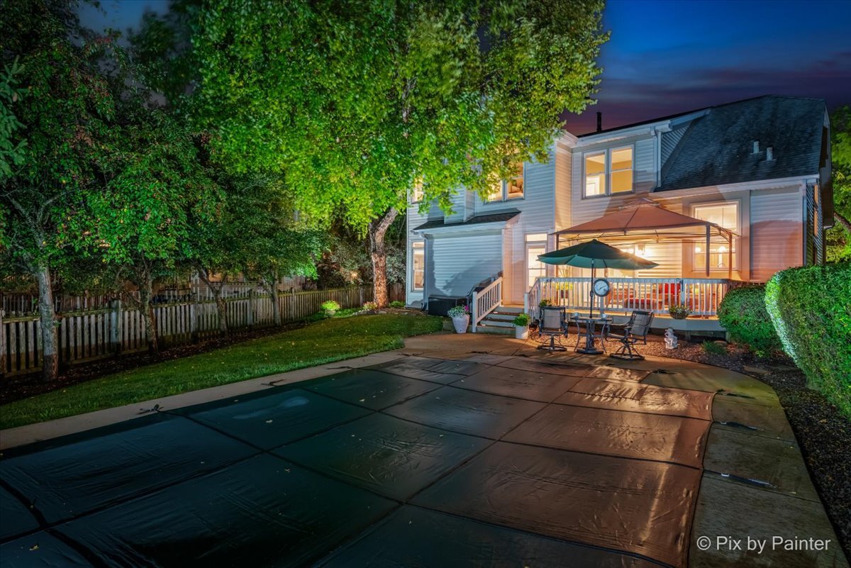 Welcome to 2 White Chapel Ct. – This stunning, desirable and rarely available “Madison” Model home offers 2,612 sq. ft. (above grade) of beautifully designed living space in the highly sought-after Willoughby Farms subdivision of Algonquin. Perfectly situated on a large, professionally landscaped corner lot with underground sprinklers, this 4-bedroom, 3-bath home (including a first-floor in-law/office/craft room with adjacent full bath) with 3 car garage combines timeless style, modern upgrades, and an outdoor oasis featuring your very own deck and in-ground heated pool. From the moment you arrive, the curb appeal is undeniable. With its strategically placed lights that subtly light up the beautiful landscaping at night accenting mature river birch trees, this home will impress from the start. Step inside to be greeted by a soaring two-story foyer and majestic staircase (highlighted by lit recessed built-ins ideal for displaying your favorite artwork or family treasures). Freshly painted and re-carpeted, every inch of this home radiates pride-of-ownership that sets the stage for the elegance found throughout. Off to your left is your formal living and dining areas with voluminous soaring ceilings and stained-glass windows providing the perfect spaces for entertaining and serving an incredible meal. At the heart of the home lies your gourmet kitchen – a true chef’s delight with 42″ maple-glazed cabinetry, dovetail self-closing drawers, granite countertops, stone tile backsplashes, under-cabinet lighting, and a large granite-topped island with added storage. Stainless steel KitchenAid professional series appliances, including a gas cooktop and separate convection oven, make preparing meals a joy. The spacious eat-in area provides casual dining with views of your private backyard retreat through sliding glass doors with built-in blinds. The kitchen flows seamlessly into the family room, where a cozy gas fireplace invites you to unwind after a long day. Nearby, a spacious laundry room with front-loading washer and dryer, sink, shelving, and hanging racks adds everyday convenience. Tucked away on the main level is your flexible office/in-law/guest room, adjacent to a full bath for true multi-generational living. A three-car garage with cabinets and an extended pad ensures plenty of room for vehicles, storage, and hobbies. Upstairs, retreat to your luxurious master suite sanctuary featuring a sitting room, vaulted ceiling, and spa-like en-suite. Pamper yourself with a whirlpool tub, separate stand-up ceramic tiled shower, dual sink vanity, heated bathroom floors, and an expansive walk-in closet with California Closet organizers. Additional bedrooms and a loft area provide ample space for family and guests. The partially finished basement is designed for entertaining, complete with a built-in bar, full-size refrigerator, and a massive crawl space for all your storage needs. Step outside and discover your private backyard oasis. A large deck with canopy overlooks the heated in-ground pool, surrounded by lush landscaping and unmatched privacy with no homes directly behind you – (notice the extra green / conservation space behind gate at rear of property!). Whether it’s morning coffee, weekend barbecues, or evening swims, this is your perfect spot for making memories with family and friends. Updates and upgrades provide peace of mind: new furnace and A/C with UV light purification (2017 – w/transferable warranty), roof w/powered attic vent replaced 2014 (according to previous owners, shingles are a 50 year shingle), siding (2021), new water softener (2024), pool heater (9 years old), whole house water filtration system and recent paint and carpeting. An ADT security system adds an extra layer of comfort. This home is just minutes from downtown Algonquin’s thriving restaurants and shops, award-winning District 300 schools, the tranquil Fox River, Golf Club of Illinois, and easy access to the I-90 corridor. Schedule your showing today!