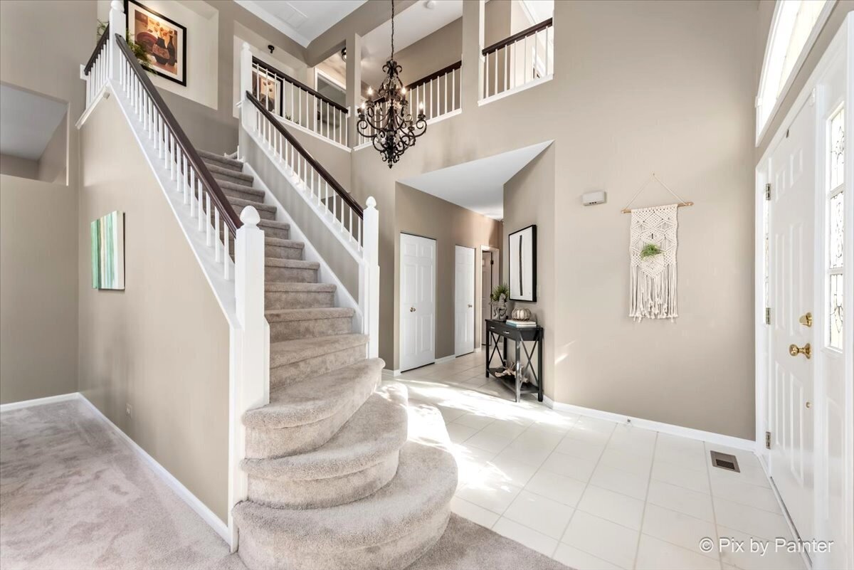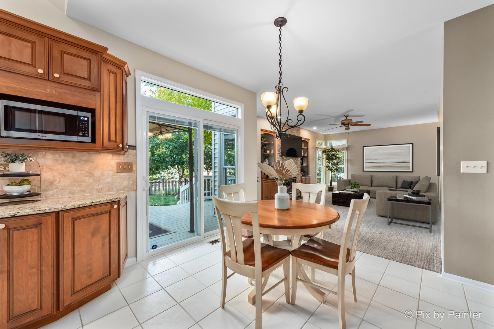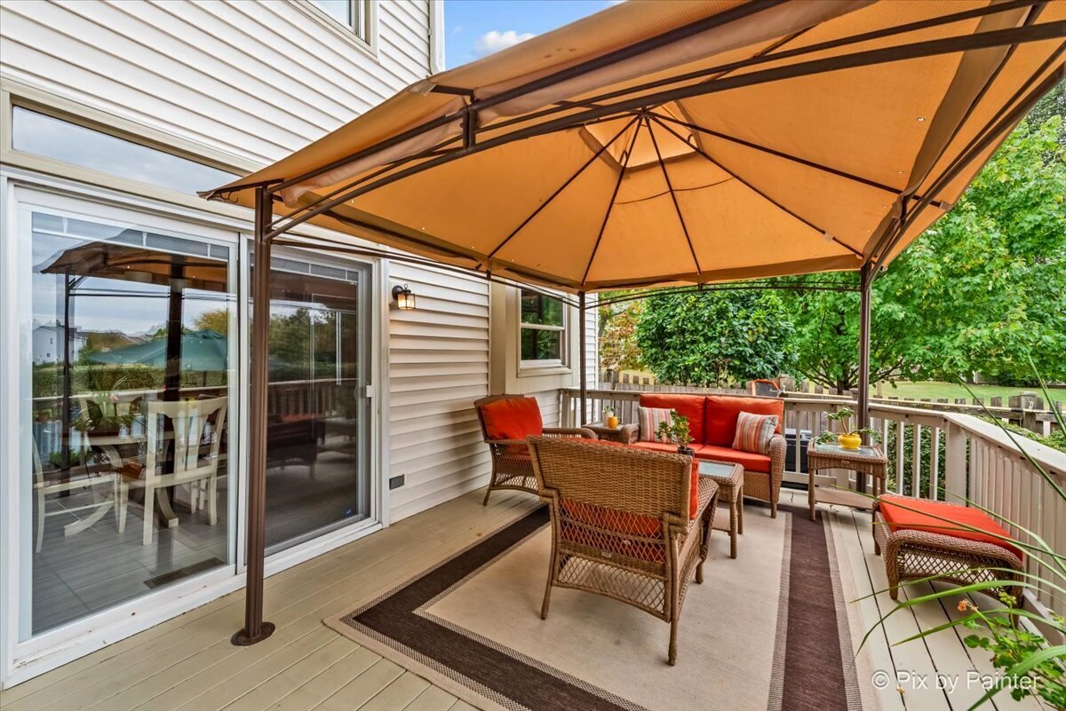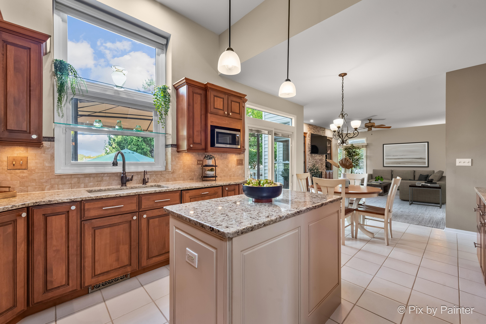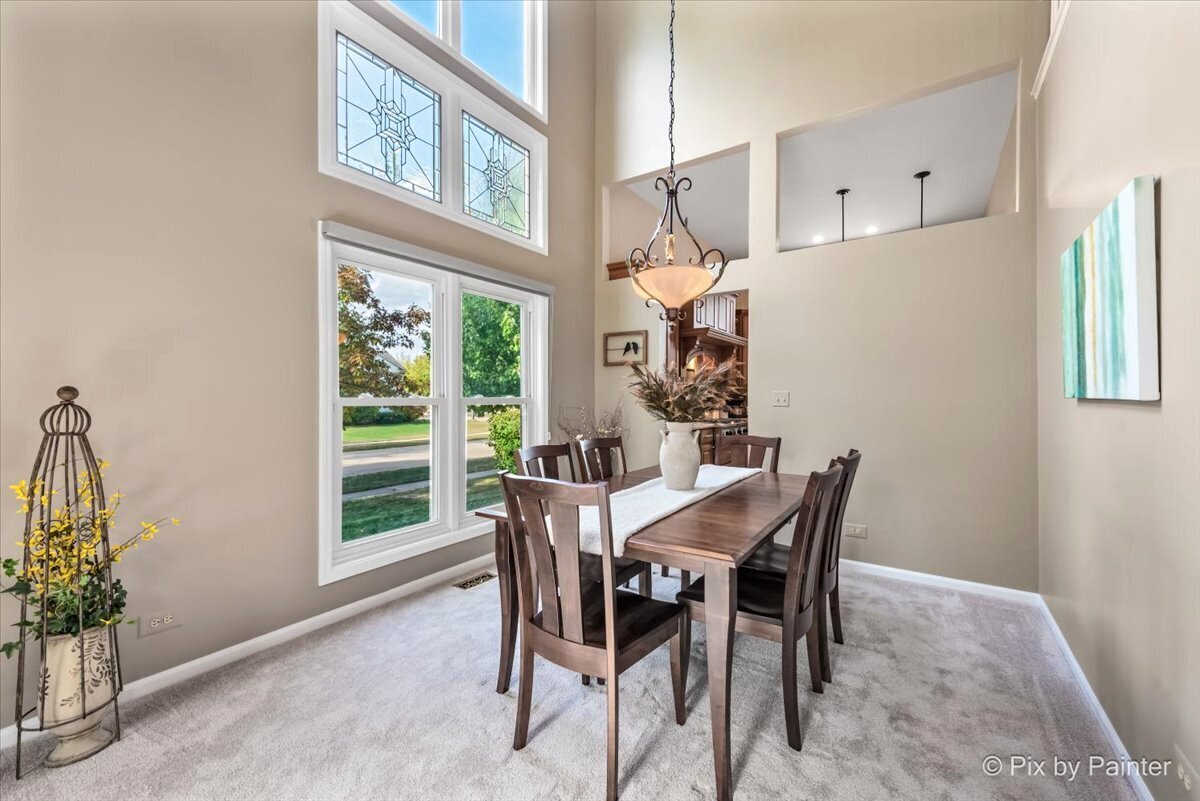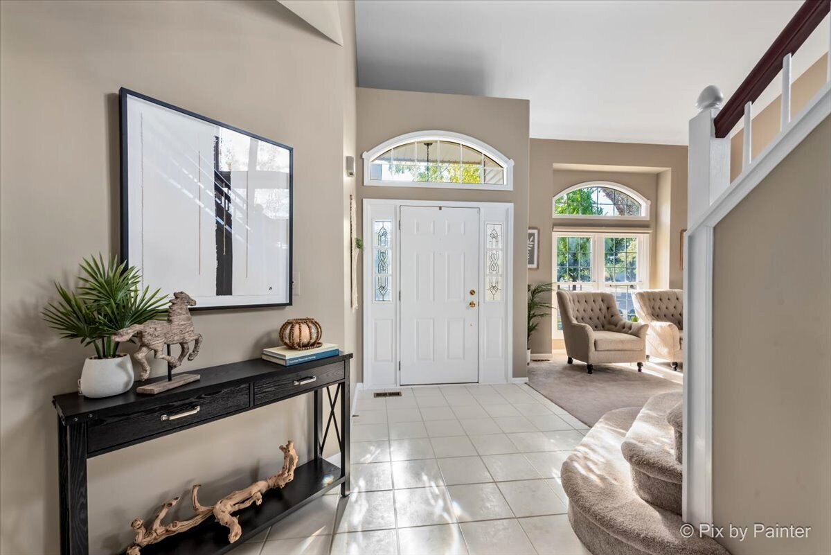 Welcome to 2 White Chapel Ct. – This stunning, desirable and rarely available “Madison” Model home offers 2,612 sq. ft. (above grade) of beautifully designed living space in the highly sought-after Willoughby Farms subdivision of Algonquin. Perfectly situated on a large, professionally landscaped corner lot with underground sprinklers, this 4-bedroom, 3-bath home (including a first-floor in-law/office/craft room with adjacent full bath) with 3 car garage combines timeless style, modern upgrades, and an outdoor oasis featuring your very own deck and in-ground heated pool. From the moment you arrive, the curb appeal is undeniable. With its strategically placed lights that subtly light up the beautiful landscaping at night accenting mature river birch trees, this home will impress from the start. Step inside to be greeted by a soaring two-story foyer and majestic staircase (highlighted by lit recessed built-ins ideal for displaying your favorite artwork or family treasures). Freshly painted and re-carpeted, every inch of this home radiates pride-of-ownership that sets the stage for the elegance found throughout. Off to your left is your formal living and dining areas with voluminous soaring ceilings and stained-glass windows providing the perfect spaces for entertaining and serving an incredible meal. At the heart of the home lies your gourmet kitchen – a true chef’s delight with 42″ maple-glazed cabinetry, dovetail self-closing drawers, granite countertops, stone tile backsplashes, under-cabinet lighting, and a large granite-topped island with added storage. Stainless steel KitchenAid professional series appliances, including a gas cooktop and separate convection oven, make preparing meals a joy. The spacious eat-in area provides casual dining with views of your private backyard retreat through sliding glass doors with built-in blinds. The kitchen flows seamlessly into the family room, where a cozy gas fireplace invites you to unwind after a long day. Nearby, a spacious laundry room with front-loading washer and dryer, sink, shelving, and hanging racks adds everyday convenience. Tucked away on the main level is your flexible office/in-law/guest room, adjacent to a full bath for true multi-generational living. A three-car garage with cabinets and an extended pad ensures plenty of room for vehicles, storage, and hobbies. Upstairs, retreat to your luxurious master suite sanctuary featuring a sitting room, vaulted ceiling, and spa-like en-suite. Pamper yourself with a whirlpool tub, separate stand-up ceramic tiled shower, dual sink vanity, heated bathroom floors, and an expansive walk-in closet with California Closet organizers. Additional bedrooms and a loft area provide ample space for family and guests. The partially finished basement is designed for entertaining, complete with a built-in bar, full-size refrigerator, and a massive crawl space for all your storage needs. Step outside and discover your private backyard oasis. A large deck with canopy overlooks the heated in-ground pool, surrounded by lush landscaping and unmatched privacy with no homes directly behind you – (notice the extra green / conservation space behind gate at rear of property!). Whether it’s morning coffee, weekend barbecues, or evening swims, this is your perfect spot for making memories with family and friends. Updates and upgrades provide peace of mind: new furnace and A/C with UV light purification (2017 – w/transferable warranty), roof w/powered attic vent replaced 2014 (according to previous owners, shingles are a 50 year shingle), siding (2021), new water softener (2024), pool heater (9 years old), whole house water filtration system and recent paint and carpeting. An ADT security system adds an extra layer of comfort. This home is just minutes from downtown Algonquin’s thriving restaurants and shops, award-winning District 300 schools, the tranquil Fox River, Golf Club of Illinois, and easy access to the I-90 corridor. Schedule your showing today!