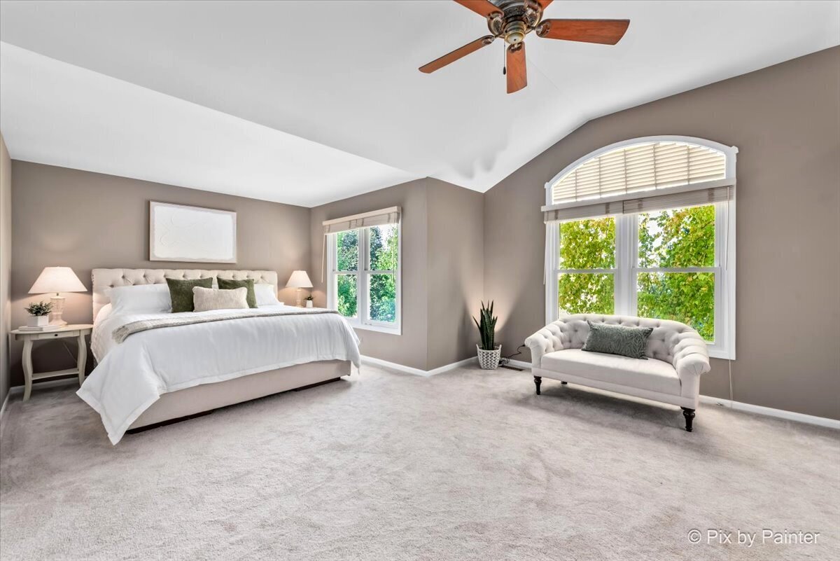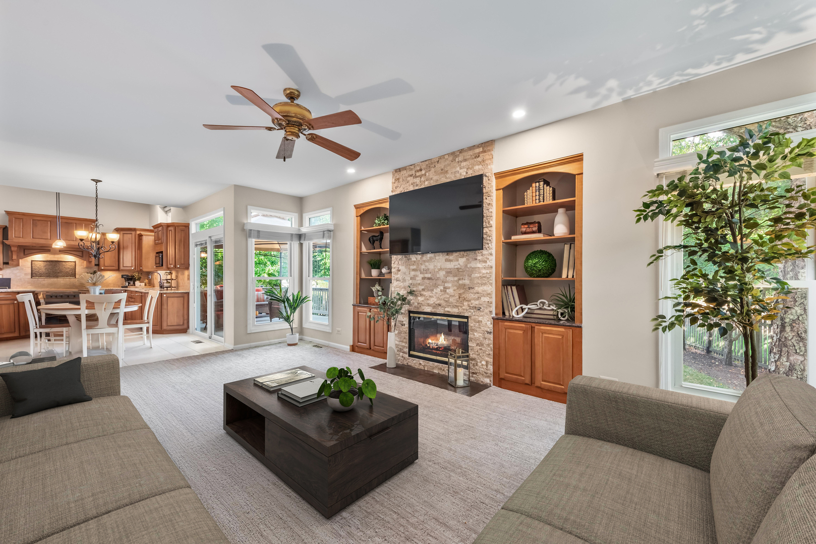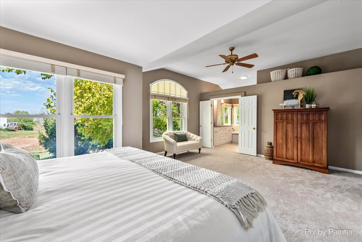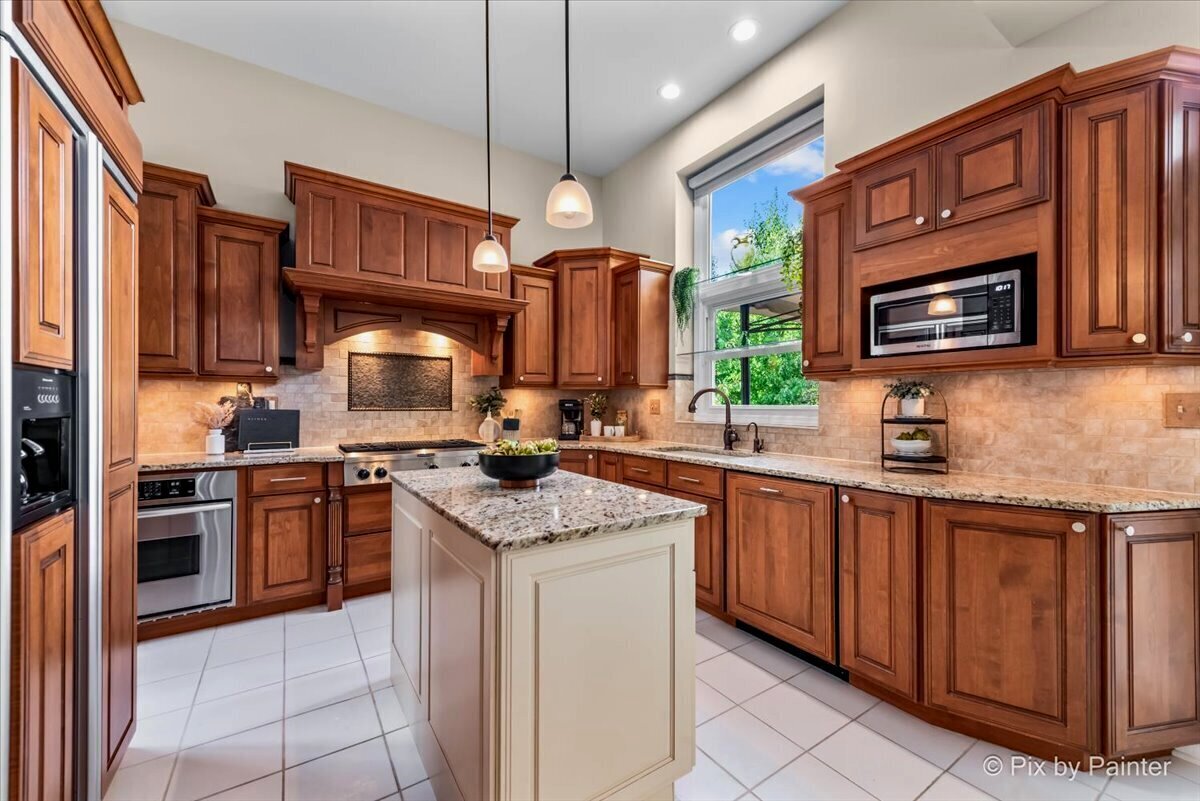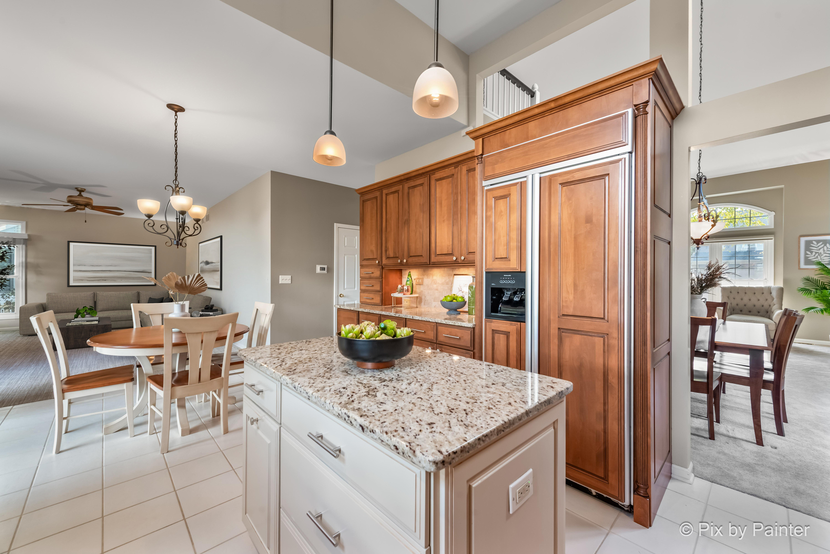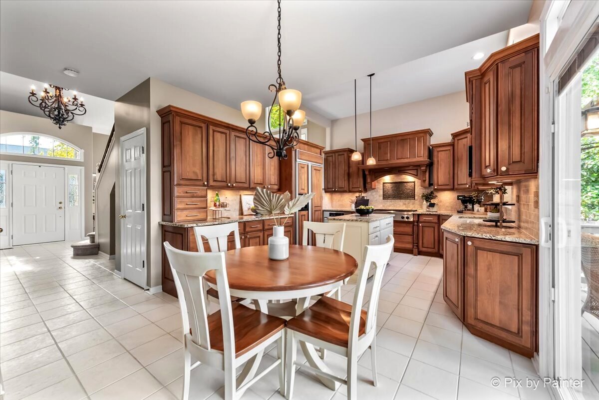 Welcome to 2 White Chapel Ct. – This stunning, desirable and rarely available “Madison” Model home offers 2,612 sq. ft. (above grade) of beautifully designed living space in the highly sought-after Willoughby Farms subdivision of Algonquin. Perfectly situated on a large, professionally landscaped corner lot with underground sprinklers, this 4-bedroom, 3-bath home (including a first-floor in-law/office/craft room with adjacent full bath) with 3 car garage combines timeless style, modern upgrades, and an outdoor oasis featuring your very own deck and in-ground heated pool. From the moment you arrive, the curb appeal is undeniable. With its strategically placed lights that subtly light up the beautiful landscaping at night accenting mature river birch trees, this home will impress from the start. Step inside to be greeted by a soaring two-story foyer and majestic staircase (highlighted by lit recessed built-ins ideal for displaying your favorite artwork or family treasures). Freshly painted and re-carpeted, every inch of this home radiates pride-of-ownership that sets the stage for the elegance found throughout. Off to your left is your formal living and dining areas with voluminous soaring ceilings and stained-glass windows providing the perfect spaces for entertaining and serving an incredible meal. At the heart of the home lies your gourmet kitchen – a true chef’s delight with 42″ maple-glazed cabinetry, dovetail self-closing drawers, granite countertops, stone tile backsplashes, under-cabinet lighting, and a large granite-topped island with added storage. Stainless steel KitchenAid professional series appliances, including a gas cooktop and separate convection oven, make preparing meals a joy. The spacious eat-in area provides casual dining with views of your private backyard retreat through sliding glass doors with built-in blinds. The kitchen flows seamlessly into the family room, where a cozy gas fireplace invites you to unwind after a long day. Nearby, a spacious laundry room with front-loading washer and dryer, sink, shelving, and hanging racks adds everyday convenience. Tucked away on the main level is your flexible office/in-law/guest room, adjacent to a full bath for true multi-generational living. A three-car garage with cabinets and an extended pad ensures plenty of room for vehicles, storage, and hobbies. Upstairs, retreat to your luxurious master suite sanctuary featuring a sitting room, vaulted ceiling, and spa-like en-suite. Pamper yourself with a whirlpool tub, separate stand-up ceramic tiled shower, dual sink vanity, heated bathroom floors, and an expansive walk-in closet with California Closet organizers. Additional bedrooms and a loft area provide ample space for family and guests. The partially finished basement is designed for entertaining, complete with a built-in bar, full-size refrigerator, and a massive crawl space for all your storage needs. Step outside and discover your private backyard oasis. A large deck with canopy overlooks the heated in-ground pool, surrounded by lush landscaping and unmatched privacy with no homes directly behind you – (notice the extra green / conservation space behind gate at rear of property!). Whether it’s morning coffee, weekend barbecues, or evening swims, this is your perfect spot for making memories with family and friends. Updates and upgrades provide peace of mind: new furnace and A/C with UV light purification (2017 – w/transferable warranty), roof w/powered attic vent replaced 2014 (according to previous owners, shingles are a 50 year shingle), siding (2021), new water softener (2024), pool heater (9 years old), whole house water filtration system and recent paint and carpeting. An ADT security system adds an extra layer of comfort. This home is just minutes from downtown Algonquin’s thriving restaurants and shops, award-winning District 300 schools, the tranquil Fox River, Golf Club of Illinois, and easy access to the I-90 corridor. Schedule your showing today!