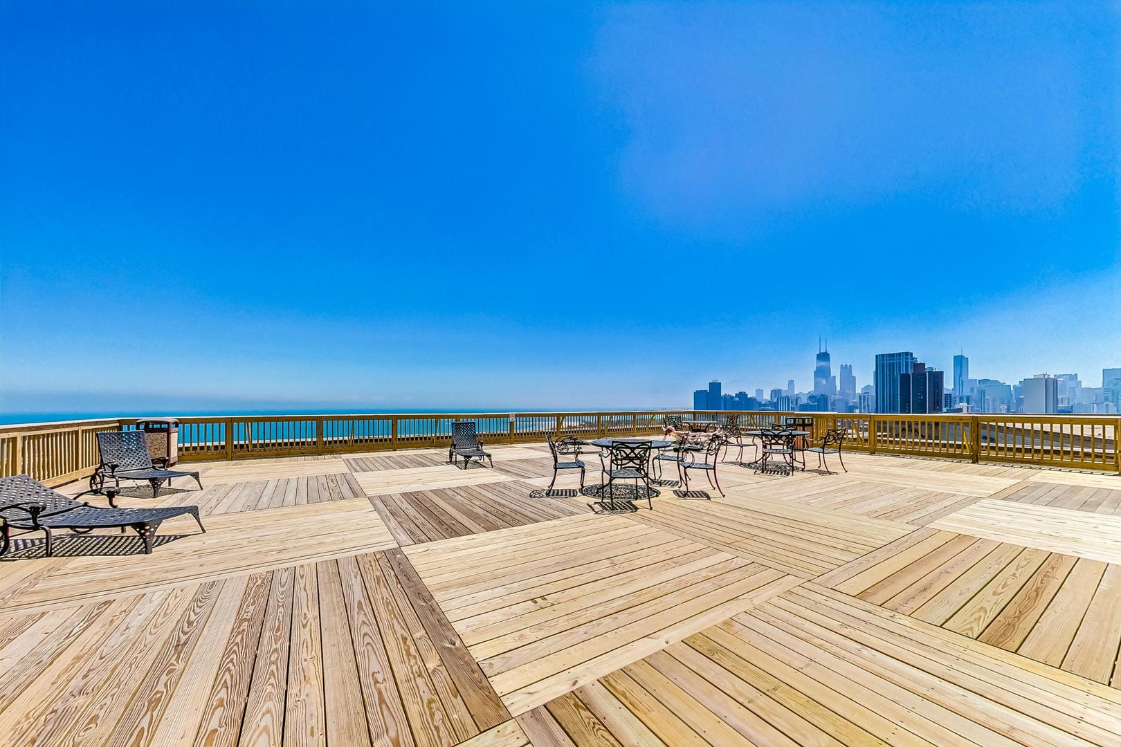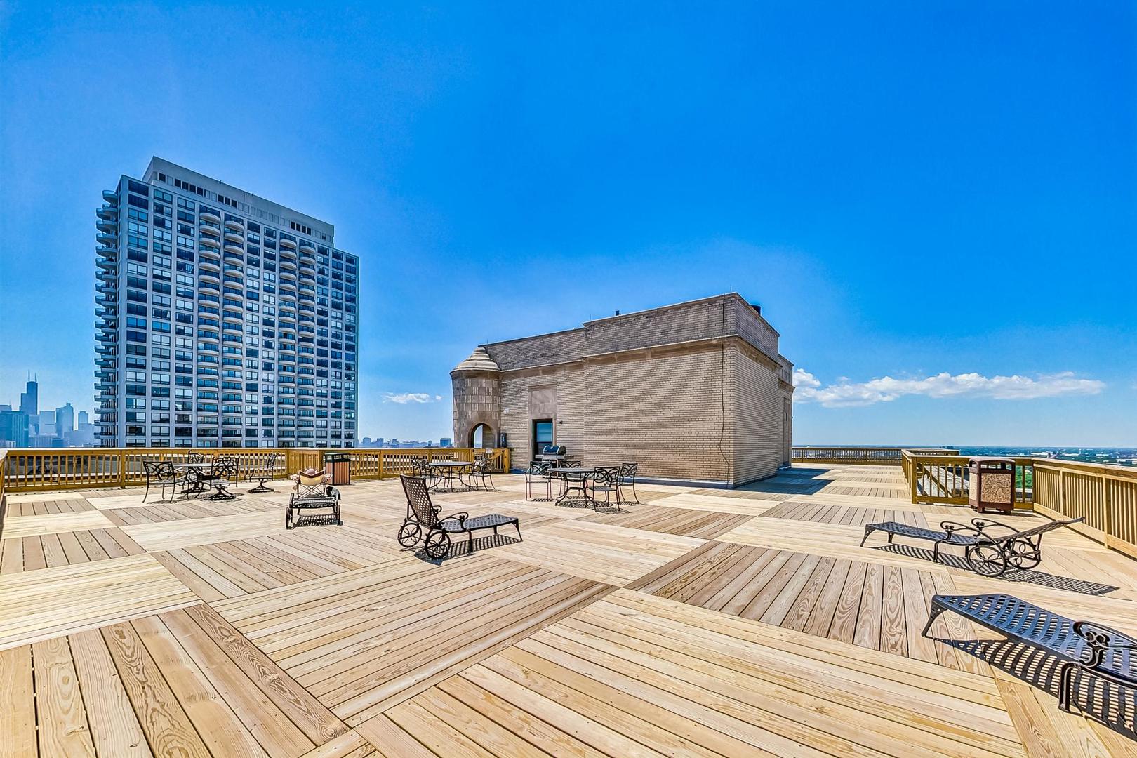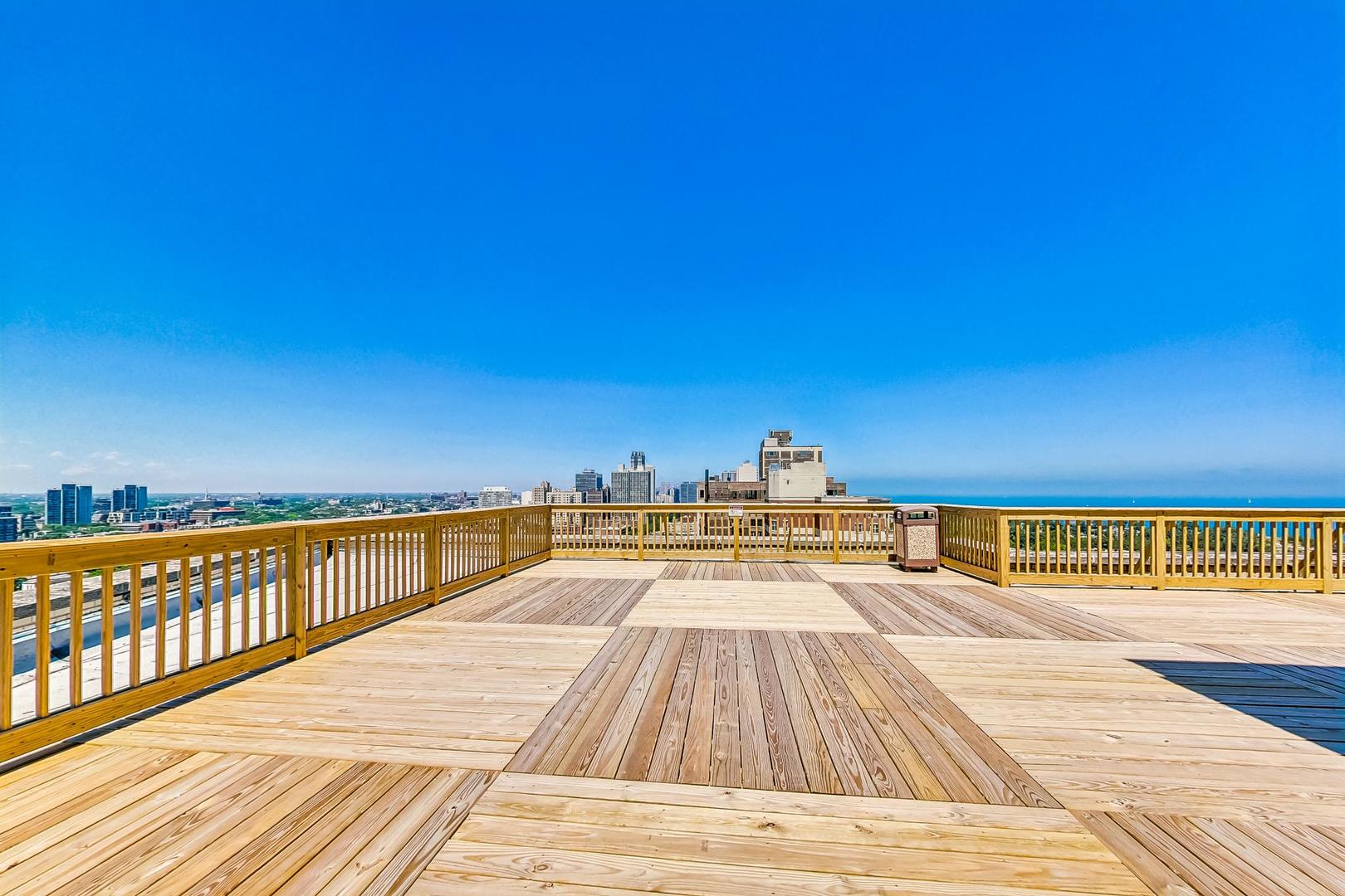 Perched on the 14th floor of iconic 2000 N Lincoln Park West, this west-facing one-bedroom offers sweeping views and unforgettable sunsets with great natural light through oversized windows. The home has just been fully refreshed with new interior paint throughout, refinished parquet hardwood floors, and new lighting to elevate the look and feel. Enjoy vintage charm paired with modern comfort in an unbeatable location. The timeless character of the unit’s built-in cabinetry with original hardware offers tons of storage and makes the space feel curated from day one. The bedroom is easily large enough to accommodate a king-sized bed, and the closets are absolutely massive. The sweeping roof deck is the perfect place to entertain and take in the iconic Air & Water Show and Navy Pier fireworks, and it offers a fantastic view of the skyline. Lincoln Park, the lakefront, Lincoln Park Zoo, dining, nightlife, and transit are all right outside your door. This is a timeless full-amenity, pet-friendly building with 24-hour door staff, on-site management/engineering, fitness room, rooftop sundeck, laundry, bike storage, and on-site conveniences including Starbucks and RJ Grunts. Assessments include heat, gas, water, cable TV, and internet. A washer and dryer can be added to the unit, too!