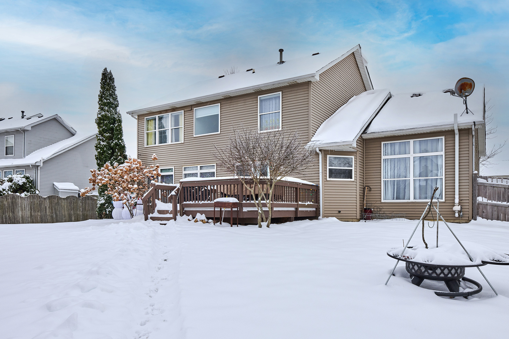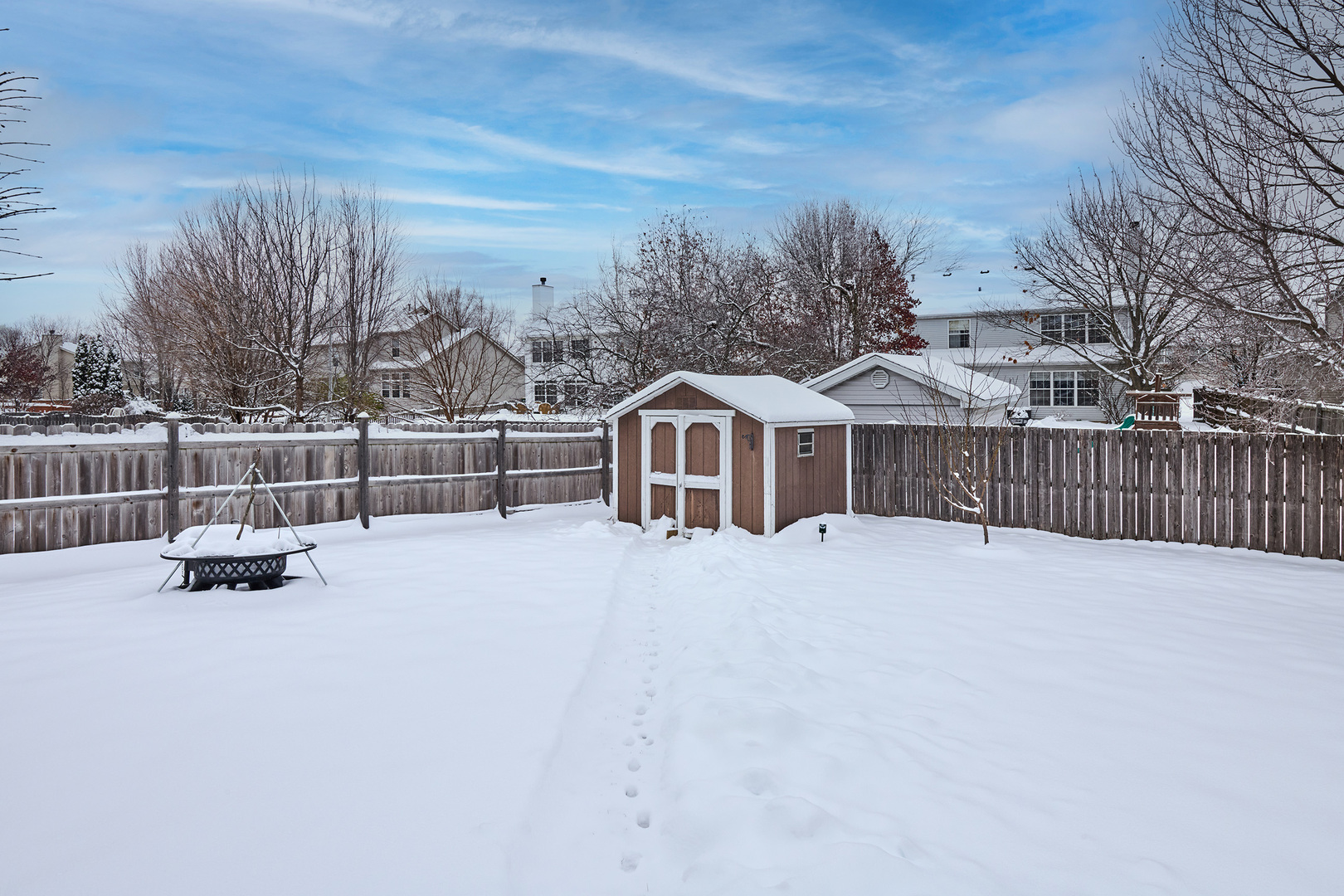 Welcome to 2002 Havenhill Dr in Kendall Ridge a beautifully newly remodeled and well maintained home featuring dark-finished hardwood floors and high-quality carpeting throughout. The gourmet kitchen impresses with stainless steel appliances, white quartz countertops, luxurious lightning, plenty of cabinet space and natural light. A first-floor bedroom offers direct access to a full bath with a walk-in stall shower, providing an ideal setup for guests.The dramatic two-story foyer opens to a vaulted, wainscoted living room that fills the home with natural light. First-floor washer/dryer for convenience with access to the full basement including a partially finished area, a large storage space, a newly furnace and AC, and a radon mitigation system, offering both comfort and peace of mind. Upstairs, the spacious primary suite features a vaulted ceiling, walk-in closet, soaking tub, separate shower, and double-vanity quartz countertops. Additional bedrooms are generously sized and well-appointed. Outside, enjoy a large backyard with a deck, storage/utility shed, and fresh new landscaping and fruit trees, located in sought-after Plainfield District 202. This home offers space, quality, and convenience-move-in ready and truly a must-see.