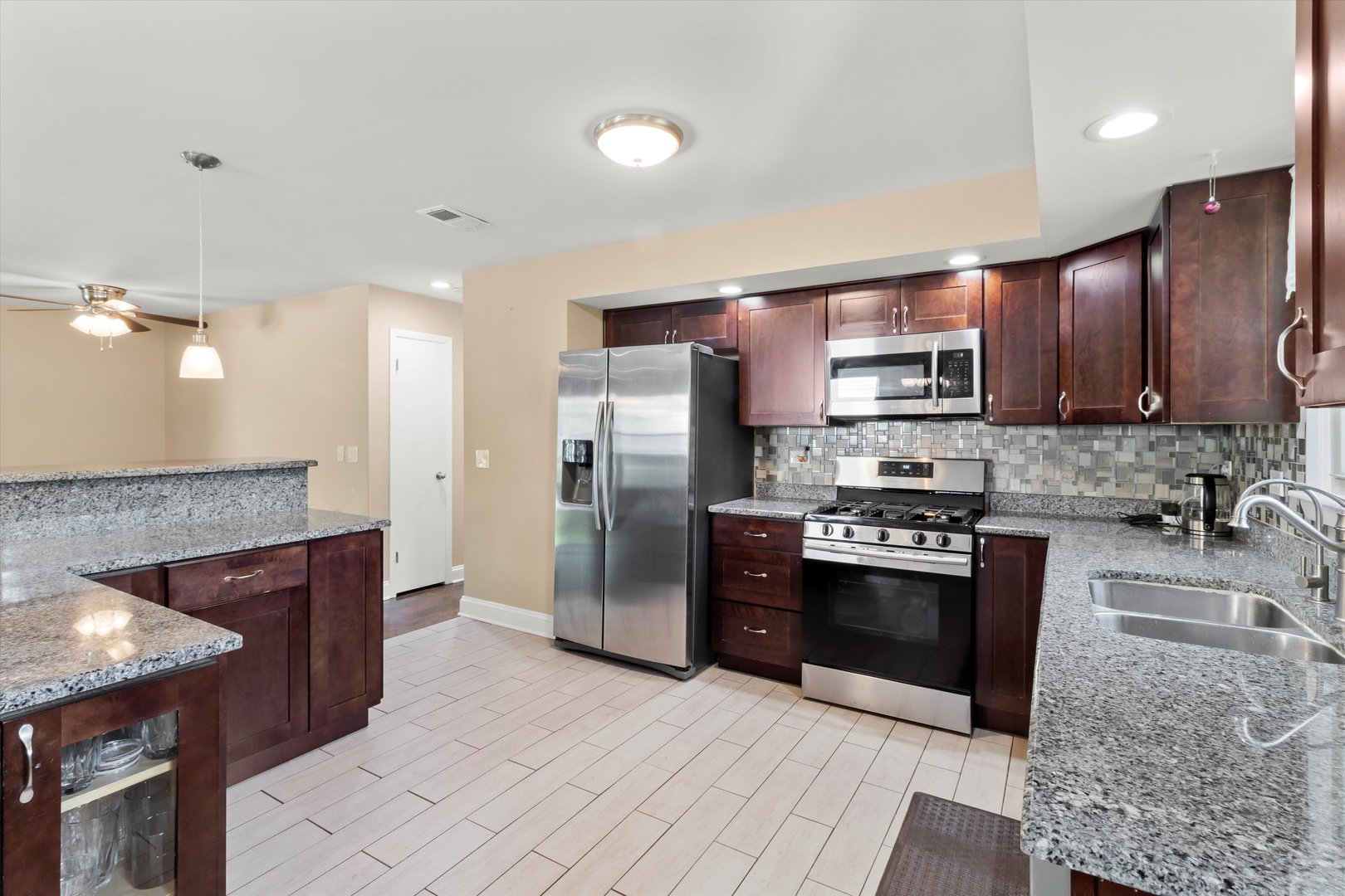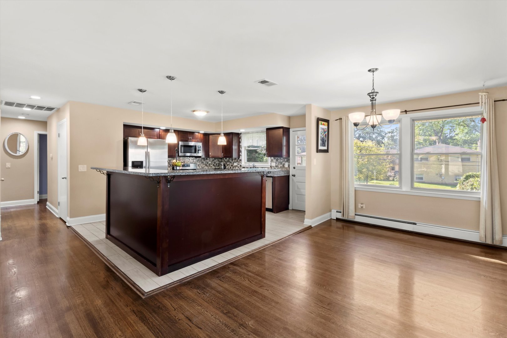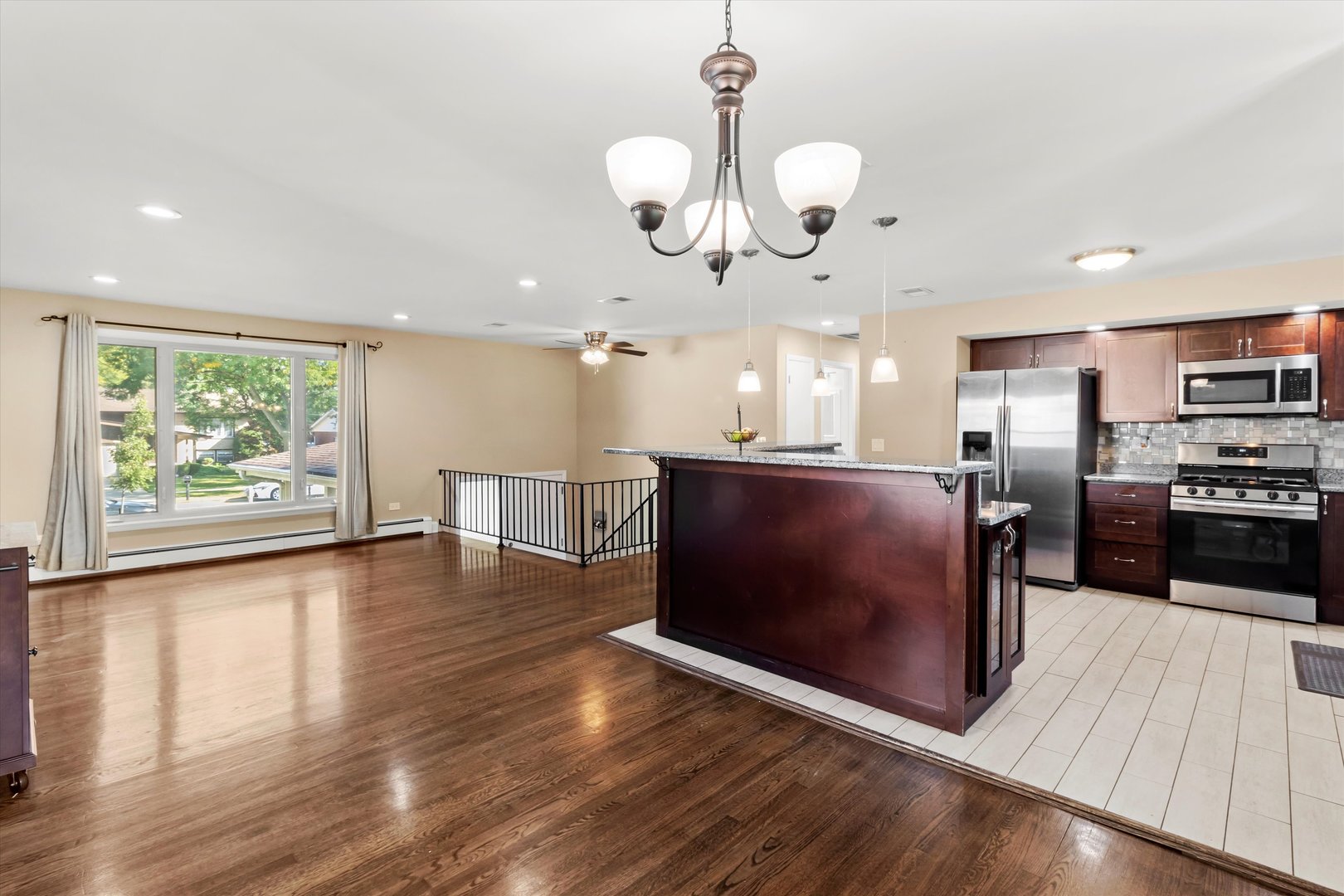 Step inside this stunning 5-bedroom, 3-bathroom split-level gem, where style and function meet in perfect harmony! The main level welcomes you with gorgeous hardwood floors and an open-concept living room drenched in natural light-an inviting space that flows effortlessly into the dining area and kitchen. Here, you’ll find granite countertops, stainless steel appliances, a chic backsplash, tiled floors, a breakfast bar, and plenty of storage to keep everything organized. Just off the kitchen, step out onto the spacious back deck-perfect for morning coffee, summer grilling, or simply unwinding. Upstairs, three generous bedrooms and a full bathroom provide comfort, while the primary suite offers its own private retreat with an attached full bath and walk-in shower. Downstairs, the warm and welcoming family room features a classic brick, wood-burning fireplace for those cozy nights in. The lower level also includes two additional bedrooms, another full bathroom, a second eat-in kitchen, laundry, and utility space-making it ideal for an in-law arrangement. Outside, the charm continues with beautifully manicured landscaping, a fenced backyard for privacy, a patio ready for entertaining, a handy storage shed, and attached garage. This home has it all-spacious living, modern updates, and outdoor beauty-wrapped up in one irresistible package!