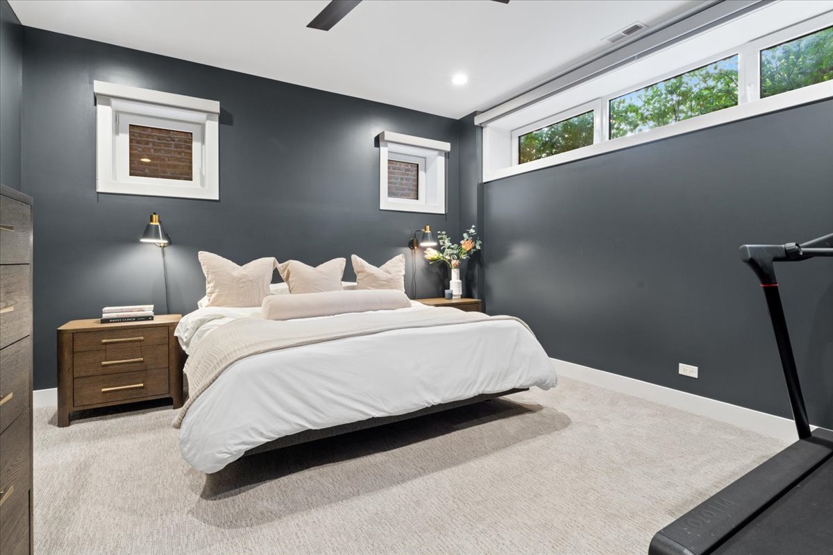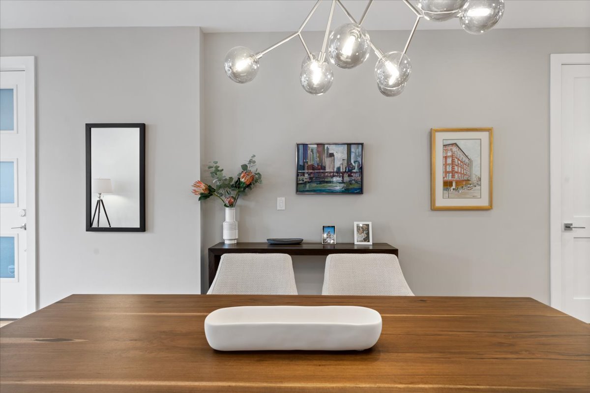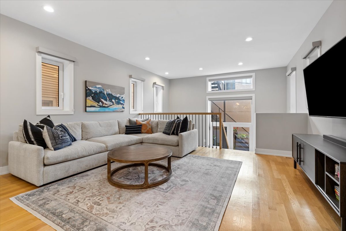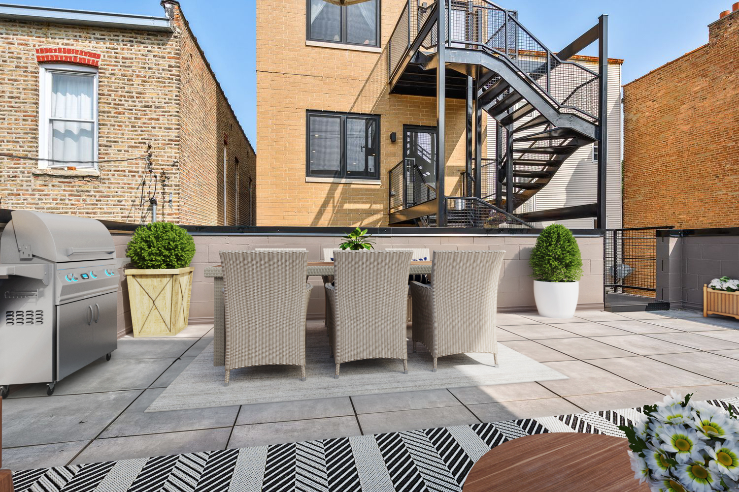 OPEN HOUSES CANCELLED. Not all duplex downs are created equal! This luxury all-brick , 2019 built ~2500 SF unit in the heart of West Town stands out with bright south-facing living spaces, high-end finishes, and amazing outdoor areas. The open-concept main level features a sleek chef’s kitchen with Bosch appliances, 12′ waterfall island, and custom bar with wine fridge, flowing into a sun-filled living room and family room. Step out from the mudroom to your patio with a gas line and private tiled garage deck -perfect for entertaining. Lower level boasts heated floors, spa-like primary suite with steam shower + soaking tub, all bedrooms, and full laundry room. Thoughtful extras include private entrance, 2 staircases in the unit, garage with EV setup, common storage, and only 2 units in the building. The builder truly elevated this home-not a detail overlooked! Close to West Town’s best dining, shopping & transit.