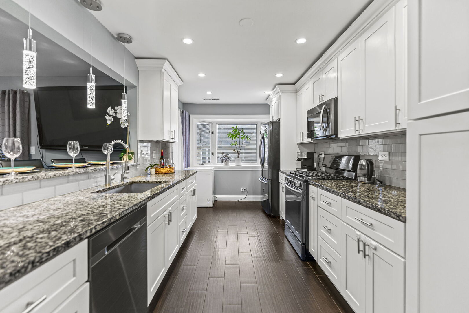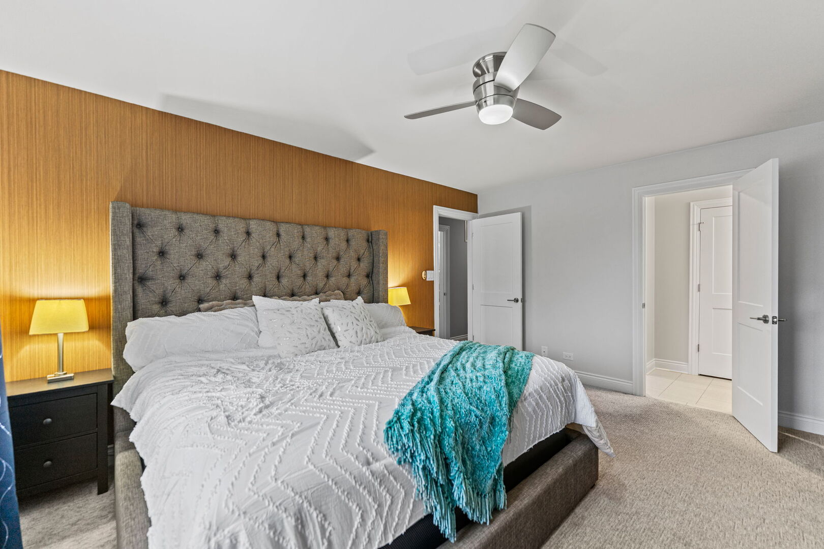 ***Multiple offers received*** Highest and best offers due Sunday, November 23rd at 4:00 PM CT! This beautifully updated 2-bedroom, 2 full-bath penthouse condo offers a freshly painted, open-concept layout filled with modern style and thoughtful upgrades. The sleek white shaker kitchen features a bar-style island, space for a breakfast area, a reverse osmosis water filtration system, and under-cabinet LED lighting for a clean, contemporary look. The kitchen conveniently opens to the private balcony, making outdoor dining or morning coffee a breeze. The enormous living room is bright and inviting and also provides direct access to the balcony, offering a wonderful indoor-outdoor flow. Rich hickory hardwood flooring runs throughout the main living areas, adding warmth and elegance. The primary suite includes a spacious walk-in closet, and both bathrooms have been tastefully and stylishly updated. The dining area features classic wainscoting, adding charm and sophistication. A welcoming foyer with a large storage closet provides extra functionality right at the entryway. Modern comforts include an in-unit washer and dryer and a smart Nest thermostat. A 2-year-old water heater adds peace of mind. Located in a highly rated school district and close to shopping malls, playgrounds, and major highways, this move-in-ready condo blends comfort, convenience, and modern living beautifully. Don’t wait – schedule your showing today as it won’t last long! Roof is about 8 years old.