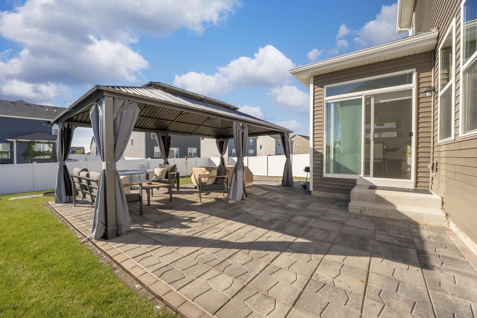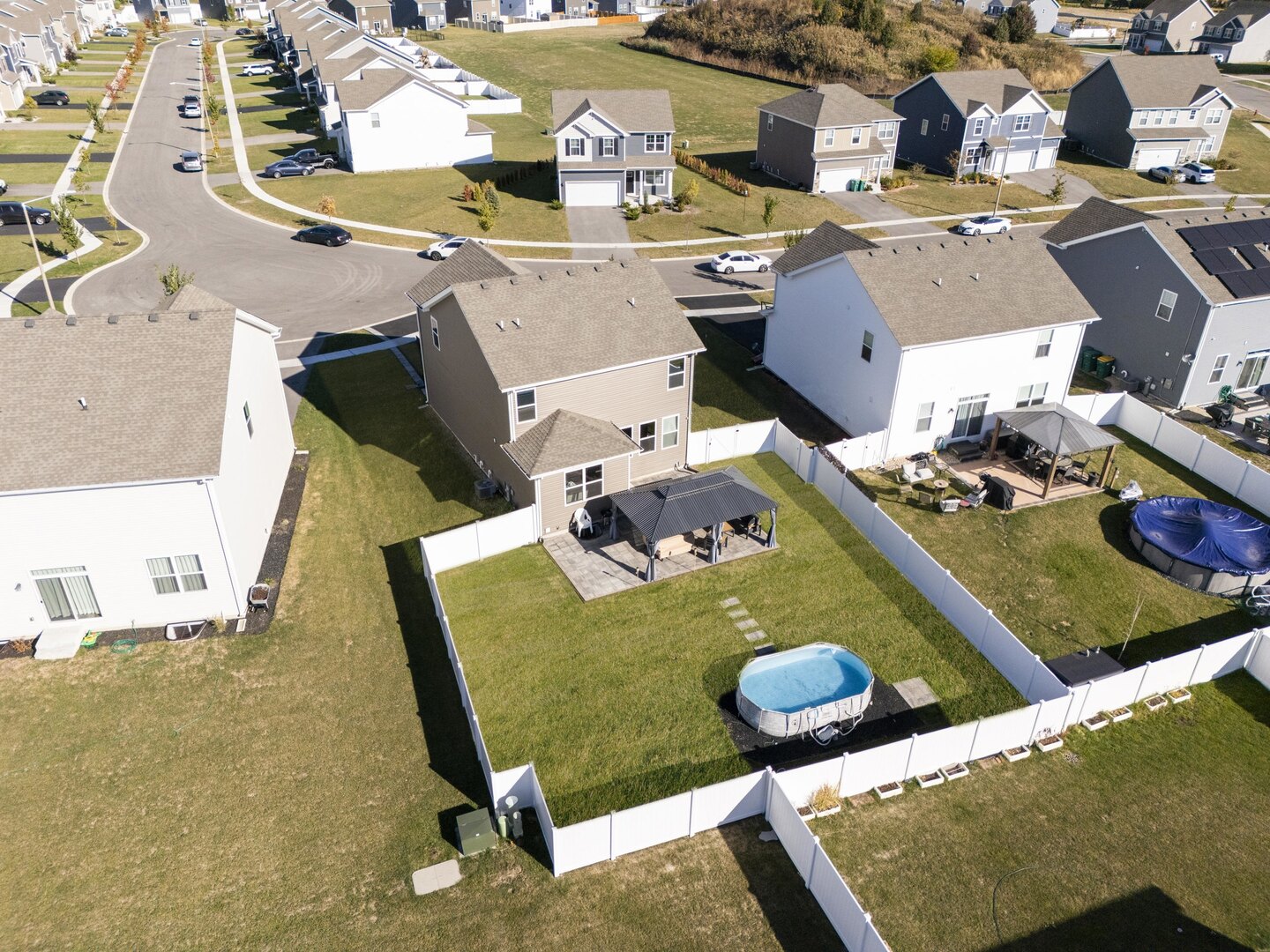 Welcome to this nearly brand-new 4-bedroom home, built in 2023, where modern design and thoughtful details come together in perfect harmony. Step inside to a well-designed open living area, filled with natural light and ideal for both entertaining and quiet family evenings. The chef’s kitchen features sleek finishes, high-end appliances, and plenty of counter space – perfect for cooking, dining, and gathering. The primary suite offers a private retreat with ample space and comfort, while three additional bedrooms provide flexibility for family, guests, or a home office. Out back, you’ll find your own private oasis: a large newly fenced backyard with a beautiful paver patio, spacious gazebo, and even an above-ground pool for summer fun. A newly planted garden adds a touch of color and charm, and the extended driveway provides extra parking convenience. Built with quality and care, this home blends modern living, smart design, and outdoor enjoyment – ready for its next chapter with you.