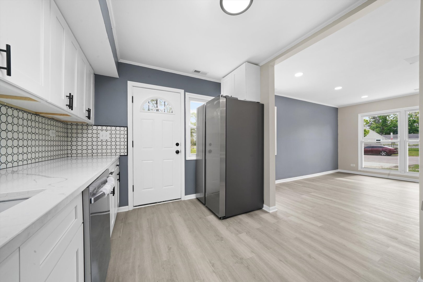 Fully rehabbed 4 bed 1 bath Cape Cod home in Park Forest. Walk into this cozy home that has been completely updated. The living room is completed with brand new flooring, recessed lighting and a fireplace, perfect for entertaining and ambience. The brand new kitchen features white shaker cabinetry with a custom wine rack, granite countertops, a modern tile backsplash and stainless steel appliances. The home has all updated with all new plumbing and electrical. Fully fenced in backyard with a brand new carport and concrete driveway. TRULY A MUST SEE!