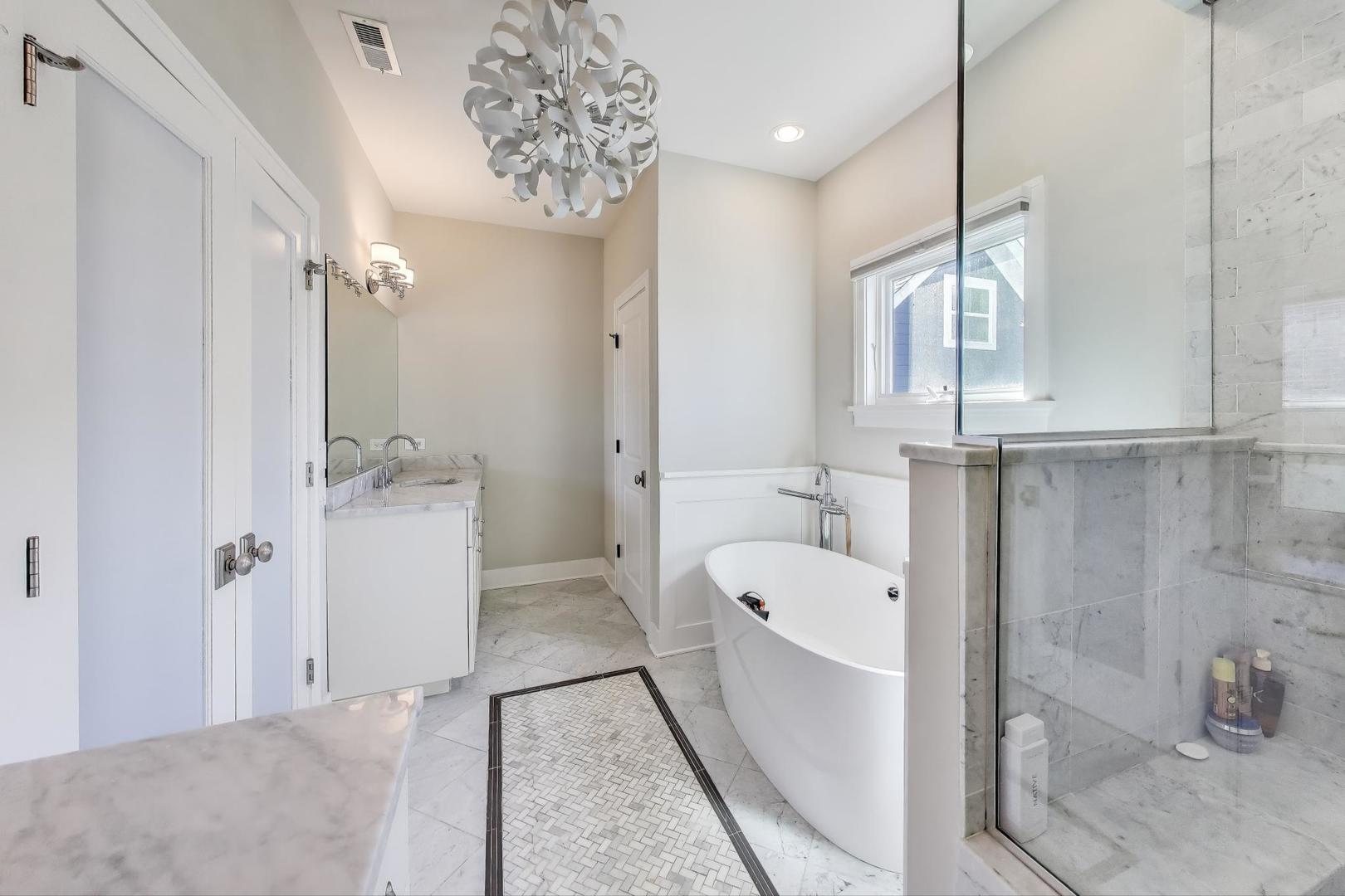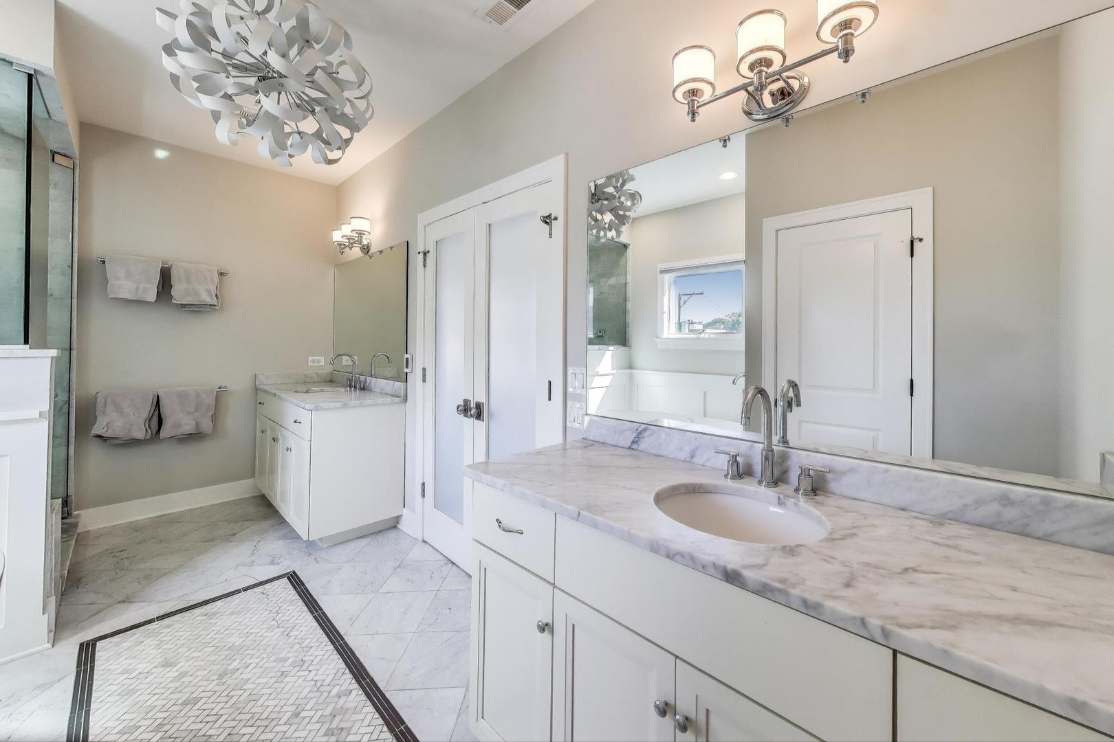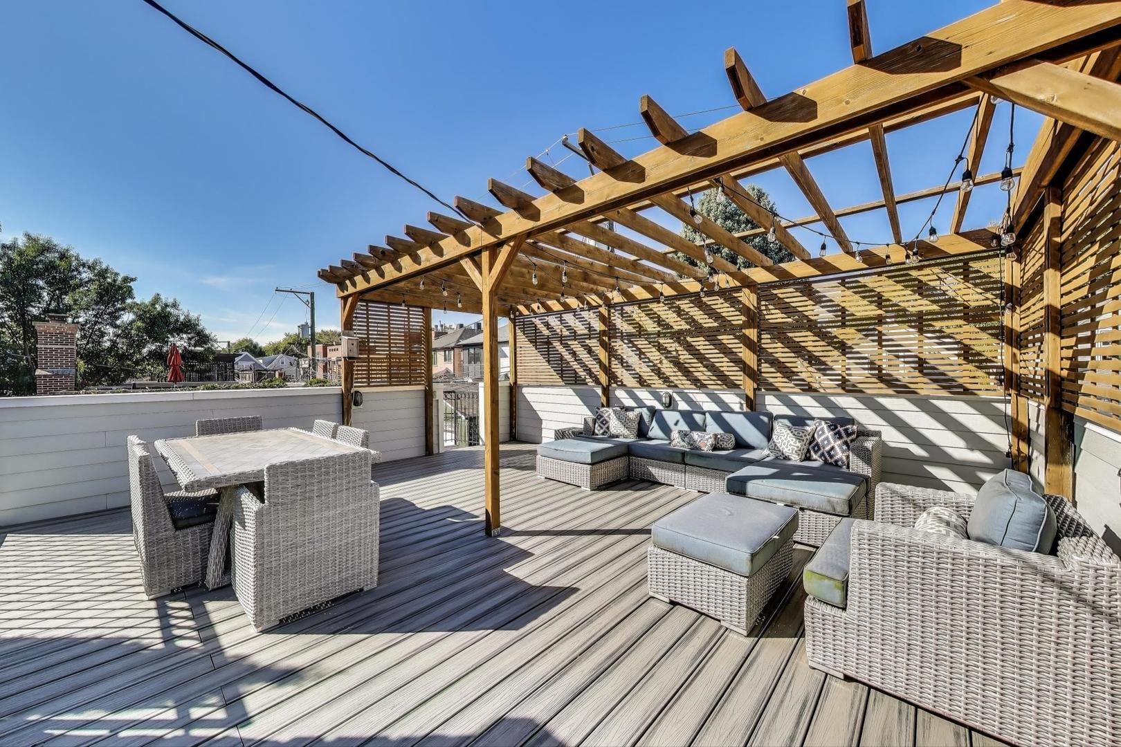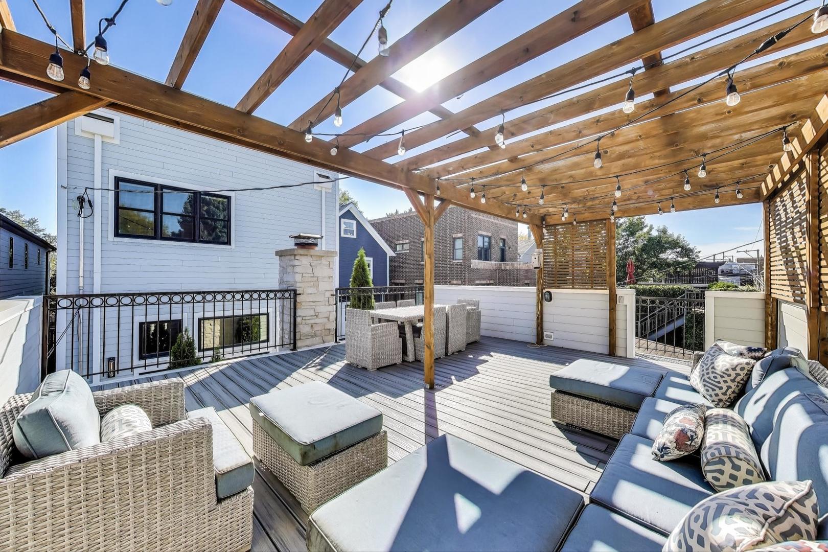 An absolute rare find OVERLOOKING Hamlin Park. Set on an oversized lot, this home will feel wider, brighter, and bigger upon entry! 4 large bedrooms upstairs including a spa-like primary bath. Great kitchen with Sub Zero, Wolf, Bosch, custom hood, and large pantry set the stage for the open living and entertaining space. Fantastic basement with 2 additional bedrooms, mud room, etc. 3 fireplaces, 3 wet bars. Over 2,000 square feet of outdoor living space includes a fully equipped rooftop deck finished with premium Trex decking IN ADDITION to the garage rooftop deck. Sit on the front porch and watch your kids play at the park or sit on the back patio and enjoy a glass of wine by the fire- your choice!! City living at it’s best!