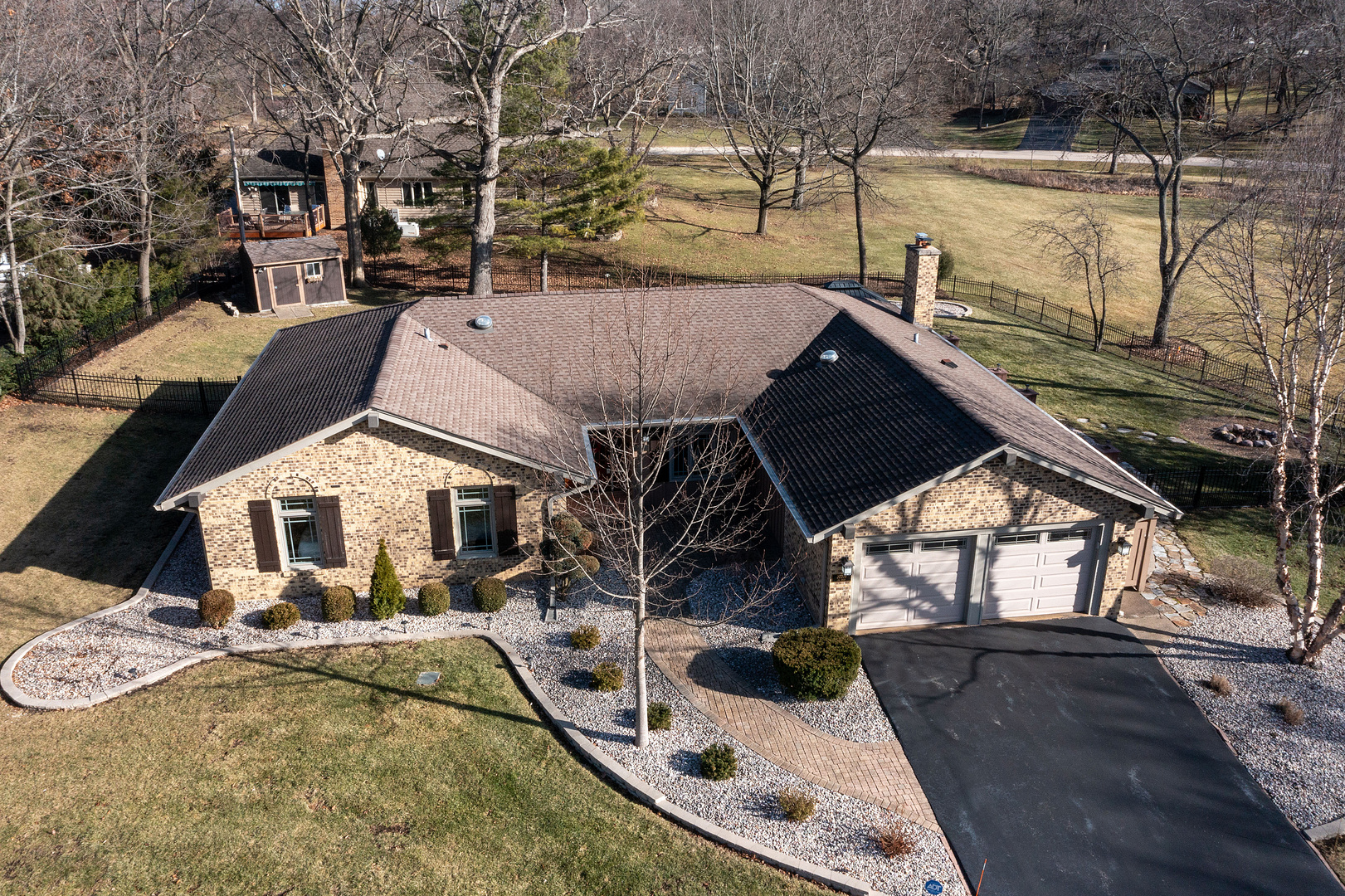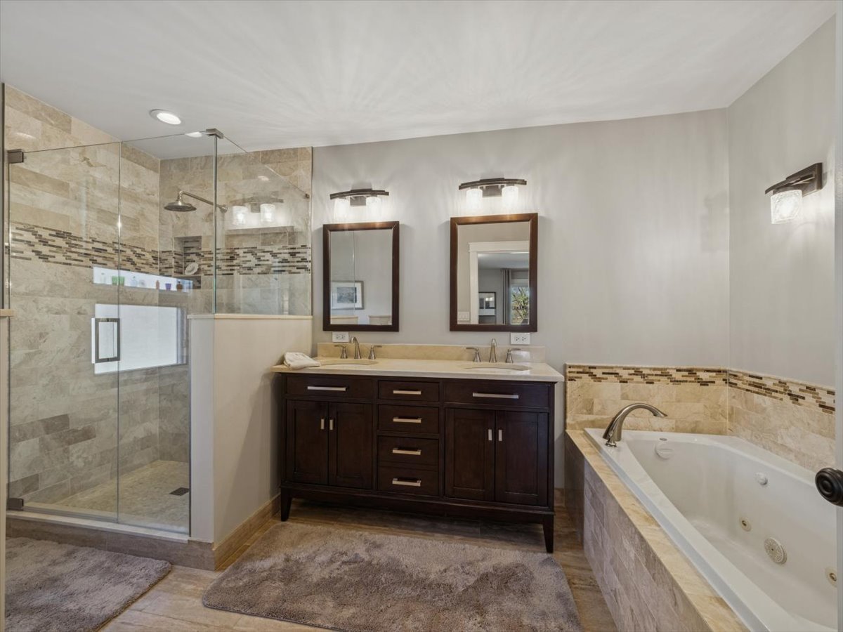 Welcome to your dream home at 20205 N. Lea Rd. in the serene Ferndale Woods in the community of Deer Park, where the elegance of ranch-style living meets the modern luxuries of today. Nestled on a sprawling .63 acre corner lot, this 3-bedroom, 2-bathroom abode is a stone’s throw from a tranquil nature reserve, offering an idyllic retreat from the hustle and bustle of daily life. As you approach the property, the new maintenance-free metal fence and professionally manicured landscaping hint at the attention to detail that awaits within. Step through the front entry door and be greeted by an ambiance of warmth and comfort, accentuated by the rich hardwood floors that dance with the sunlight streaming through an abundance of windows. The heart of the home is the light and bright kitchen, boasting stainless steel appliances, abundant cabinets, and a cozy breakfast bar, perfect for savoring your morning coffee as you gaze out at the picturesque surroundings. The open concept floor plan seamlessly flows into the living spaces, including the family room with a stunning stone fireplace and built-in shelving, an ideal backdrop for those cozy winter nights. Entertaining is a breeze with the versatile layout, featuring multiple living areas that connect to the outdoors. Step out onto the wraparound deck with a covered pergola, or entertain on the large stone patio and breathe in the fresh air as you overlook the scenic backyard, a canvas of greenery that soothes the soul. Retreat to your main bedroom oasis, a sanctuary complete with a walk-in closet, a luxurious en-suite bathroom with a separate jetted tub and shower, double vanities, and a patio door that opens to the manicured yard! It’s the perfect escape after a long day. The fully remodeled game room or man cave in the basement offers a fresh, vibrant space for leisure and play, while the enormous crawl space and large 2-car garage with new epoxy flooring provide ample storage solutions. This home is not just a living space; it’s a hub of new memories waiting to be made. With over $100,000 in upgrades, including a new Master Bedroom patio door, a Generac generator, a new washer and dryer, a SS Refrigerator, a professionally painted interior, new window blinds, and leaf gutter guards, every detail has been meticulously curated for your comfort and peace of mind. Enjoy private access to Charles E. Brown Park, where adventures await with fishing, tennis, basketball, and bike trails leading to Deer Park Mall. With the prestigious Barrington Schools and low Lake County property taxes, this home is a treasure not to be missed. Experience the blend of nature’s beauty and refined living at 20205 N. Lea Rd. Your new chapter begins here. Come and see it today!