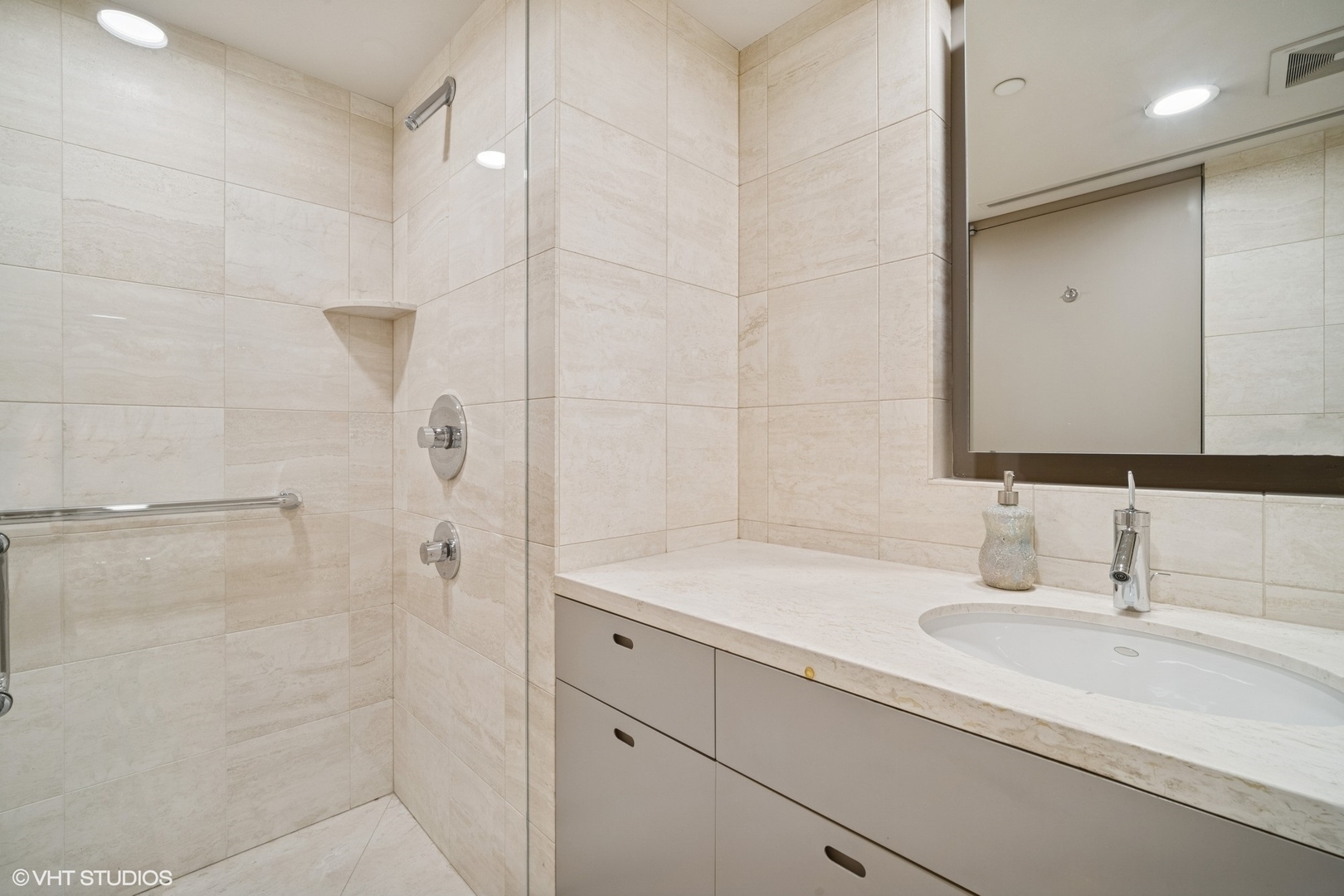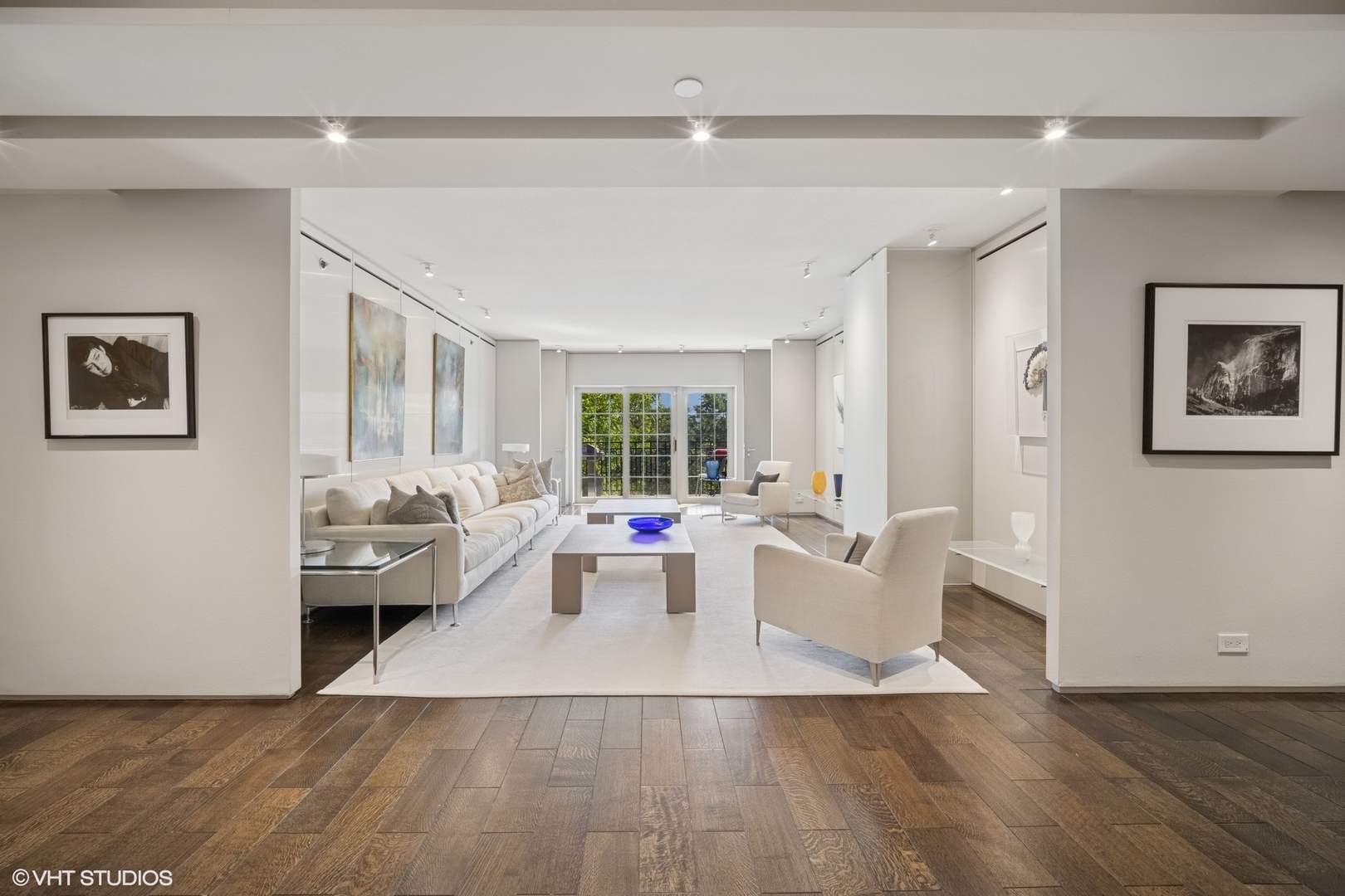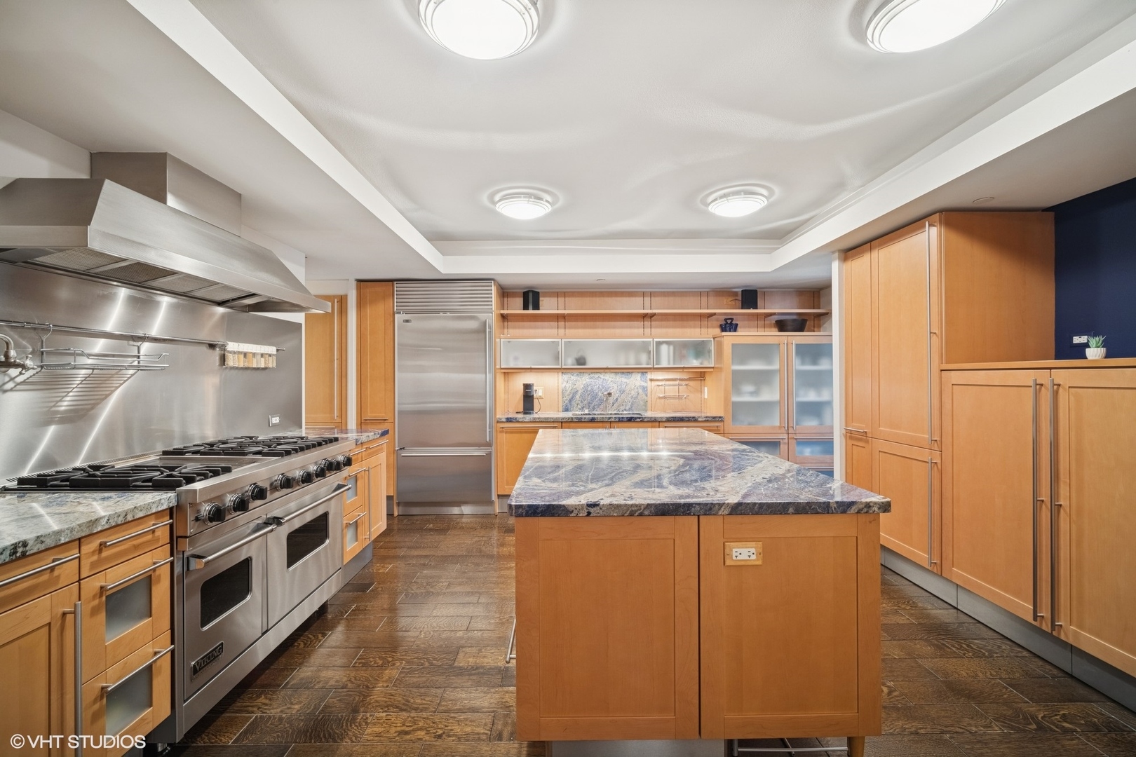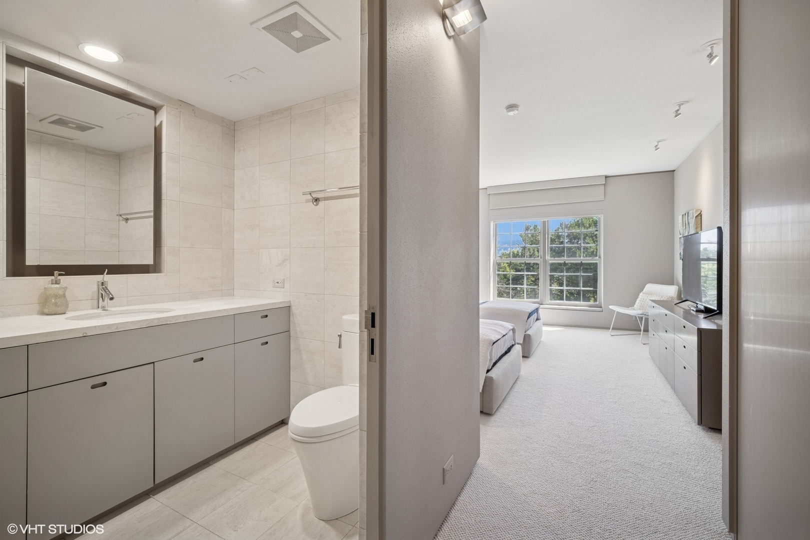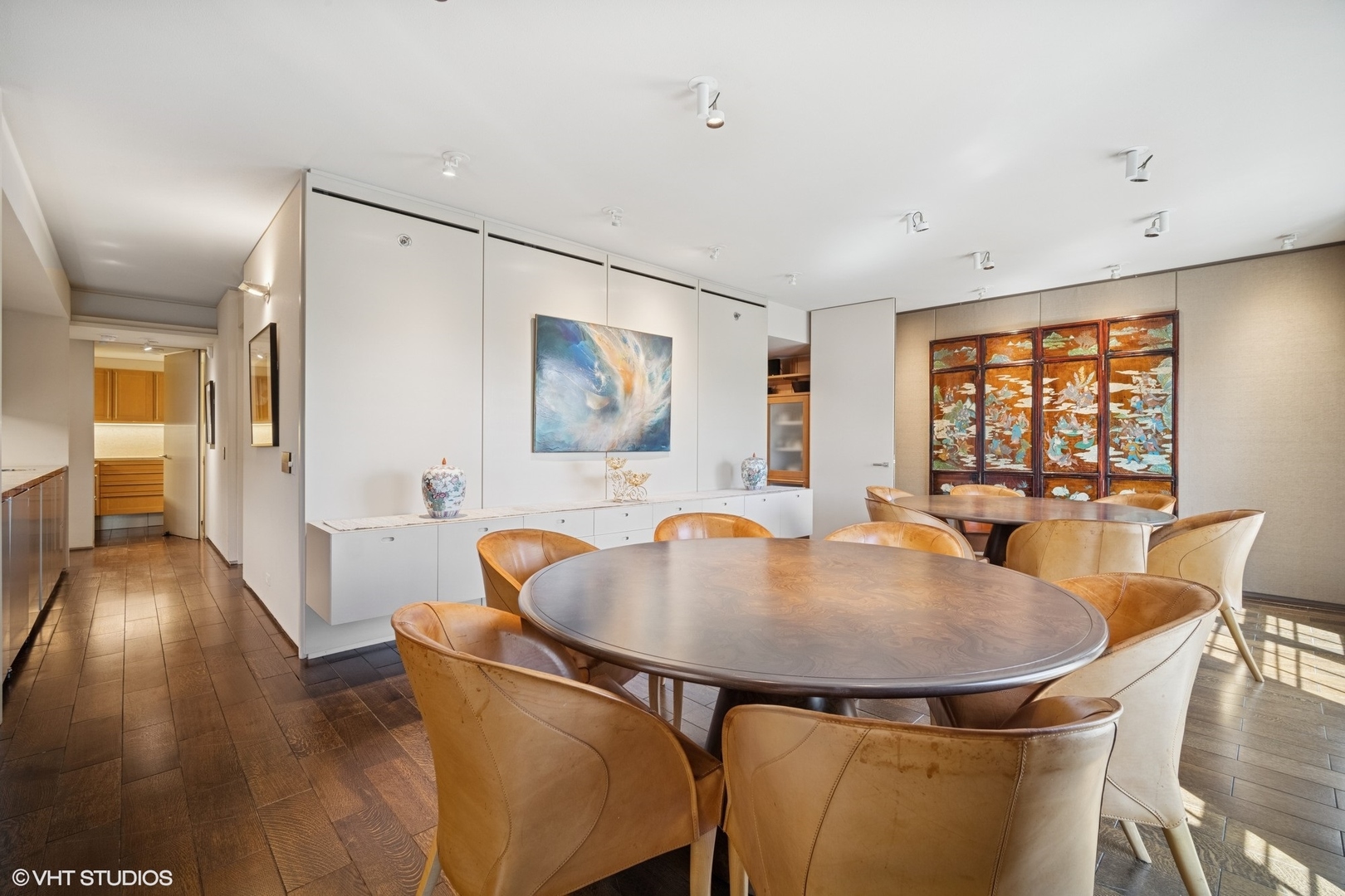 Simply striking & palatial condo ripped right from the pages of Architectural Digest located in-town just blocks from Lake Michigan in one of Highland Park’s most prestigious concierge buildings. Designed by renowned architects Powel/Kleinschmidt this unique and timeless unit is like living inside of a masterpiece. A grand foyer leads into the sunny & sleek living room featuring floating frosted glass shelving, strategic track lighting designed to highlight beautiful works of art and a sliding glass door to one of two stone balconies. The Chef’s De Giulio designed eat-in kitchen is a work of art featuring a 48″ Viking SS range & double oven w/ professional grade hood & convenient pot filler, enormous granite work island with overhang for stool seating, two side-by-side Sub Zero fridge/freezers (one SS, one cabinet integrated), Miele dishwasher, pull out shelving, under cabinet & cove lighting, and display shelves. The 12′ long granite butler’s pantry between the kitchen & formal dining room operates as a wet bar with its own Fisher Paykel dishwasher, Sub Zero mini fridge, wine fridge and ice maker for easy entertaining. The dining room features sophisticated floating buffet cabinetry w/ natural stone tops for storage, serving, displaying. A dramatic & symmetrical gallery style hallway leads to the primary bedroom suite and is quintessential luxury. Designed to accommodate “Him & Her” in every way, the large bedroom has built-in burlwood cabinetry, an MTV Cribs worth dressing room for “Her” (just under 200 sqft) w/ built-in dressers, shoe shelving, translucent glass door hanging wardrobes, frosted display shelving, and a lovely make-up vanity with natural lighting. “Her” bath has a white marble glass enclosed shower, soaking tub & private lav room with bidet, plus “His” separate WIC and handsome marble full bath. The two secondary bedrooms each have their own beautiful natural stone private baths & exceptional closet space & built-in dressers. Casual entertainment takes place in the stylish family room with gorgeous wood paneled walls, built-in media center and slider to the 2nd stone balcony. Working is a breeze in the big & bright office with serene treetop views, and playtime is easy in the adorable playroom featuring playful & colorful built-ins. The laundry/mud room is home to the extra Sub-Zero fridge/freezer for storage/overflow, full sized Neptune front load W/D with tremendous counterspace for folding, prepping, etc. Multiple in-unit storage rooms means no need to downsize here, plus additional storage space in the garage near the unit’s 3 indoor garage parking spots. Additional features include beautiful hardwood flooring, custom paneled walls T/O, zoned HVAC (3 units), on-site concierge from 7am-10pm 7 days a week including holidays, access to the building exercise room, conveniently close to shopping, recreation, transportation, Ravinia and so much more. Lovingly maintained and upgraded, you will not find an equal to this unique & stunning unit. Seller would prefer to sell furnished as much of the furniture was custom designed.