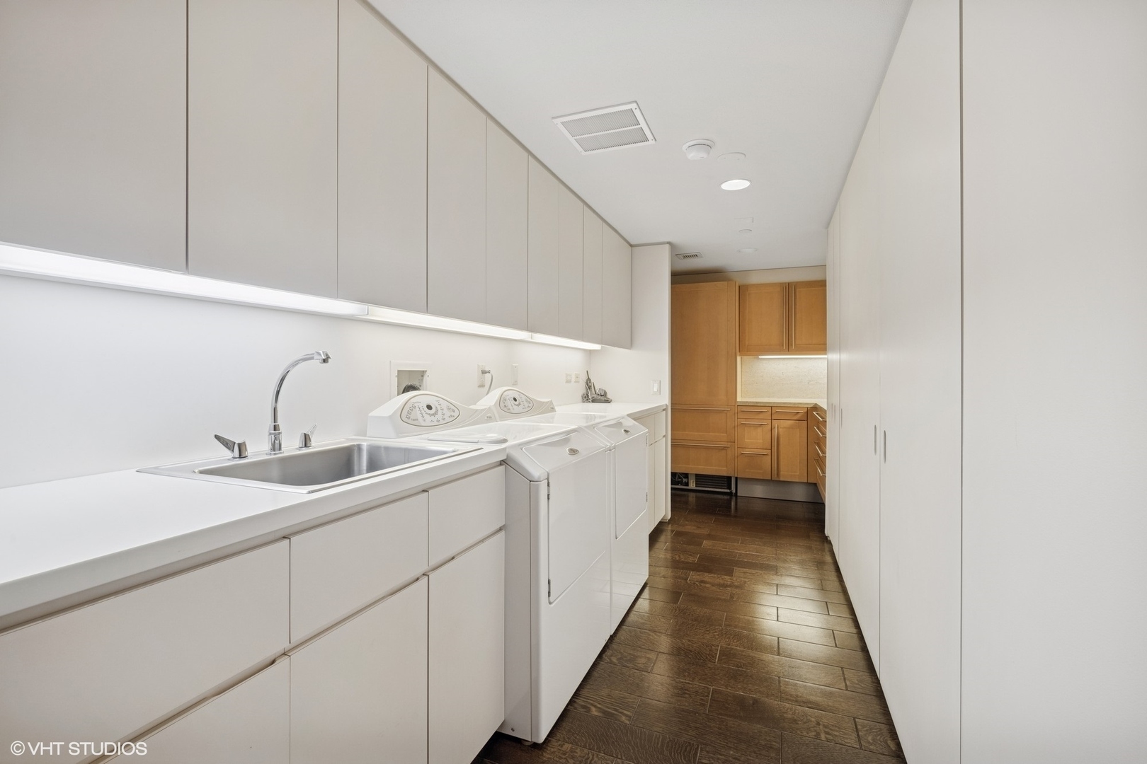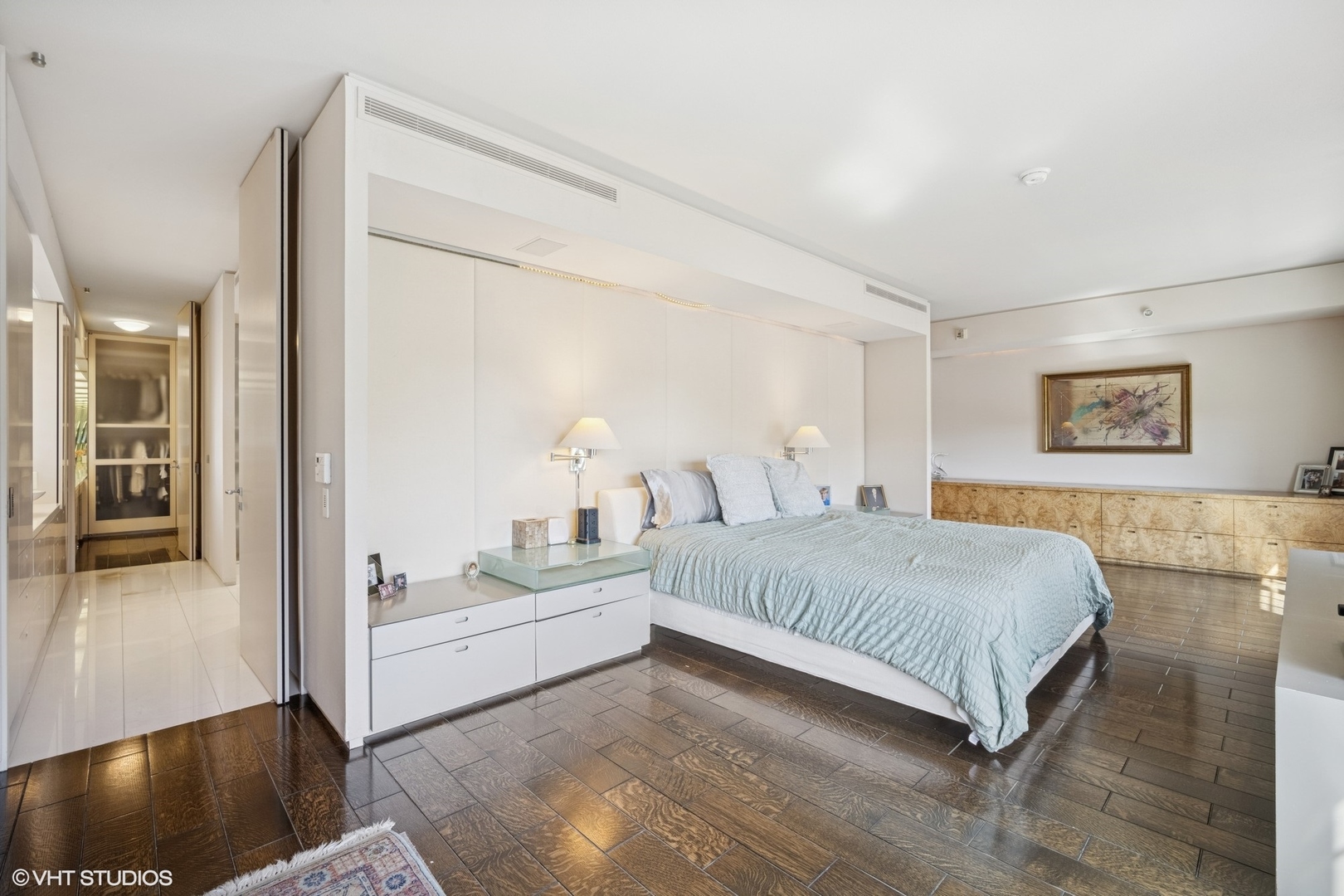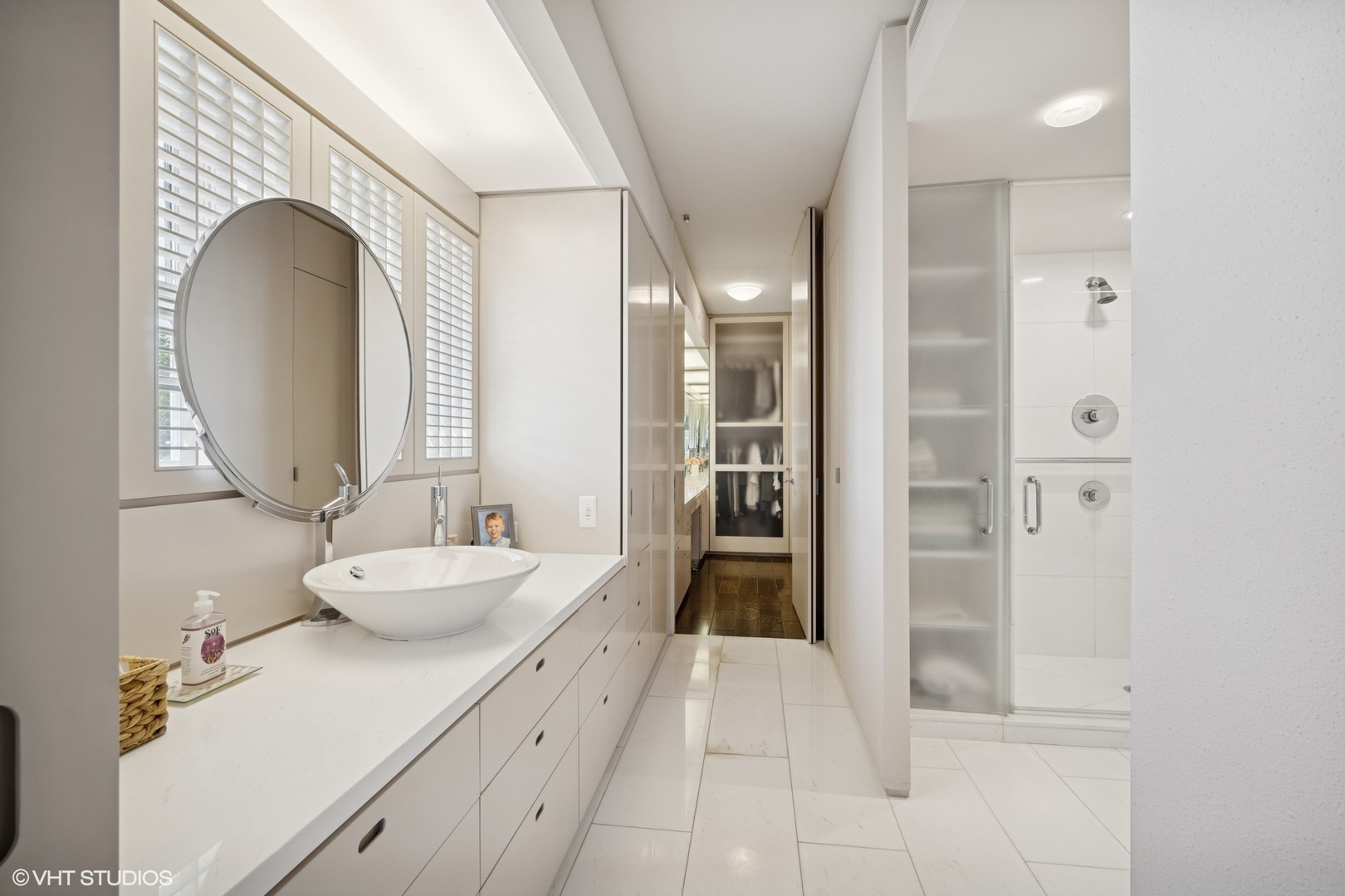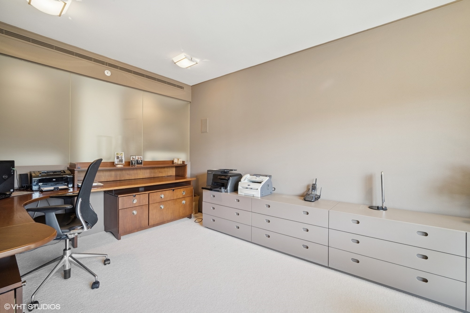 Simply striking & palatial condo ripped right from the pages of Architectural Digest located in-town just blocks from Lake Michigan in one of Highland Park’s most prestigious concierge buildings. Designed by renowned architects Powel/Kleinschmidt this unique and timeless unit is like living inside of a masterpiece. A grand foyer leads into the sunny & sleek living room featuring floating frosted glass shelving, strategic track lighting designed to highlight beautiful works of art and a sliding glass door to one of two stone balconies. The Chef’s De Giulio designed eat-in kitchen is a work of art featuring a 48″ Viking SS range & double oven w/ professional grade hood & convenient pot filler, enormous granite work island with overhang for stool seating, two side-by-side Sub Zero fridge/freezers (one SS, one cabinet integrated), Miele dishwasher, pull out shelving, under cabinet & cove lighting, and display shelves. The 12′ long granite butler’s pantry between the kitchen & formal dining room operates as a wet bar with its own Fisher Paykel dishwasher, Sub Zero mini fridge, wine fridge and ice maker for easy entertaining. The dining room features sophisticated floating buffet cabinetry w/ natural stone tops for storage, serving, displaying. A dramatic & symmetrical gallery style hallway leads to the primary bedroom suite and is quintessential luxury. Designed to accommodate “Him & Her” in every way, the large bedroom has built-in burlwood cabinetry, an MTV Cribs worth dressing room for “Her” (just under 200 sqft) w/ built-in dressers, shoe shelving, translucent glass door hanging wardrobes, frosted display shelving, and a lovely make-up vanity with natural lighting. “Her” bath has a white marble glass enclosed shower, soaking tub & private lav room with bidet, plus “His” separate WIC and handsome marble full bath. The two secondary bedrooms each have their own beautiful natural stone private baths & exceptional closet space & built-in dressers. Casual entertainment takes place in the stylish family room with gorgeous wood paneled walls, built-in media center and slider to the 2nd stone balcony. Working is a breeze in the big & bright office with serene treetop views, and playtime is easy in the adorable playroom featuring playful & colorful built-ins. The laundry/mud room is home to the extra Sub-Zero fridge/freezer for storage/overflow, full sized Neptune front load W/D with tremendous counterspace for folding, prepping, etc. Multiple in-unit storage rooms means no need to downsize here, plus additional storage space in the garage near the unit’s 3 indoor garage parking spots. Additional features include beautiful hardwood flooring, custom paneled walls T/O, zoned HVAC (3 units), on-site concierge from 7am-10pm 7 days a week including holidays, access to the building exercise room, conveniently close to shopping, recreation, transportation, Ravinia and so much more. Lovingly maintained and upgraded, you will not find an equal to this unique & stunning unit. Seller would prefer to sell furnished as much of the furniture was custom designed.
