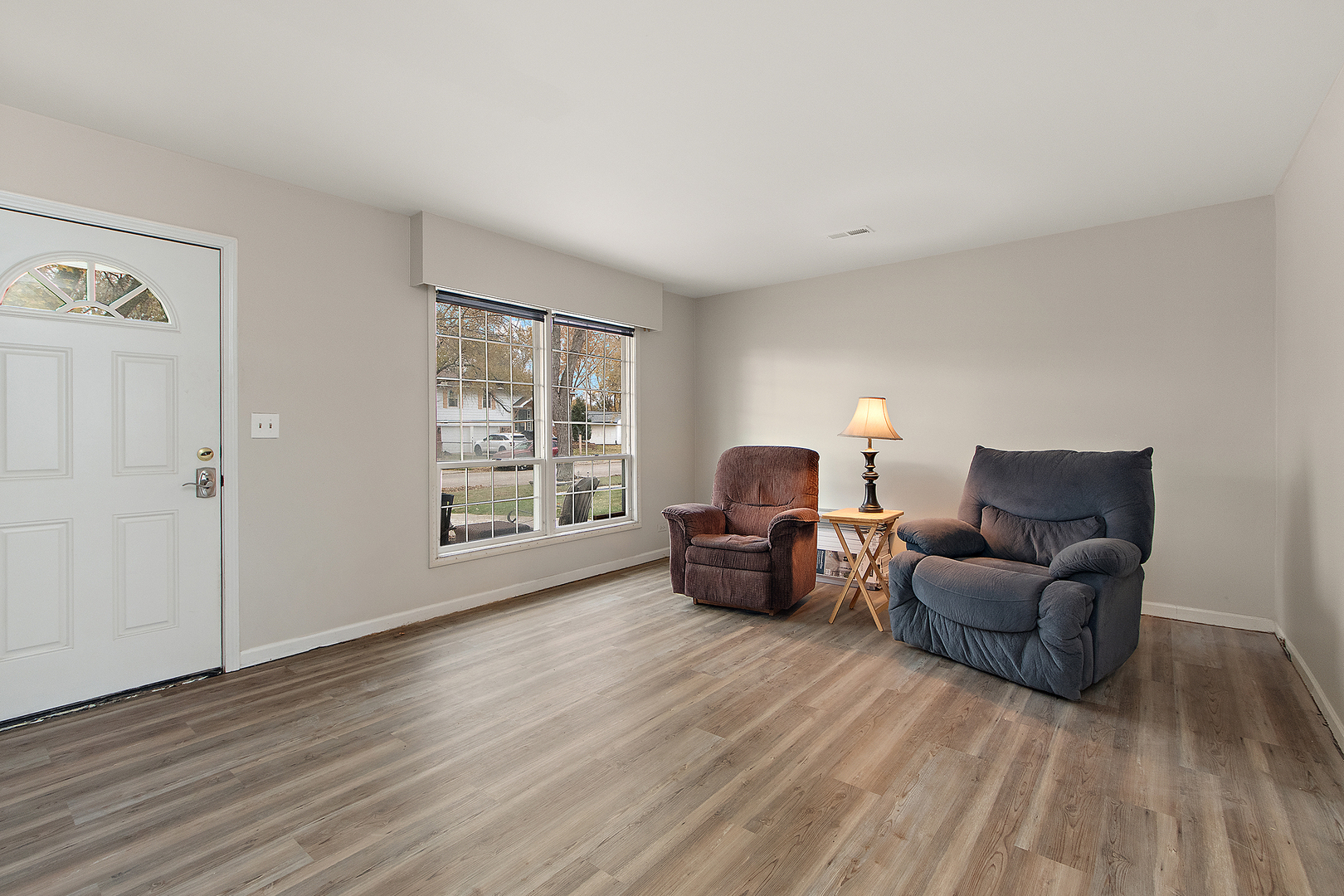 Charming ranch home with recent updates, including fresh paint, vinyl plank flooring, new carpet in the bedrooms and updated bathrooms. Other updates include a new roof in 2016. Also new siding, soffit and fascia in 2016 as well. Master bedroom features a full bathroom and a sliding patio door to the large concrete patio and back yard. Additional can lights have been installed during updating. Home features a detached 2 car heated garage with a workshop added on.