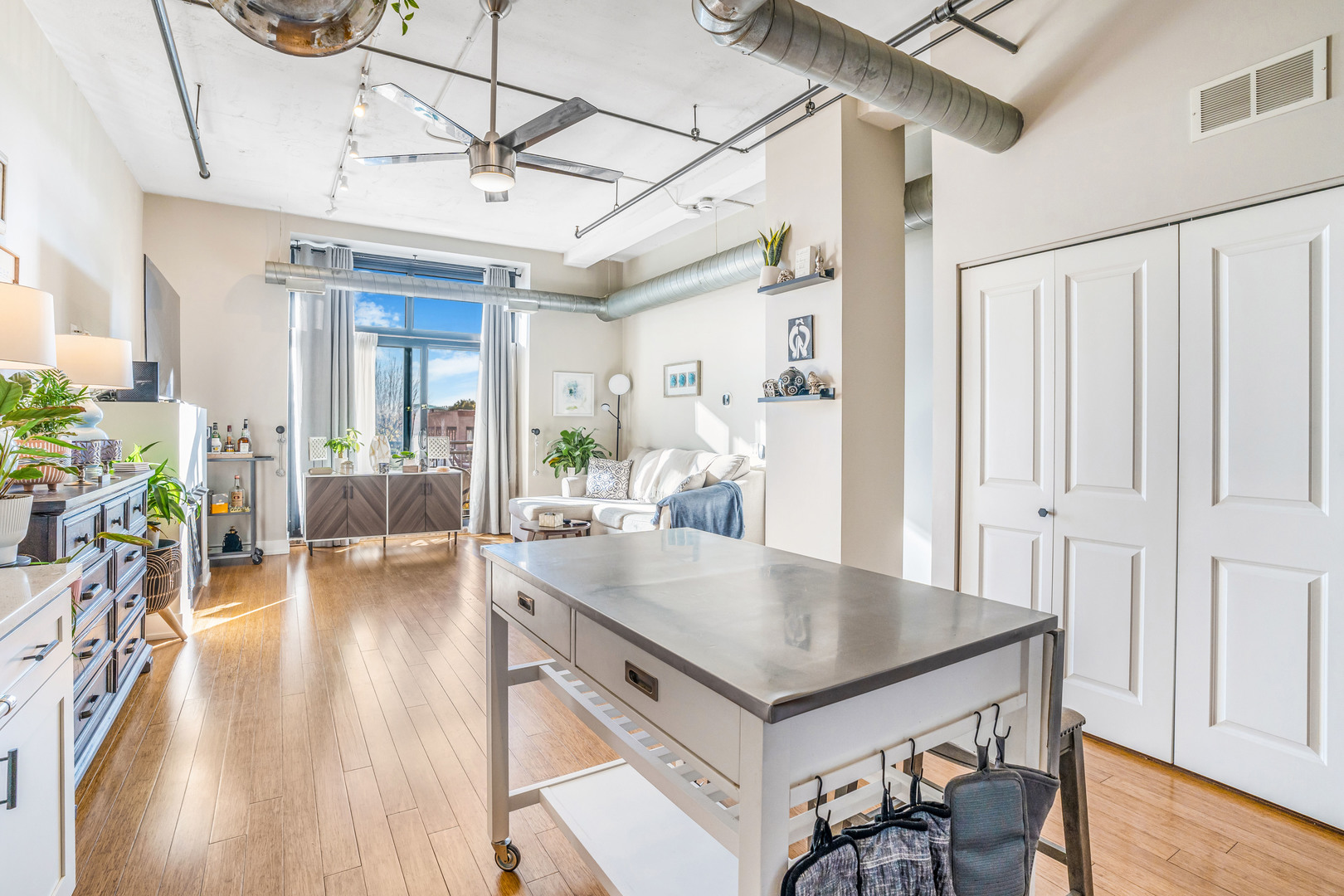 Urban Sophistication Meets Modern Comfort in the South Loop. Experience elevated city living in this chic 2-bedroom, 2-bath loft-style condo designed for those who appreciate style and substance. With 10-foot ceilings, gleaming hardwood floors, and an abundance of natural light, this home feels open, airy, and effortlessly inviting. The sleek kitchen is a true showstopper, complete with quartz countertops, crisp white cabinetry, and premium stainless steel appliances, perfect for cooking up dinner parties or casual weeknight meals. The expansive living and dining area sets the stage for both relaxing and entertaining, featuring a cozy gas fireplace and easy access to your own private balcony. Retreat to the spacious primary suite with its walk-in closet and spa-inspired bath showcasing a dual vanity, soaking tub, and separate shower. Additional highlights include in-unit washer and dryer, an enclosed garage space. This boutique, pet-friendly building offers great amenities, fitness room, bike storage, and elevator access, all in a prime South Loop location close to the CTA, top restaurants, shopping, and vibrant city attractions.