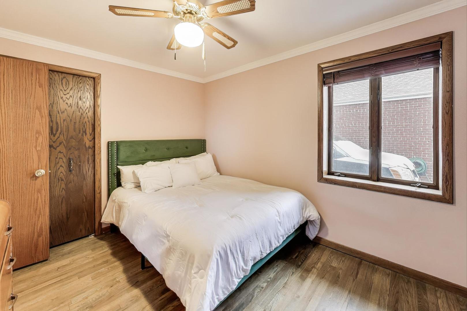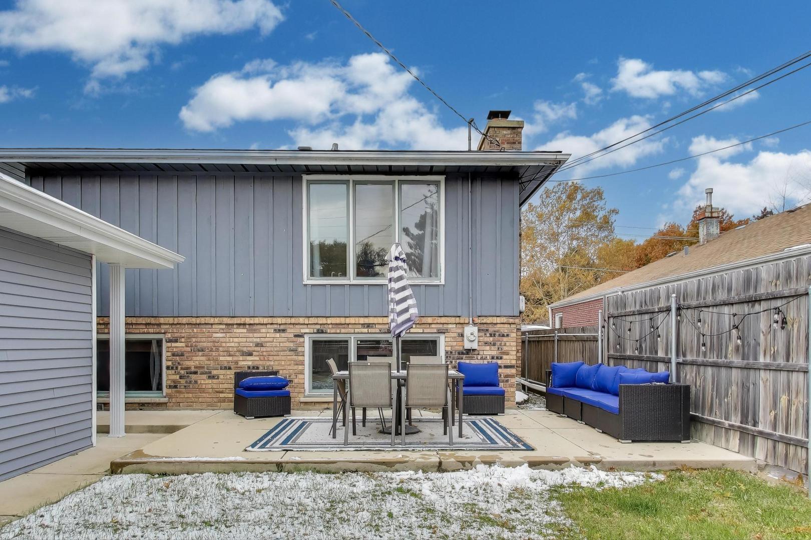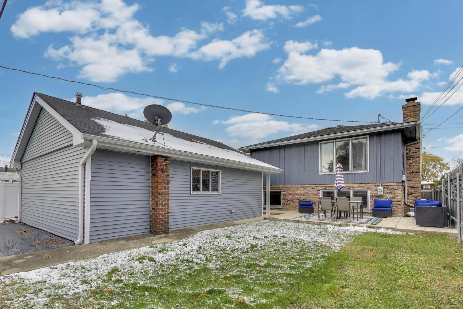 Beautifully updated and well-maintained split-level home with a bright and spacious finished basement, large upper-level primary suite, two first-floor bedrooms, and sizable backyard in commuter-friendly and sought-after Leyden Township. The renovated lower level stands out with full-height windows, a gas fireplace, a wet bar, office/den, multiple storage areas, and a separate laundry room–ideal for entertaining, working from home, or extra living space. The upper-level and newly carpeted primary suite features two spacious closets, a separate dressing area, and an ensuite bathroom with a soaker tub and walk-in shower. The main floor includes two large bedrooms with updated flooring (vinyl plank + refinished hardwood), recessed lighting, crown molding, and a full bathroom. The open living room flows seamlessly into the eat-in kitchen for effortless everyday living. Step outside the side entrance into the ample backyard with an updated concrete patio and ideal for outdoor entertaining, family gatherings, and gardening. The oversized 2.5+ car garage offers abundant storage or workshop potential, and the extended driveway adds flexibility for overflow parking and recreation. List of property updates and property disclosures are included in the listing as attached documents.