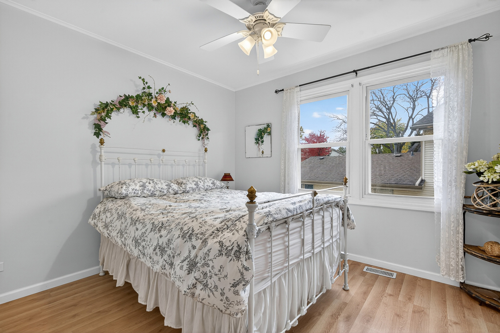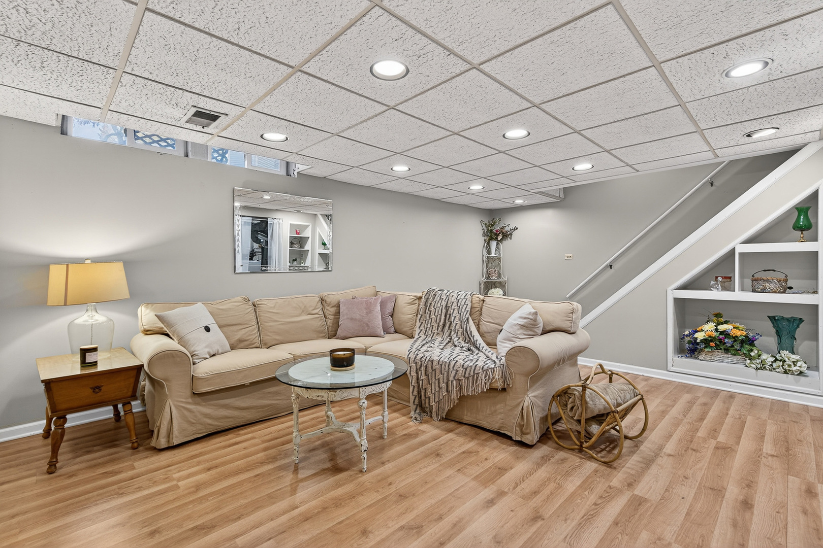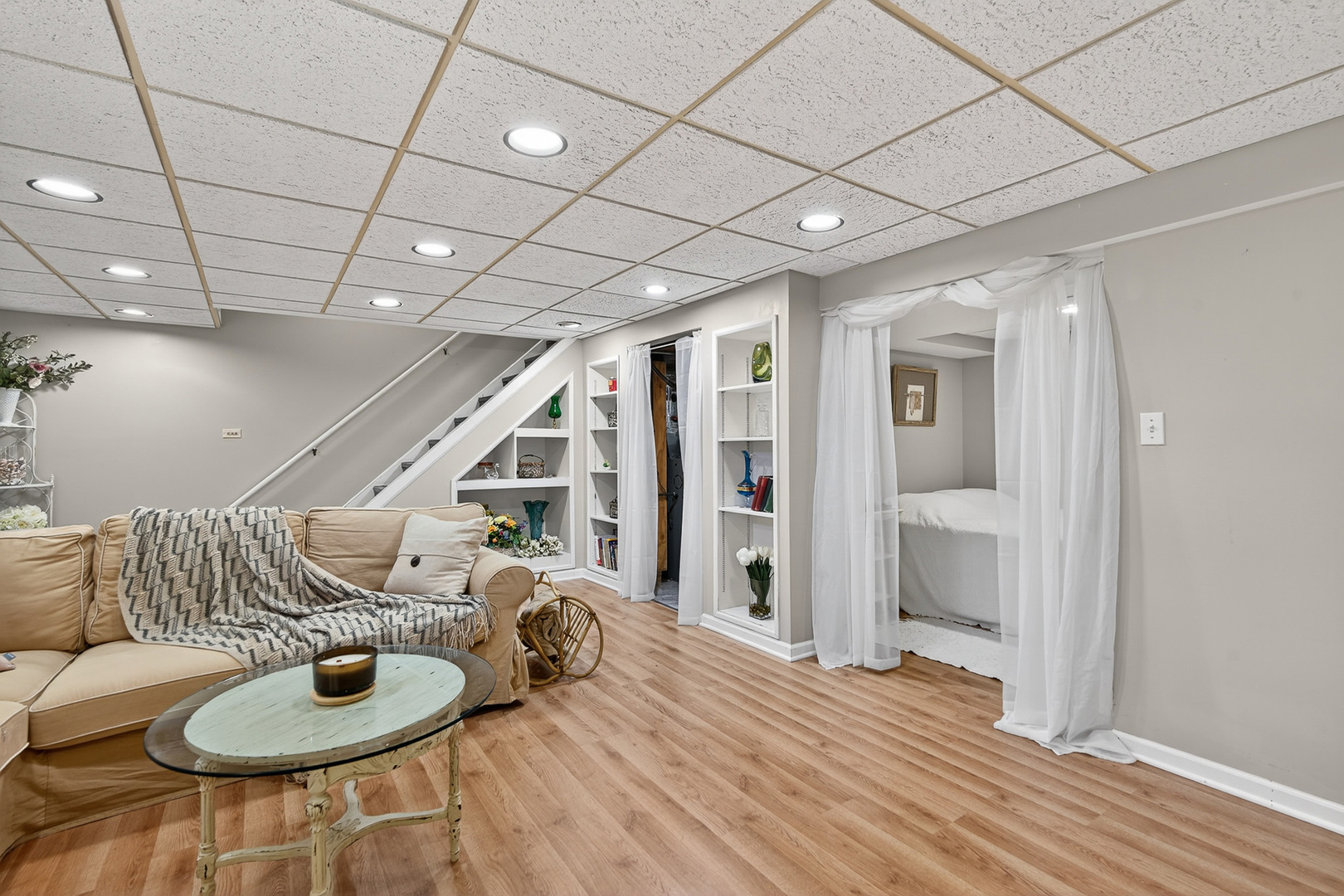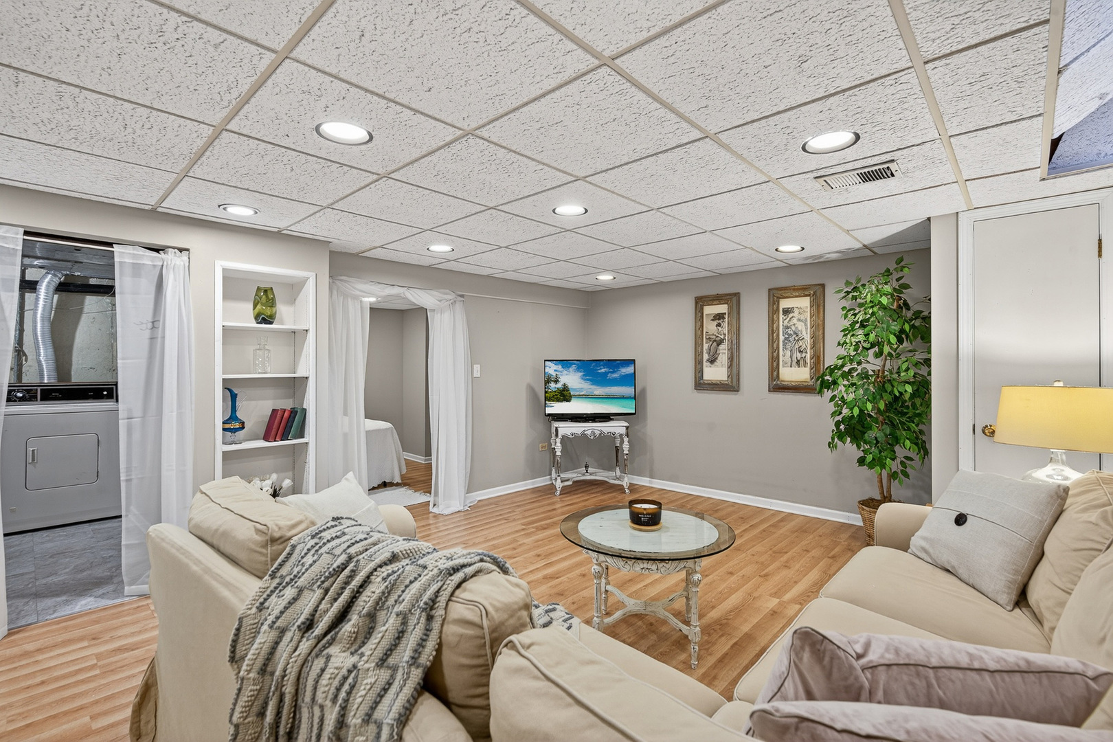 End unit in a beautiful Bloomingdale area! This charming 2-bedroom, 1.5-bath townhome offers a fantastic layout with beautiful hardwood floors on the main level. The spacious living and dining area opens to a private deck through sliding glass doors-perfect for relaxing or entertaining. The kitchen flows easily into the dining space, and a convenient half bath completes the main floor. Upstairs, you’ll find two generously sized bedrooms with wood laminate flooring and a shared full bath. The primary bedroom features a large walk-in closet and plenty of natural sunlight throughout. The fully finished basement provides even more living space with a large entertainment room, laundry area, and a versatile bonus room ideal for an office or guest space. Attached 1-car garage and excellent Bloomingdale location close to parks, shopping, and dining. Move-in ready