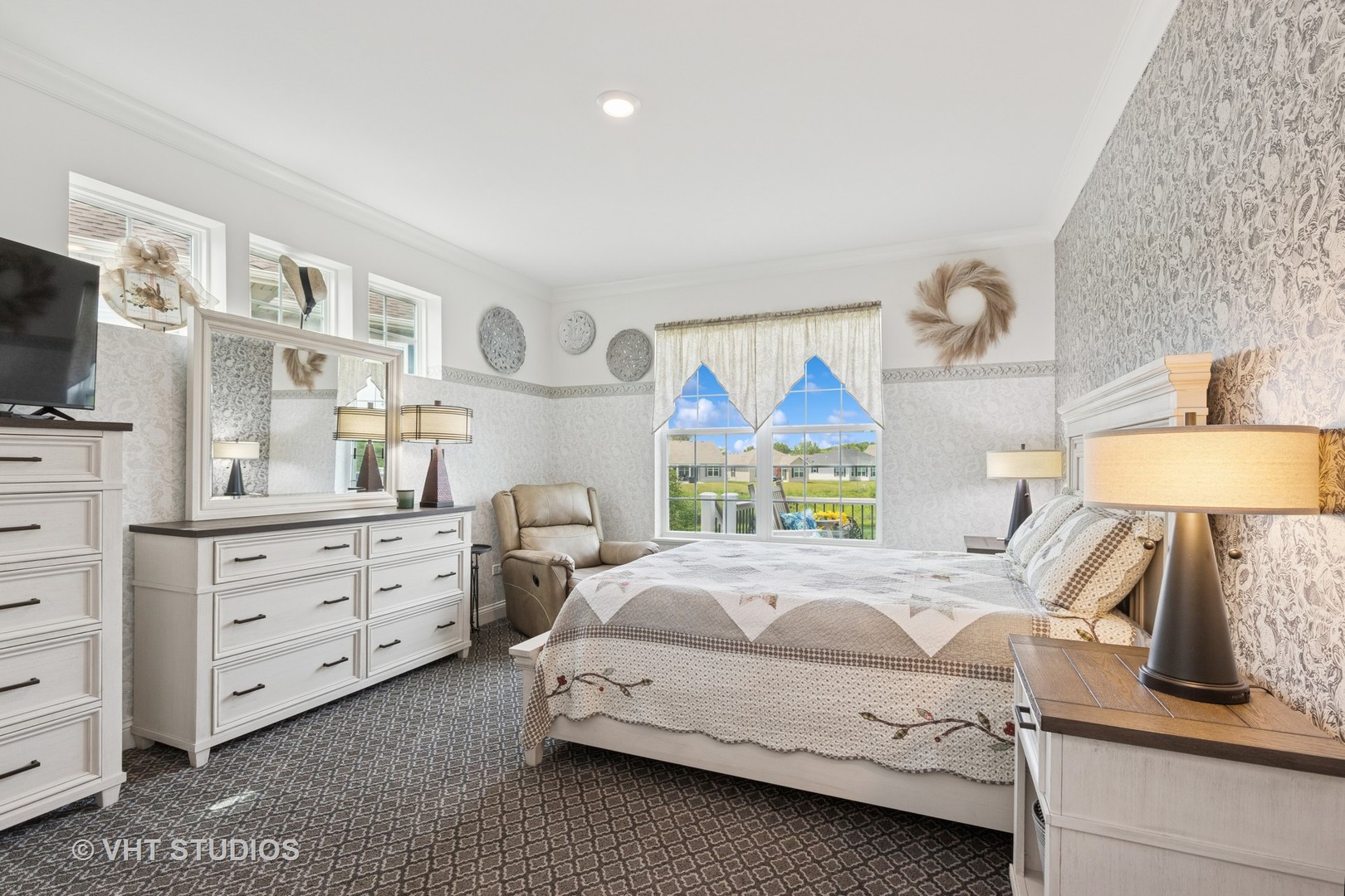 Great news for buyers! This popular 55+ community allows residents ages 45-54 to occupy a home, subject to prior written approval by the HOA manager. HOA details and documentation are included in the Additional Information section. Please check out this beautifully upgraded ranch home is nestled in the sought-after active adult community of Andare at Remington Pointe North and perfectly positioned on one of the most desirable lots in the neighborhood. The home offers breathtaking pond views and an exceptional blend of comfort, style, and smart living. Step inside to find a sun-drenched, open-concept layout that seamlessly connects the family room, dining area, chef-inspired kitchen, and a sunroom designed for ultimate relaxation. The kitchen is a showstopper, featuring dazzling quartz countertops, sleek white 42″ cabinets, a classic tile backsplash, stainless steel appliances, and an oversized island with seating for 3-4. Whether you’re hosting a dinner party or enjoying a quiet breakfast, the adjacent dining area and sunroom provide the perfect setting with panoramic views of the water just beyond. The private primary suite offers a spacious retreat with tranquil pond views, a large walk-in closet, and a well-appointed en suite bath. Two additional bedrooms, a full hall bath, and a convenient laundry room round out the main floor. Downstairs, the full English basement offers endless possibilities with a finished layout, this includes the 4th bedroom currently used as an office and a newly added half bath (2023), huge lounging area with a flat screen tv and built in fireplace. Plus ample storage space. Step outside to your expansive new Trex deck (2024)-perfect for summer BBQs and sunset lounging-surrounded by lush landscaping completed in 2024. This home is equipped with cutting-edge Smart Home features including a Ring Alarm System, Honeywell Smart Thermostat, Level Invisible Smart Lock, MyQ Garage Control, and a Flo by Moen smart water system. Residents of Andare enjoy resort-style amenities, including a clubhouse with fitness center, walking trails, bocce and pickleball courts, and social activities-all just minutes from shopping, dining, recreation, and transportation. With thoughtful upgrades like new carpet (2023) and driveway seal coated (2024), this home offers turnkey living in a vibrant, well-connected community. *Please see Upgrades and Features Under Additional Information as well as HOA Information.