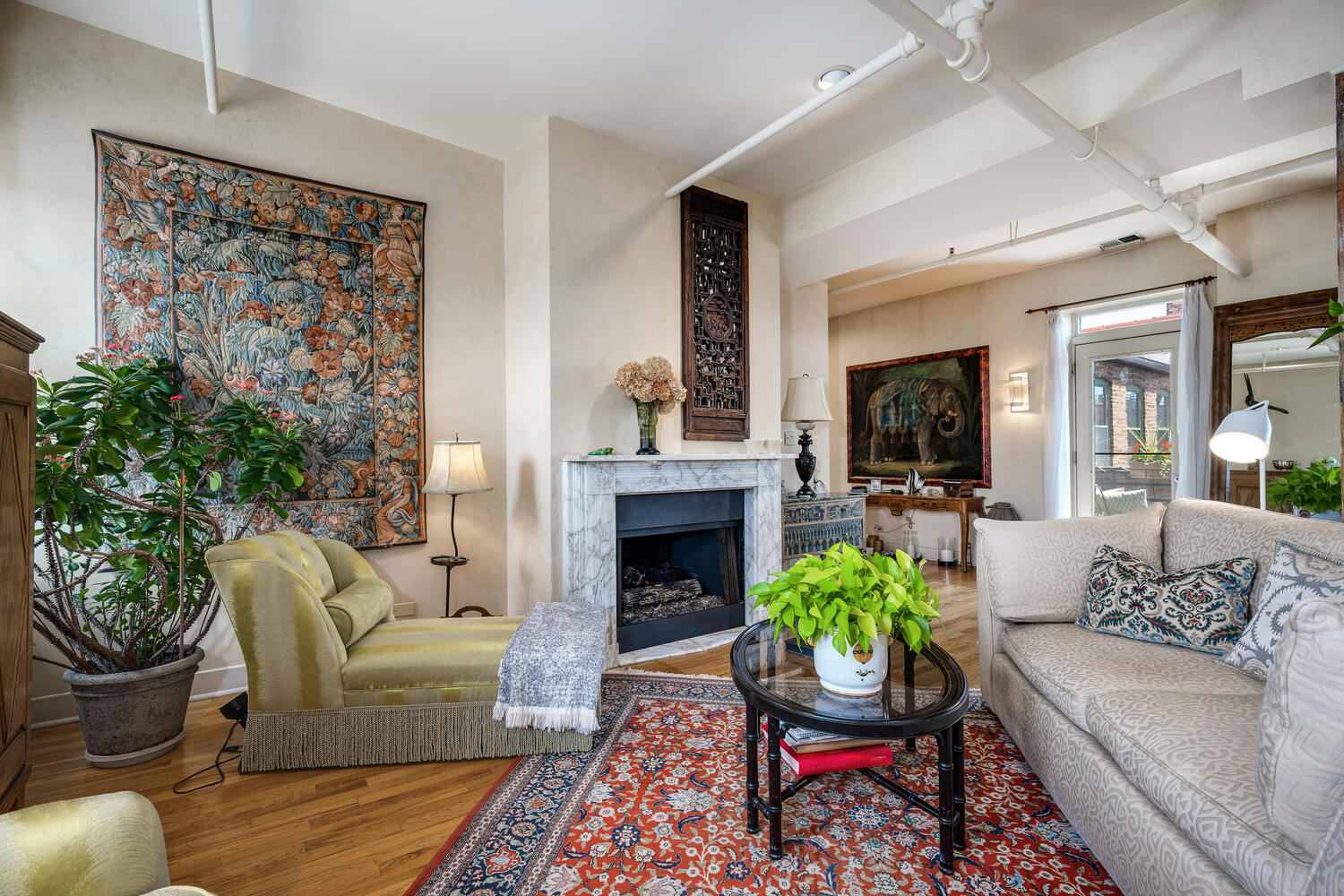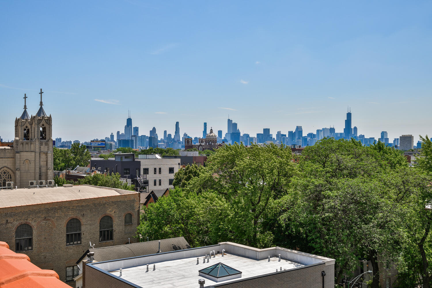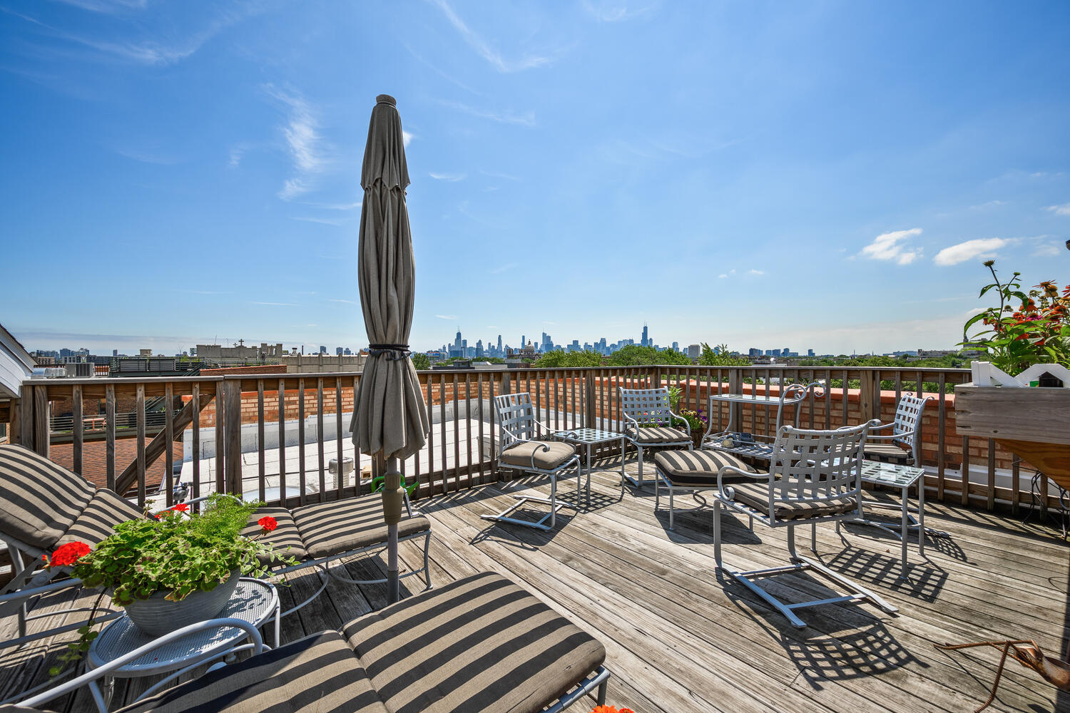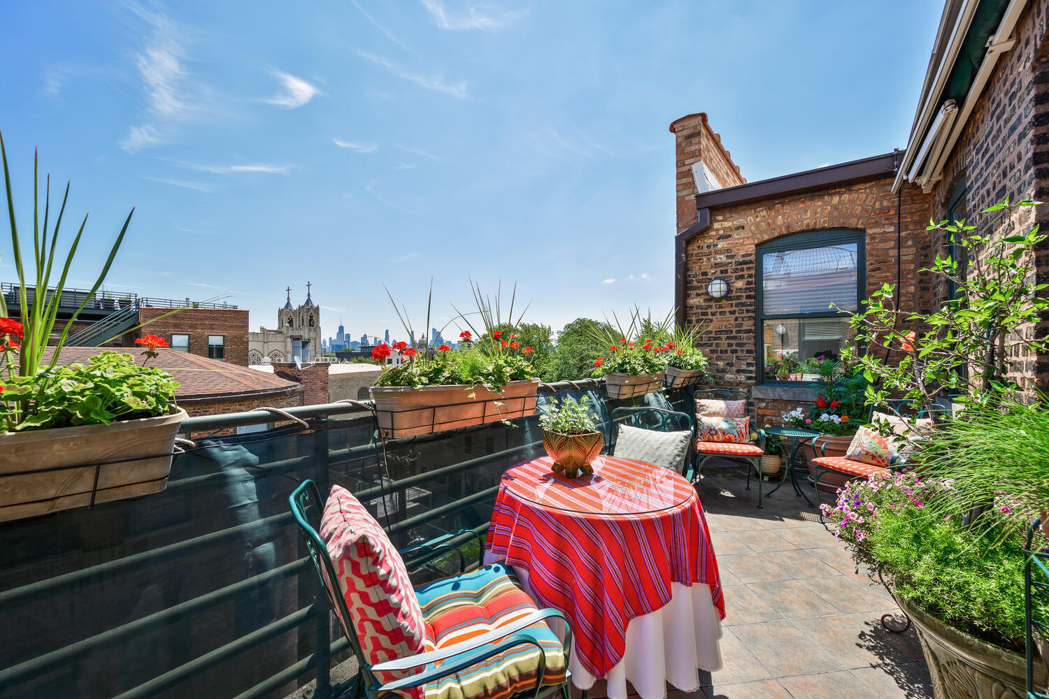 Available for the first time in over 30 years featuring an amazing balcony off the living space plus a private roof deck with an interior staircase complemented with rare and breath-taking city views! This is the quintessential loft that is straight out of the movies in the historic Manchester Loft Building! Enjoy sensational sunlight all day long through south, west, and east exposures from this top floor corner loft. Lofty ceilings with skylights welcome you into the gracious foyer with immediate access to the home office/fourth bedroom as well as ample entry storage. The open concept living space is perfect for entertaining with a marble fireplace and a balcony directly off of the living room. A large, separate dining area can accommodate a big table and is adjacent to the charming all-white kitchen with great storage, ample prep space, and huge south facing windows. The gracious bedrooms flank the corners of the home, including the oversized primary suite with a generous walk-in closet, spacious bath, and a fireplace. The three additional bedrooms share a charming hall bath. A true laundry room completes this fabulous home in addition to garage parking included for one car. This exceptional home atop a fabulous four-story building is in the best Bucktown location on a beautiful tree-lined street, wonderfully close to marvelous shopping and dining, The 606 trail, in addition to easy access to public transportation and the highway. Perfect opportunity for boutique living with the best of the city right outside of your front door!