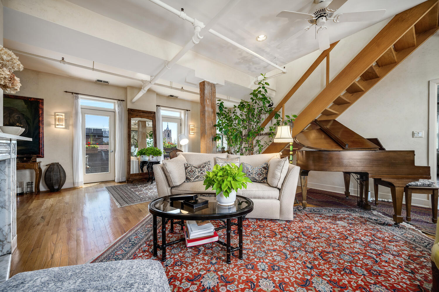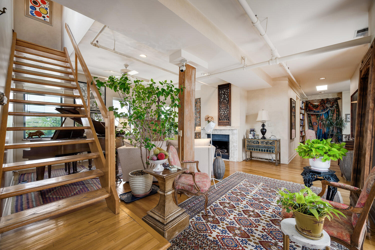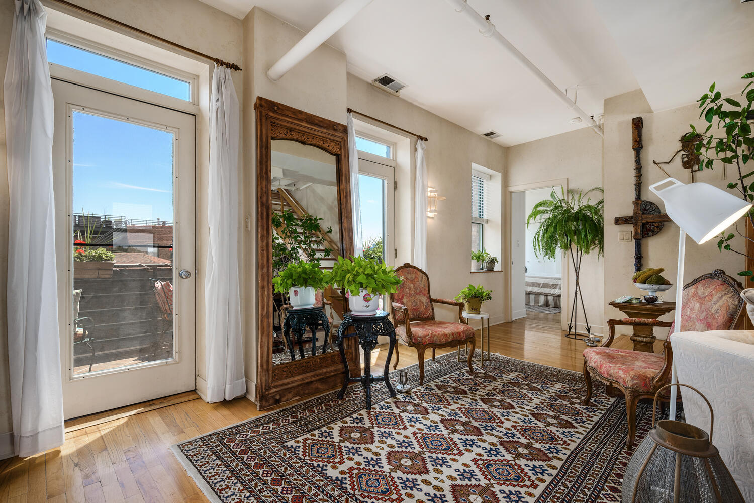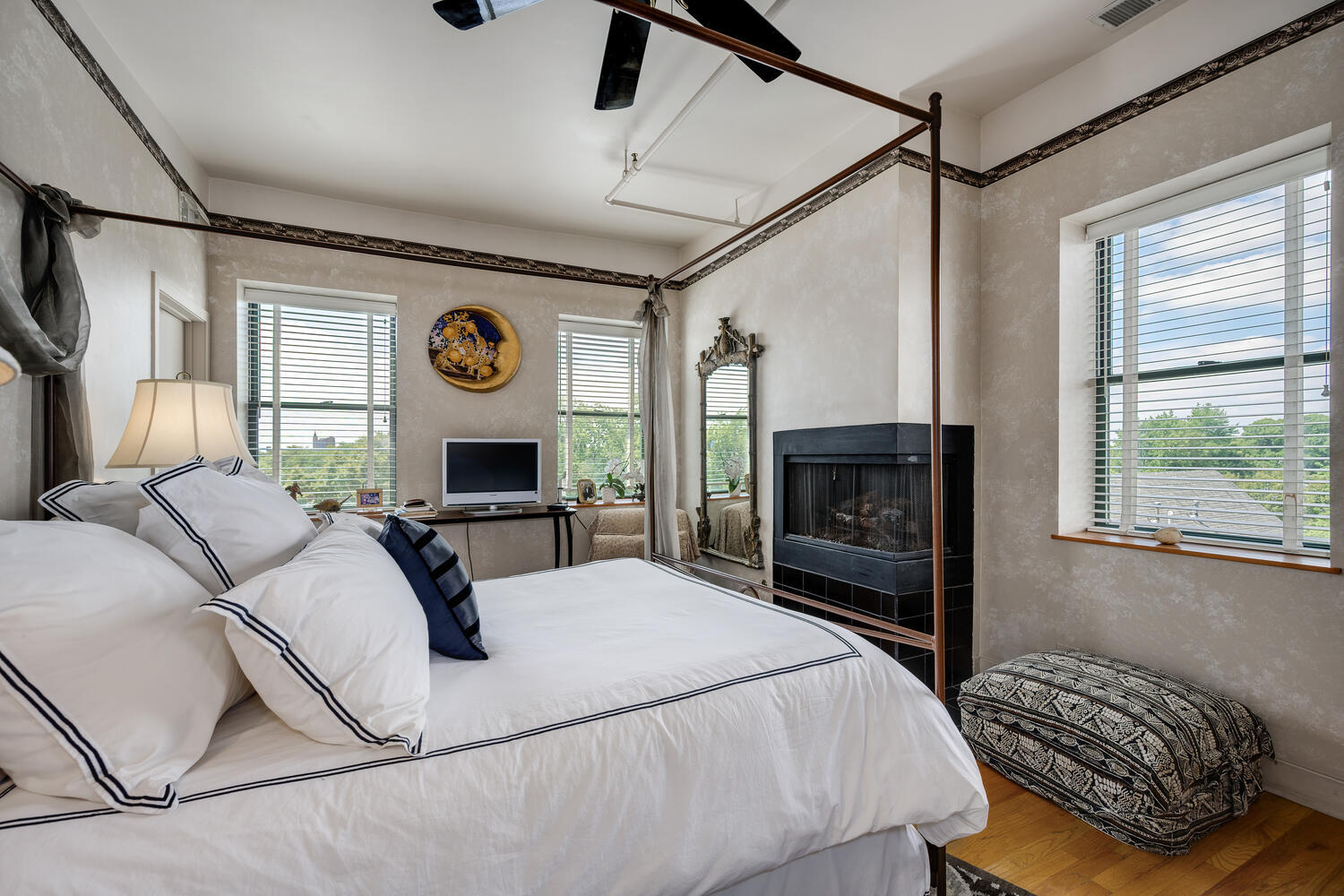 Available for the first time in over 30 years featuring an amazing balcony off the living space plus a private roof deck with an interior staircase complemented with rare and breath-taking city views! This is the quintessential loft that is straight out of the movies in the historic Manchester Loft Building! Enjoy sensational sunlight all day long through south, west, and east exposures from this top floor corner loft. Lofty ceilings with skylights welcome you into the gracious foyer with immediate access to the home office/fourth bedroom as well as ample entry storage. The open concept living space is perfect for entertaining with a marble fireplace and a balcony directly off of the living room. A large, separate dining area can accommodate a big table and is adjacent to the charming all-white kitchen with great storage, ample prep space, and huge south facing windows. The gracious bedrooms flank the corners of the home, including the oversized primary suite with a generous walk-in closet, spacious bath, and a fireplace. The three additional bedrooms share a charming hall bath. A true laundry room completes this fabulous home in addition to garage parking included for one car. This exceptional home atop a fabulous four-story building is in the best Bucktown location on a beautiful tree-lined street, wonderfully close to marvelous shopping and dining, The 606 trail, in addition to easy access to public transportation and the highway. Perfect opportunity for boutique living with the best of the city right outside of your front door!