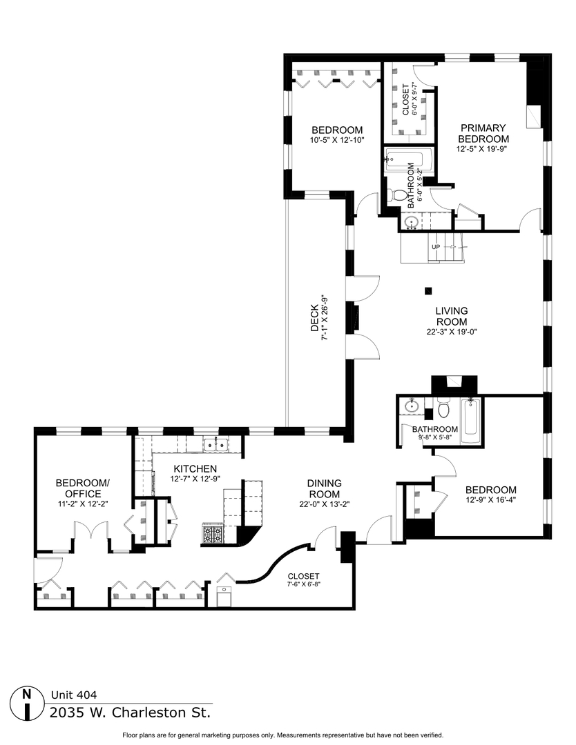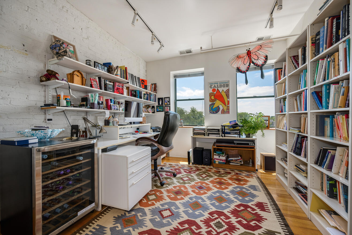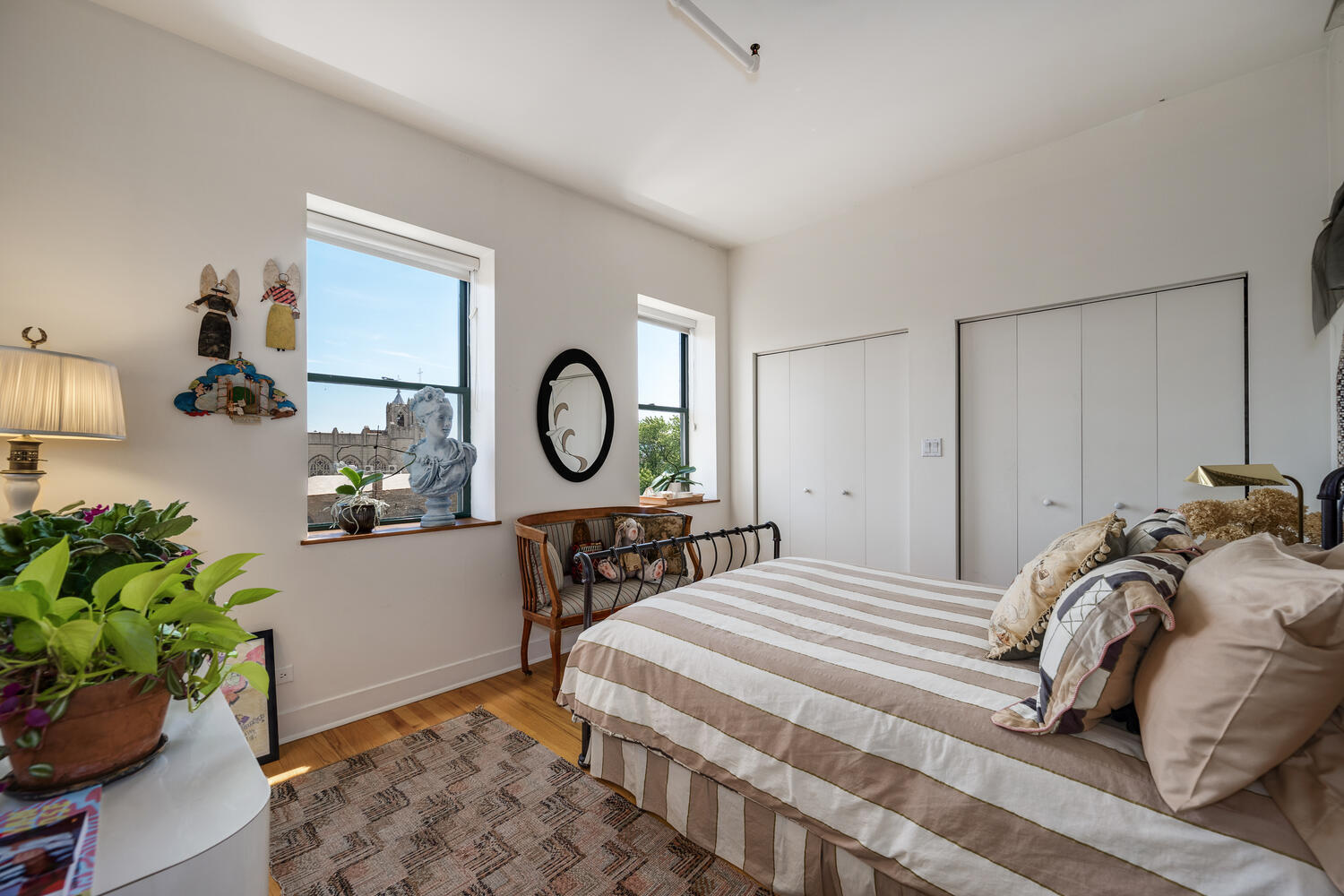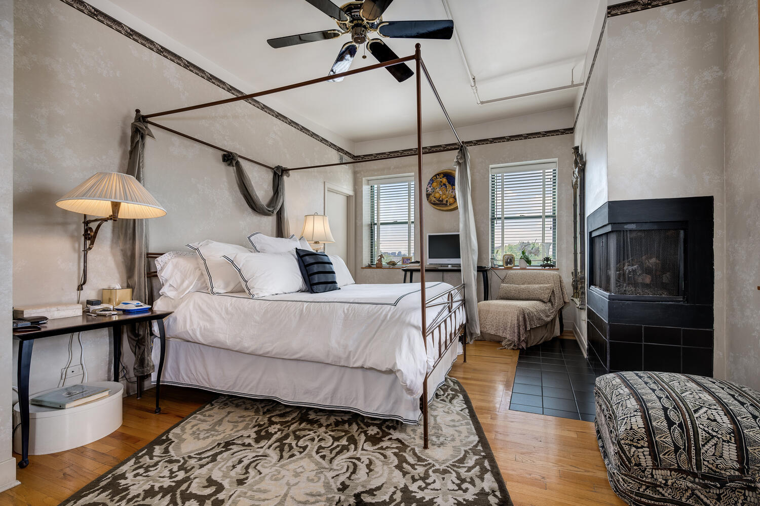 Available for the first time in over 30 years featuring an amazing balcony off the living space plus a private roof deck with an interior staircase complemented with rare and breath-taking city views! This is the quintessential loft that is straight out of the movies in the historic Manchester Loft Building! Enjoy sensational sunlight all day long through south, west, and east exposures from this top floor corner loft. Lofty ceilings with skylights welcome you into the gracious foyer with immediate access to the home office/fourth bedroom as well as ample entry storage. The open concept living space is perfect for entertaining with a marble fireplace and a balcony directly off of the living room. A large, separate dining area can accommodate a big table and is adjacent to the charming all-white kitchen with great storage, ample prep space, and huge south facing windows. The gracious bedrooms flank the corners of the home, including the oversized primary suite with a generous walk-in closet, spacious bath, and a fireplace. The three additional bedrooms share a charming hall bath. A true laundry room completes this fabulous home in addition to garage parking included for one car. This exceptional home atop a fabulous four-story building is in the best Bucktown location on a beautiful tree-lined street, wonderfully close to marvelous shopping and dining, The 606 trail, in addition to easy access to public transportation and the highway. Perfect opportunity for boutique living with the best of the city right outside of your front door!