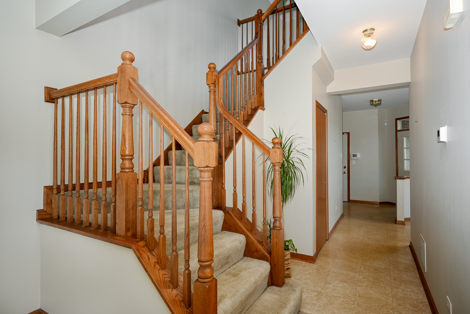 Welcome Home! This spacious and bright Essex model end-unit townhome, tucked away in a quiet cul-de-sac, offers nearly 1600 sf ft of comfortable living space. The main level features a sunny living room with a cozy fireplace, sliding glass doors that lead to a private patio — perfect for morning coffee or evening relaxation. Functional galley-style kitchen with ample cabinetry, pantry and an adjacent dining space. The second level features a primary suite with a large walk-in closet and en-suite bath featuring a soaking tub and separate shower. A second en-suite bedroom with its own private bath and generous closet–ideal for guests or shared living. Bright, open loft space perfect for a home office, hobby room or cozy den. Convenient laundry/utility room with side-by-side washer and dryer. Just minutes from Yorktown Center with plenty of dining options, entertainment venues and shopping. Easy access to I-88 and I-355 — a commuter’s dream! With just a little TLC, this home is ready to shine! With just a little TLC, this home is ready to shine!