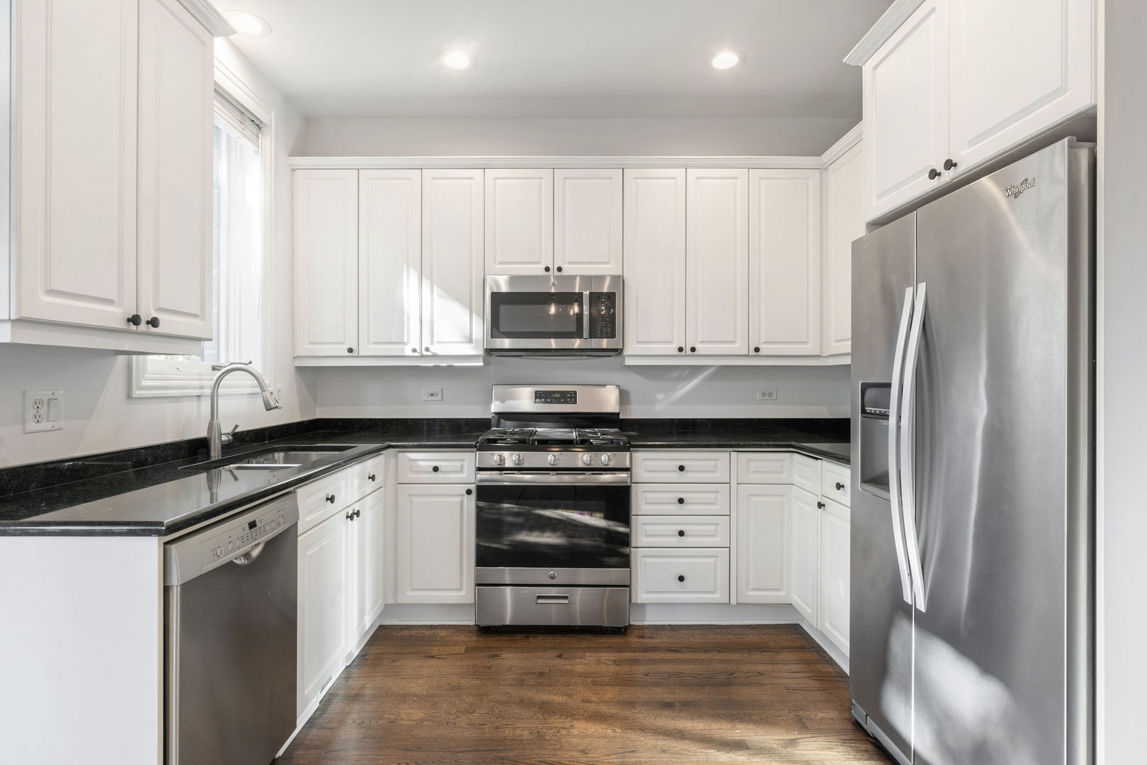 Bucktown Gem-Incredible 3 bedroom/2.5 bath fee simple townhome w/ no assessments! This unit is comprised of a fantastic main level living space that has walnut stained hardwood floors & a huge living/dining space with a gas fireplace & room for a large sectional & dining table. The white kitchen boasts granite counters, SS appliances, including a Bosch dishwasher, along w/ a breakfast nook. An adjacent balcony is ideal for a grill & overlooks the rear yard. A convenient powder room (rare!) completes this level. The top floor consists of a huge primary bedroom that can easily accommodate a king bed, has ample closet space. The adjacent bathroom has a double vanity, granite counters, & separate soaking tub & stand-up shower. A guest bedroom is also on this level. The ground floor consists of a full-size bathroom, side-by-side laundry, & large bedroom w/ a hidden closet behind a bookcase! The bedroom exits out to an incredible 26 x 19 REAR YARD that is ideal for entertaining, relaxing, grilling, or even for a future swing-set or outdoor fire-pit! This home also boasts parking for two (2) cars-one in the attached 1.5 car garage & the other on the exterior parking pad. This unit is far from cookie-cutter, & is located in an ideal location of Bucktown w/ convenient access to the Kennedy Expressway, Metra, 606 Trail, Lotties Pub, Leavitt Street Inn, Holstein Park, & all of the fantastic shops & restaurants along Damen & Armitage!