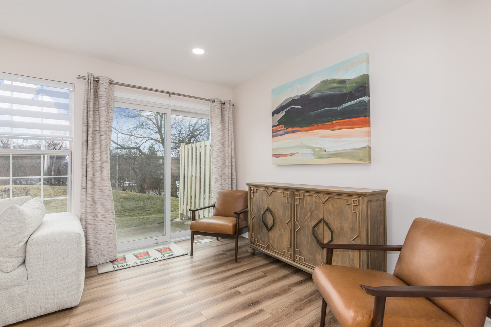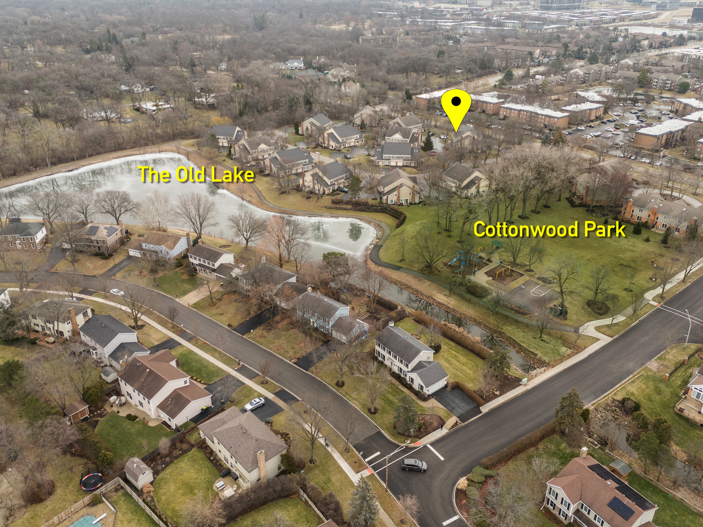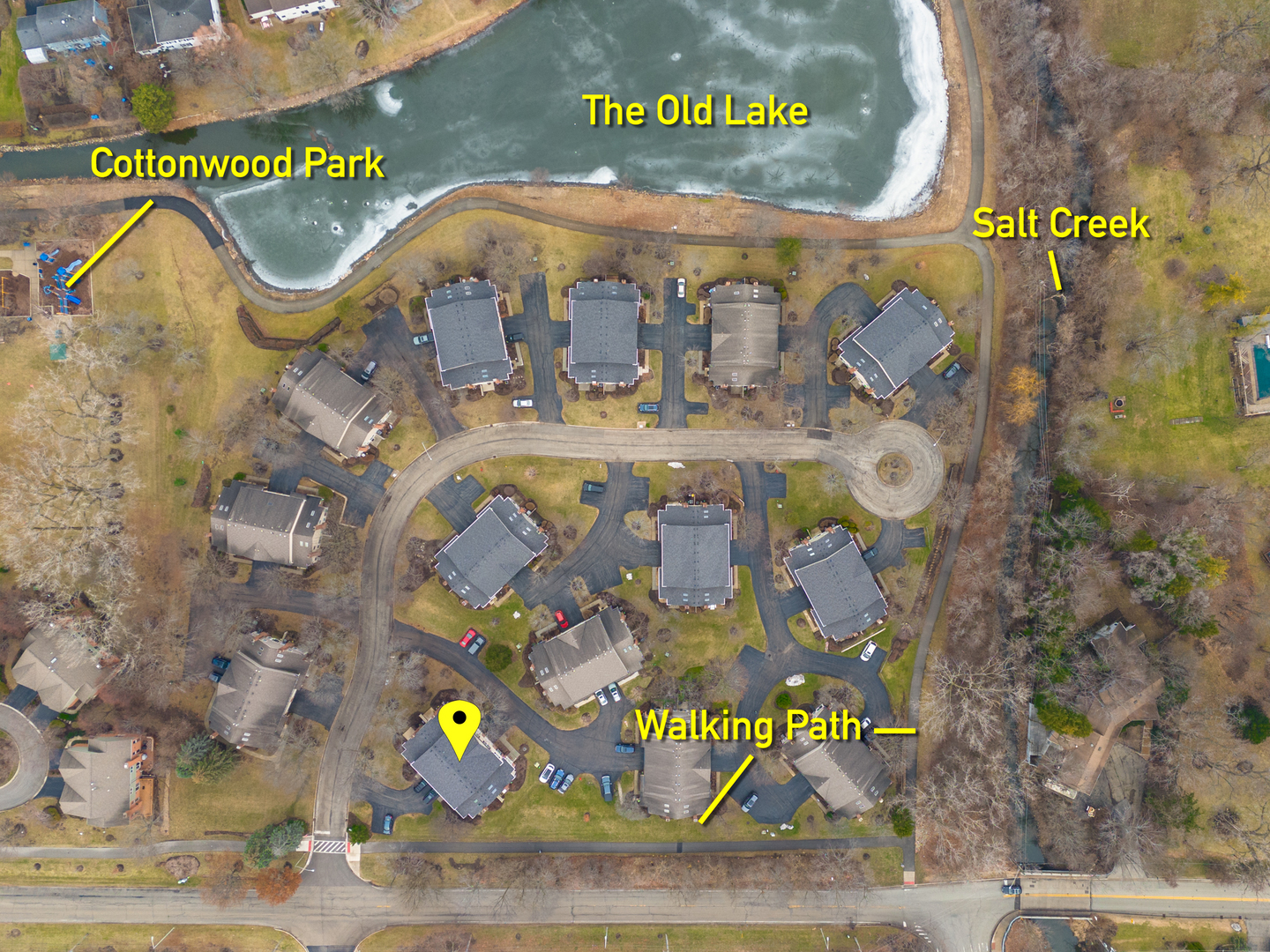 Amazing opportunity and rarely available 2-bedroom, 1.5-bath end-unit, two-story townhome in the desirable Bent Creek Subdivision, located in the award-winning Fremd High School District in Palatine. This bright, beautifully renovated townhome offers an impressive layout and exceptional natural light. Upon entry, you’re welcomed by a dramatic vaulted ceiling and second-story loft-a true wow factor. The spacious living room features a charming fireplace and sliding glass doors that open to your private patio, surrounded by a serene canopy of mature trees. The newly renovated kitchen is a dream, showcasing white cabinetry, stainless steel LG appliances, quartz countertops, and abundant storage, including a walk-in pantry. A separate dining room provides the perfect space for entertaining. The second floor features a sun-filled loft family room enhanced by two brand-new skylights, a generous primary suite with an updated bath featuring double quartz vanity sinks and a walk-in closet, a large second bedroom with ample closet space, and a spacious laundry/mechanical room. Additional highlights include a deep one-car attached garage with extra storage, an updated first-floor half bath with new vanity and quartz countertop, new wood-plank vinyl flooring in the living and dining rooms, and fresh paint in warm, neutral tones throughout. The location is unbeatable-steps from the walking path along Salt Creek, approximately 400 feet to Cottonwood Park, and about 500 feet to Old Lake (perfect for fishing enthusiasts). Conveniently located just 3 miles to the Palatine Metra, 2.5 miles to Woodfield Mall, 1 mile to Harper College, and only 20 minutes to O’Hare. Enjoy living in this friendly, quiet community that offers the perfect blend of convenience, tranquility, and natural beauty.