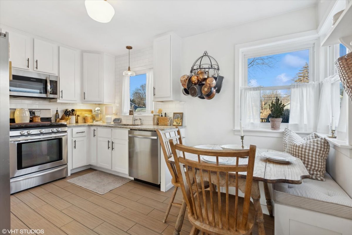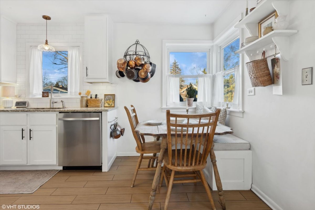 Ready to live your Nancy Myers dream in the suburbs? Welcome to 204 N Emerson, a beautifully updated 3-bedroom, 2-bath home in one of Mount Prospect’s most desirable neighborhoods. This well-maintained property combines timeless character with modern comfort, offering a bright and inviting living space with hardwood floors, a charming bay window offering amazing natural light and great flow throughout. The cozy kitchen features classic white cabinets, stainless-steel appliances, a brand-new dishwasher (2025), subway tile backsplash and custom banquet seating area. The finished lower level provides a spacious family room, an updated full bath and a convenient laundry + storage area. Upstairs, you’ll find the private top-floor primary suite (complete with a large sitting area for WFH, treadmill or relaxing), two sizable bedrooms and a serene full bath. The spacious garage adds ample storage and the enormous backyard is perfect for outdoor living with a 2019 deck, paver patio, and shed. Major updates include: roof (2020), water heater (2023) and furnace (2019). Located within Prospect High School + Fairview Elementary, blocks to the Metra and everything vibrant Mount Prospect has to offer, this home has it all.