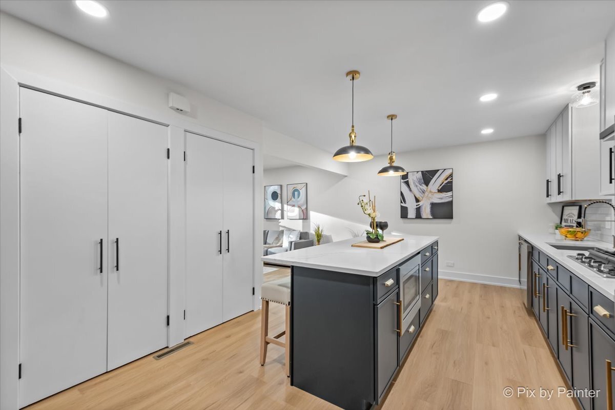 Welcome to this charming, absolutely amazing 4 bedroom,2.1 bath home located in one of Rolling Meadows most sough- after neighborhoods. This delightful residence has been thoughtfully updated from the top to the bottom blending classic charm with fresh, contemporary finishes. Whenever you are looking for a cozy retreat or the perfect place to entertain, this beautifully transformed home is ready to welcome you. The brand new large kitchen (2025) is a true showpiece featuring stunning Quartz countertops, custom cabinetry, stainless steel appliances, double oven and modern features. The kitchen flows nicely to the spacious and cozy family room features vaulted ceilings, a fireplace, custom-built-ins, and direct access to the backyard and a private patio surrounded by mature landscaping. The main level also features a convenient dining area, garage access, and a half bath. Upstairs you will find 4 bedrooms, all with hardwood floors and with large closets and two full bathrooms. Your primary suite features a large walking closet and a full bathroom with a separate shower space. The finished basement adds extra space with a recreation room and a spacious laundry room. All new windows, new flooring, updated bathrooms and light fixtures, newer sump pump. Roof is approximately 10 years old. New epoxy floors in the garage. Located just steps away from the top- ranked schools, parks, walking trails, just a few minutes car ride from Fremd High School, Downtown Palatine, and the Metra. This home is more than just a house -its a home to fall in love with. Come, envision your life here, and let the next chapter begin.
