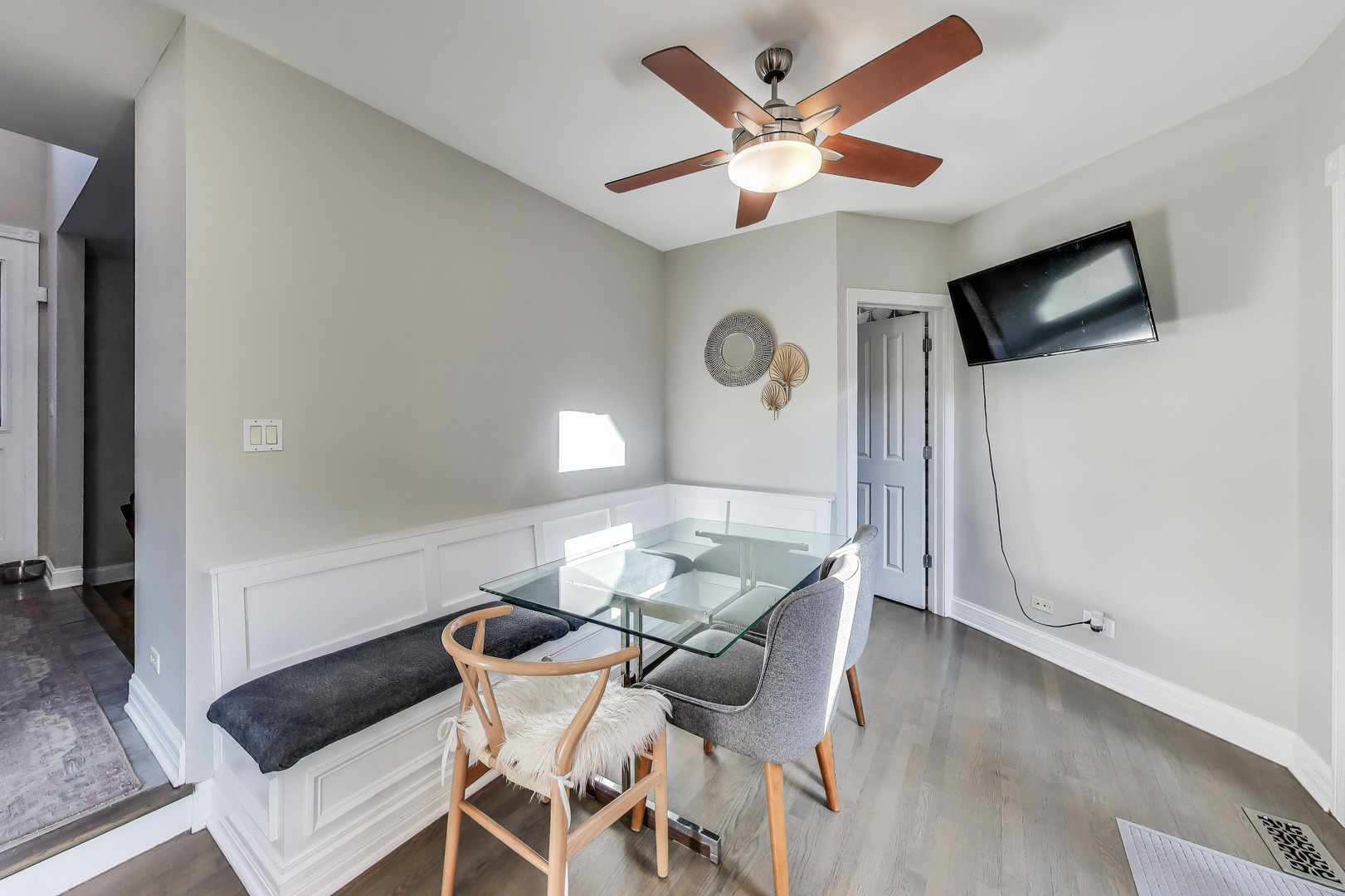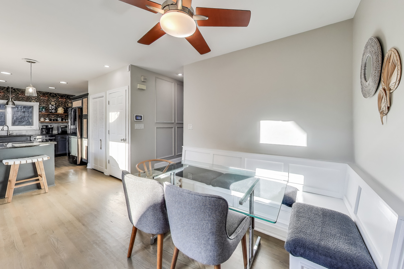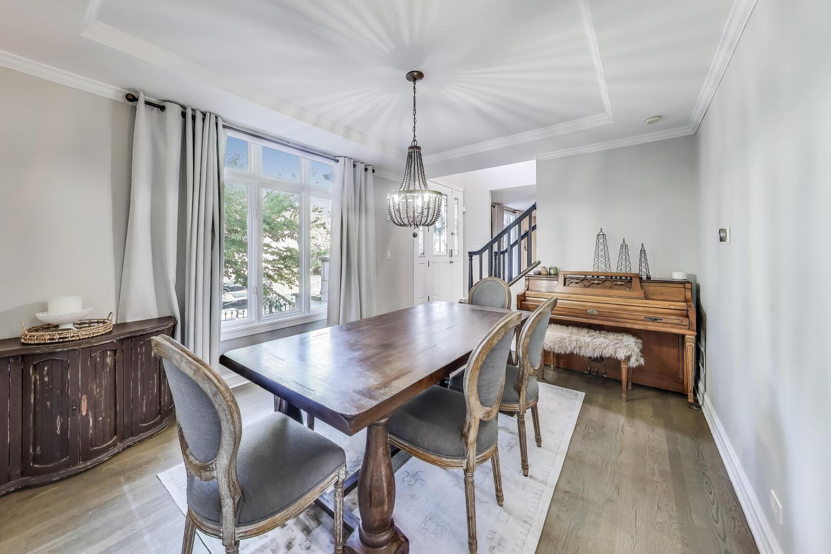 New to market is a Stunning All-Brick American 4 Square in Bucktown! This elegant 4-bedroom, 3.5-bathroom home offers the perfect blend of timeless architecture and modern amenities in one of Chicago’s most sought-after neighborhoods. Step into a bright and inviting living room featuring floor-to-ceiling windows and a cozy gas fireplace. The spacious dining room is ideal for entertaining, while the gourmet kitchen is outfitted with granite countertops, stainless steel appliances, and a built-in banquette seating area for casual dining. Double glass doors open onto a large enclosed back deck which was remodeled with composite decking in 2024, creating seamless indoor-outdoor living. Upstairs, hardwood floors flow throughout three generously sized bedrooms and two full bathrooms. The expansive primary suite boasts a custom walk-in closet and spa-like bath with heated floors, dual vanity, soaking tub, and separate shower. The fully finished lower level offers a versatile living area with a wet bar and access to a private enclosed terrace-perfect as a garden center, playroom, or year-round retreat. An additional bedroom with en-suite bathroom features heated floors and a luxurious steam shower. Additional features include: Attached two-car garage with extra storage, Outdoor living spaces designed for both relaxation and entertaining. Exceptional location in vibrant Bucktown, walk to Damen Avenue for dining, shopping, various public transit options.